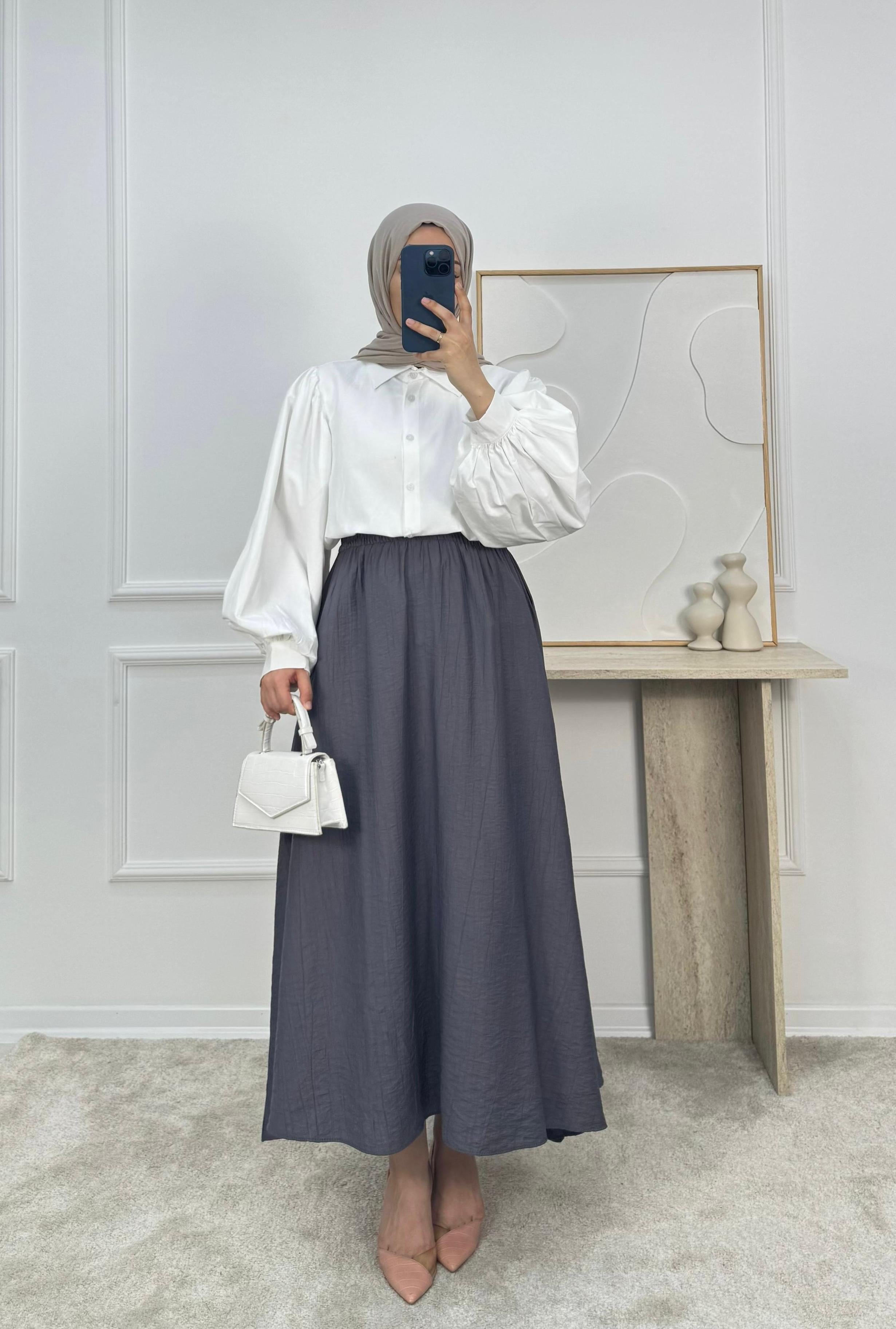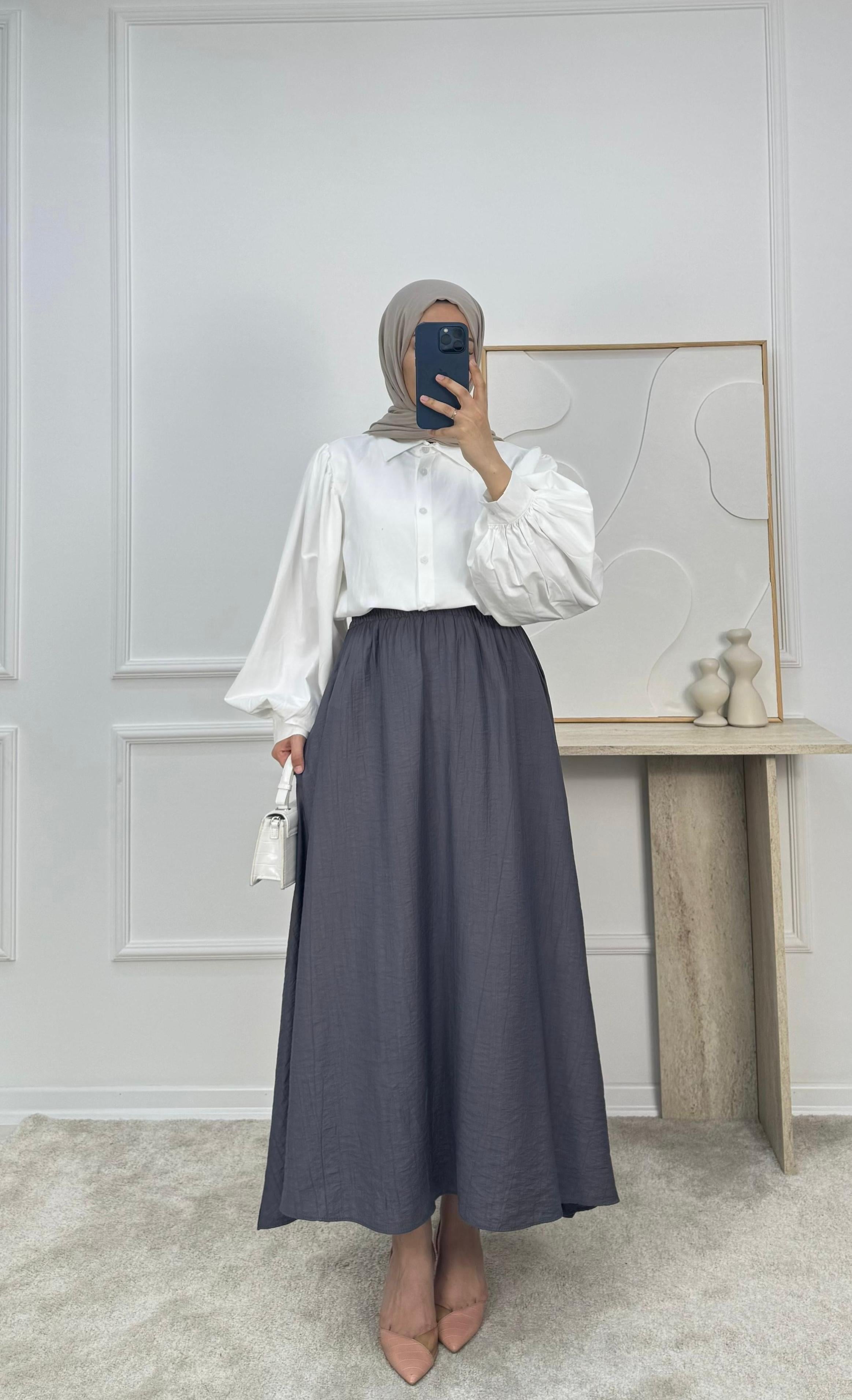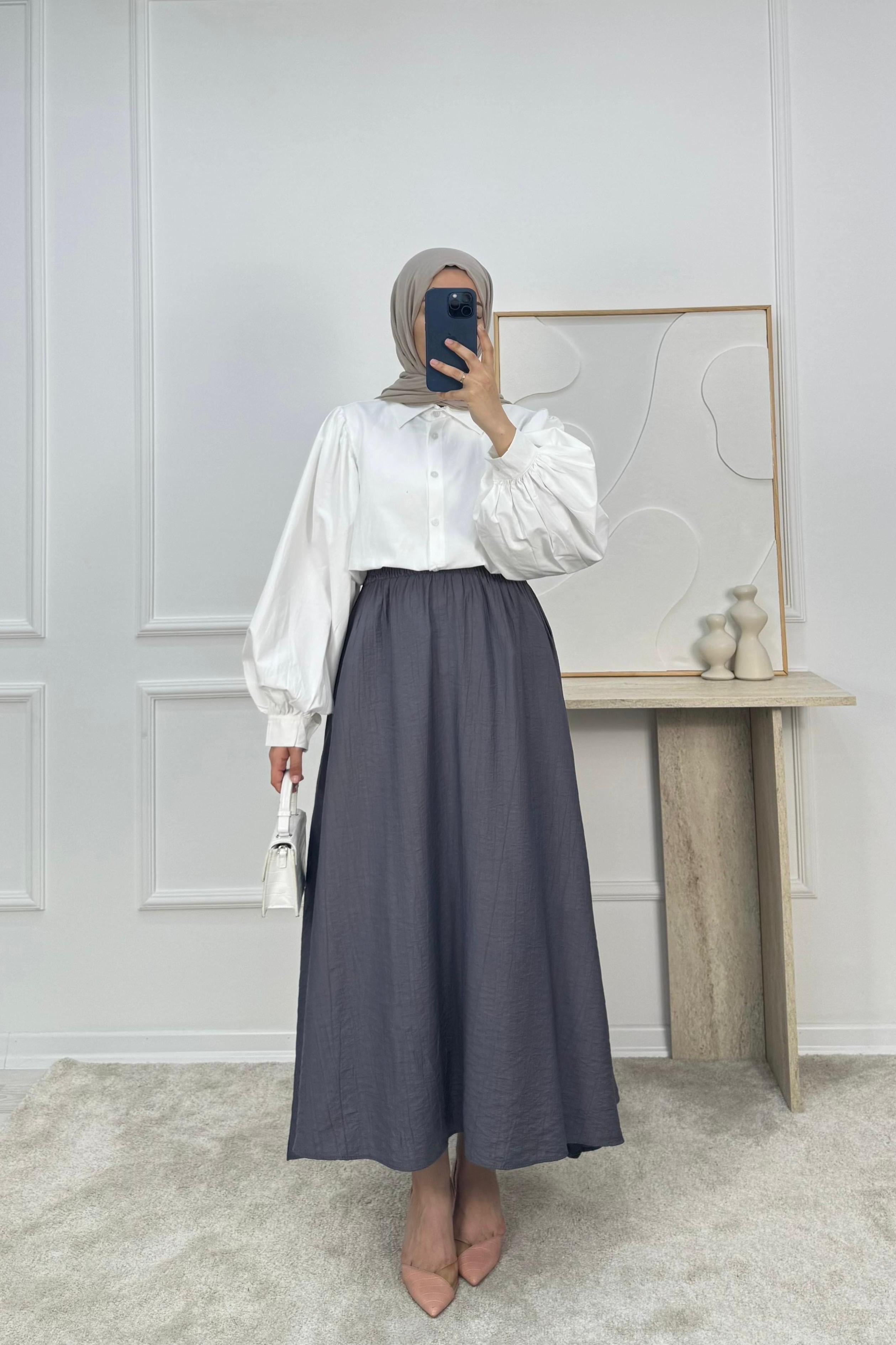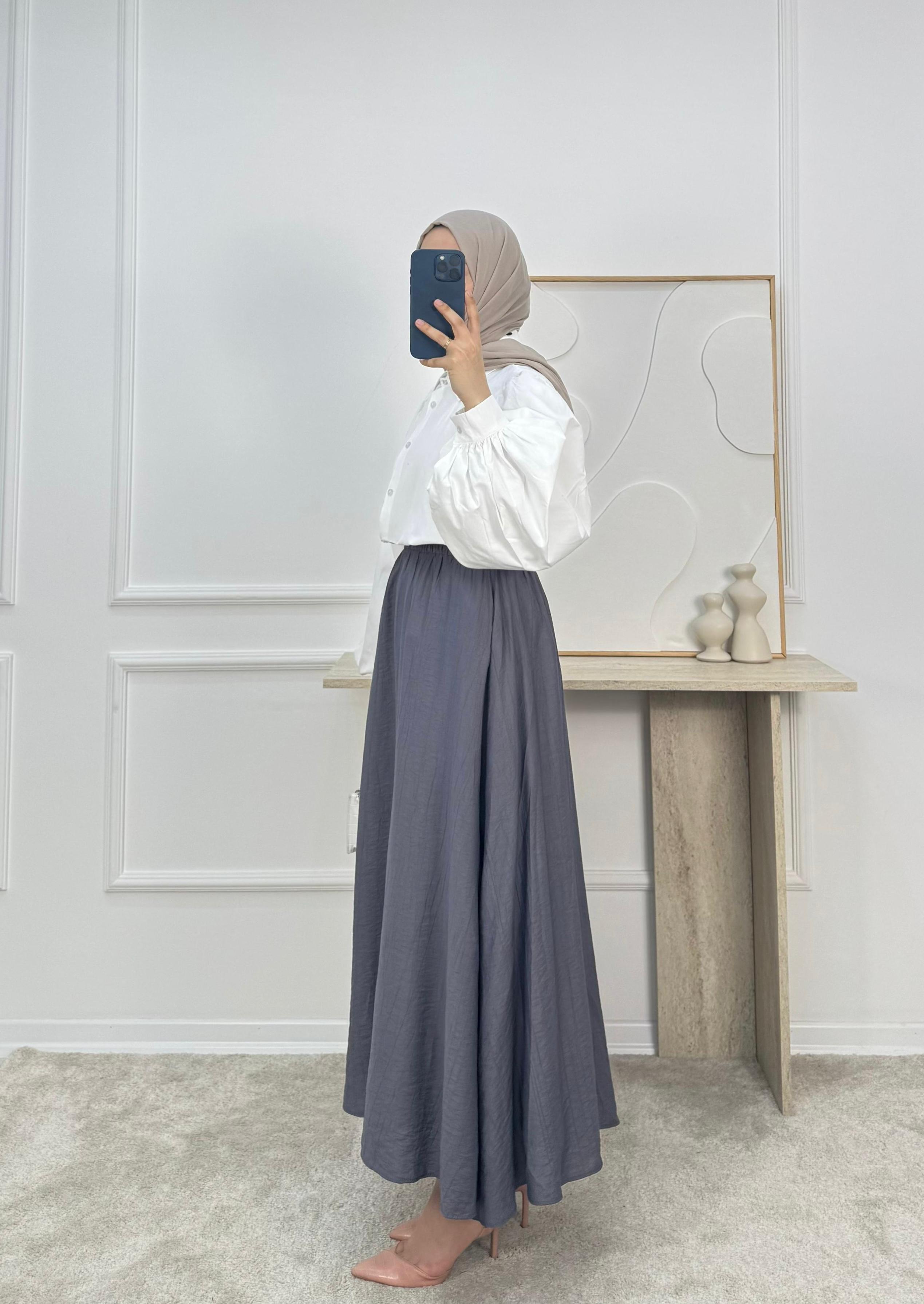 4370 - çilek kumaş cepli etek - füme (4370)