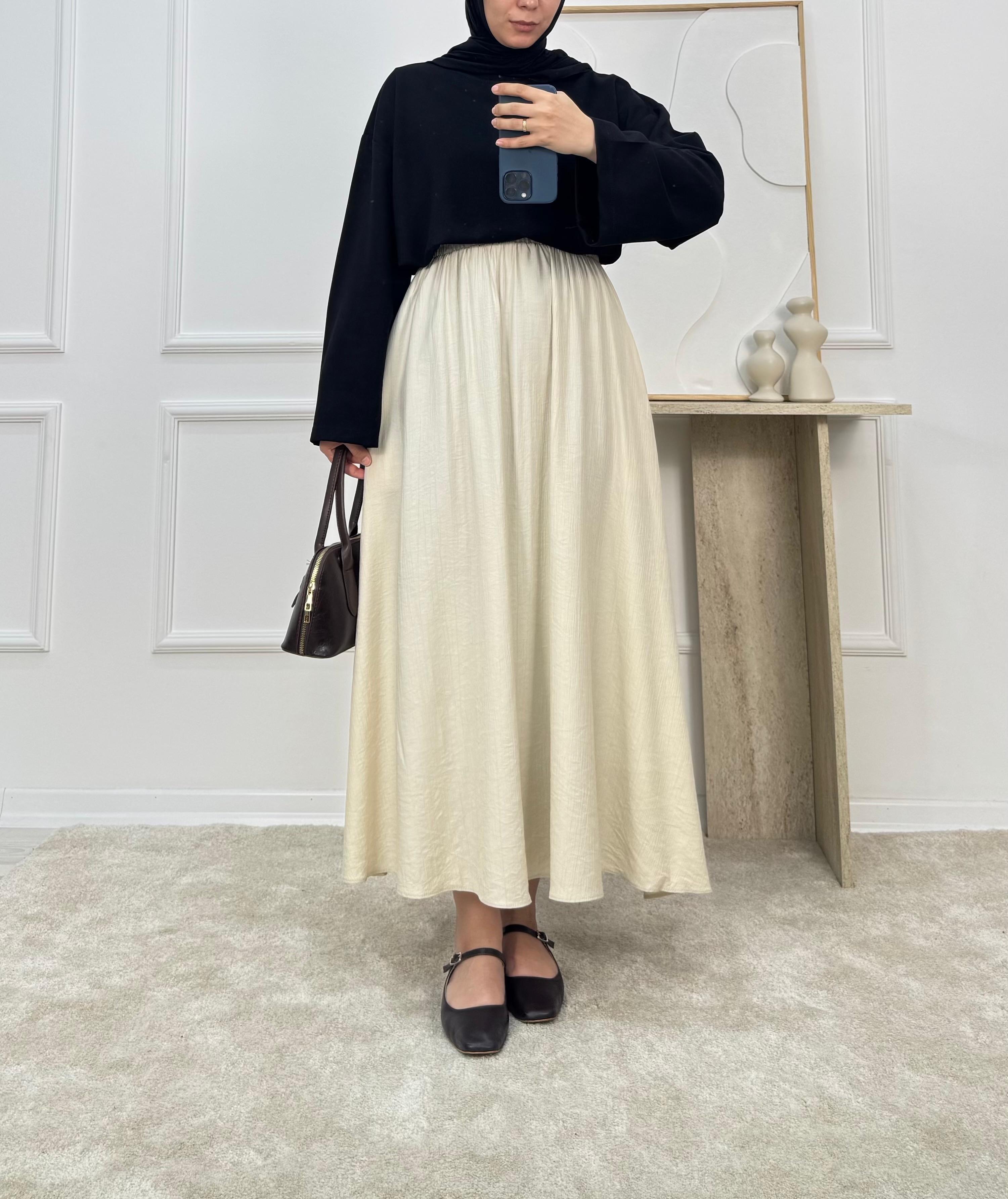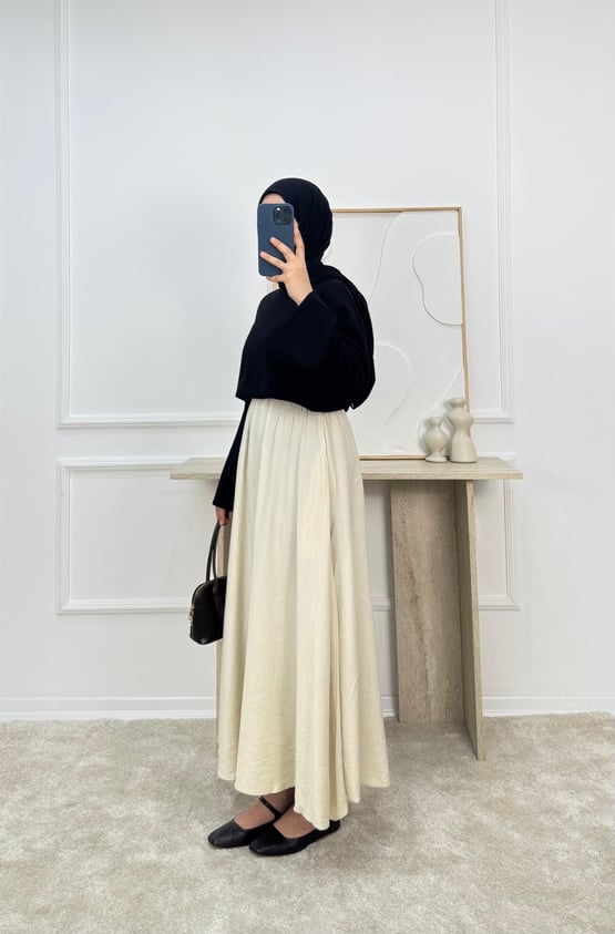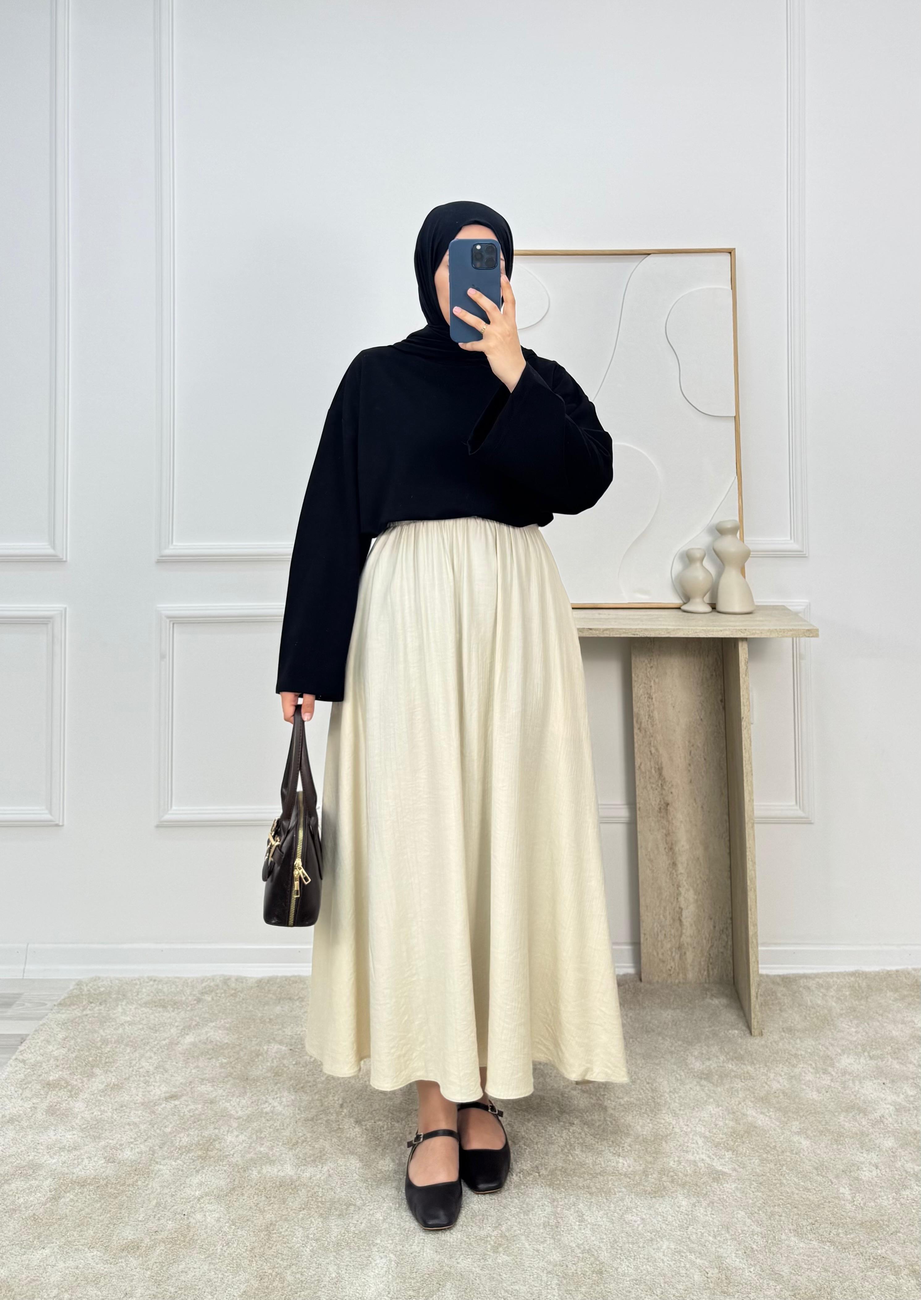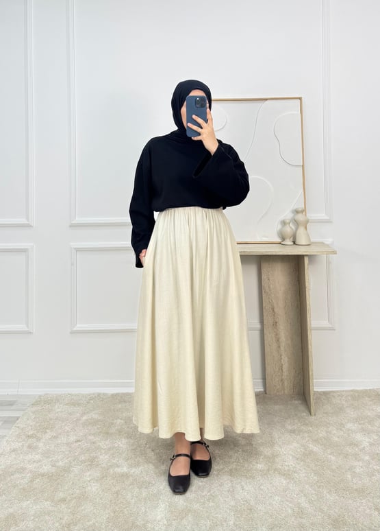 4370 - çilek kumaş cepli etek - krem (4370)