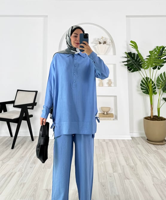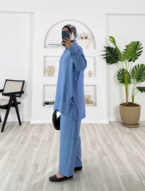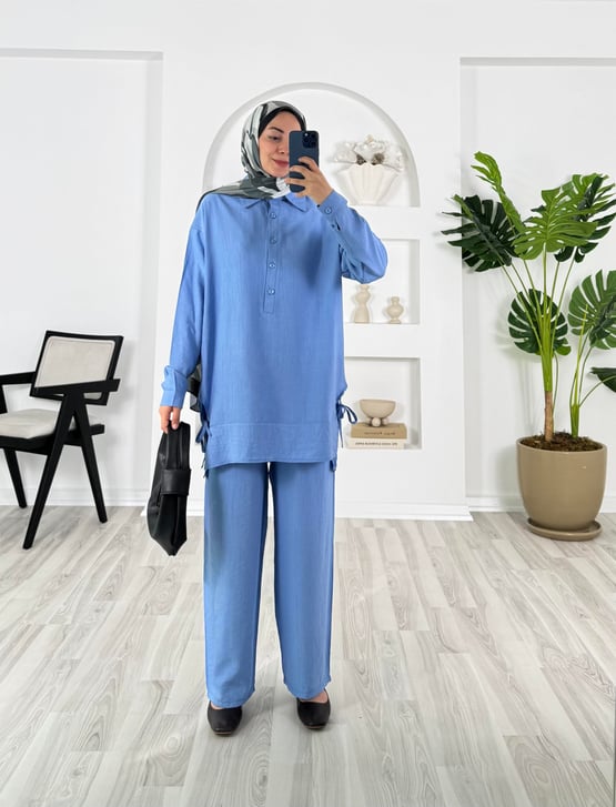 4414-çilek kumaş-önü düğmeli yanları yırtmaçlı pantolunlu takım bebe mavisi (4414)