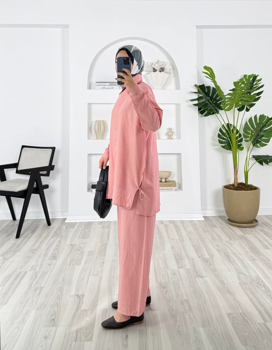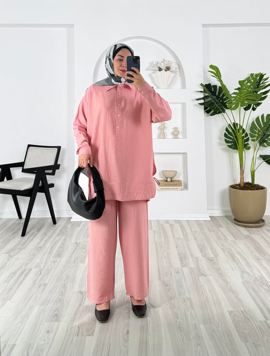4414-çilek kumaş-önü düğmeli yanları yırtmaçlı pantolunlu takım pudra (4414)