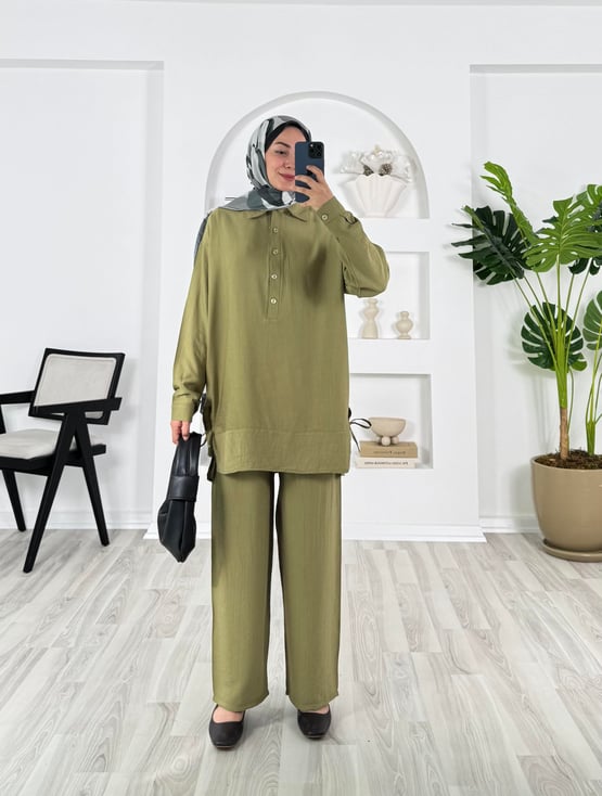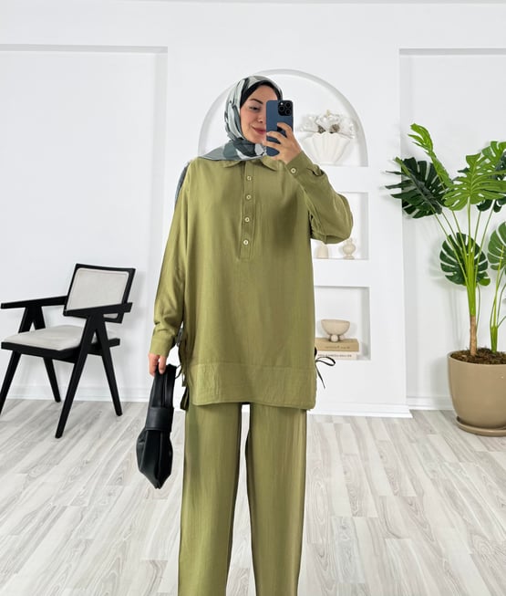 4414-çilek kumaş-önü düğmeli yanları yırtmaçlı pantolunlu takım yeşil (4414)