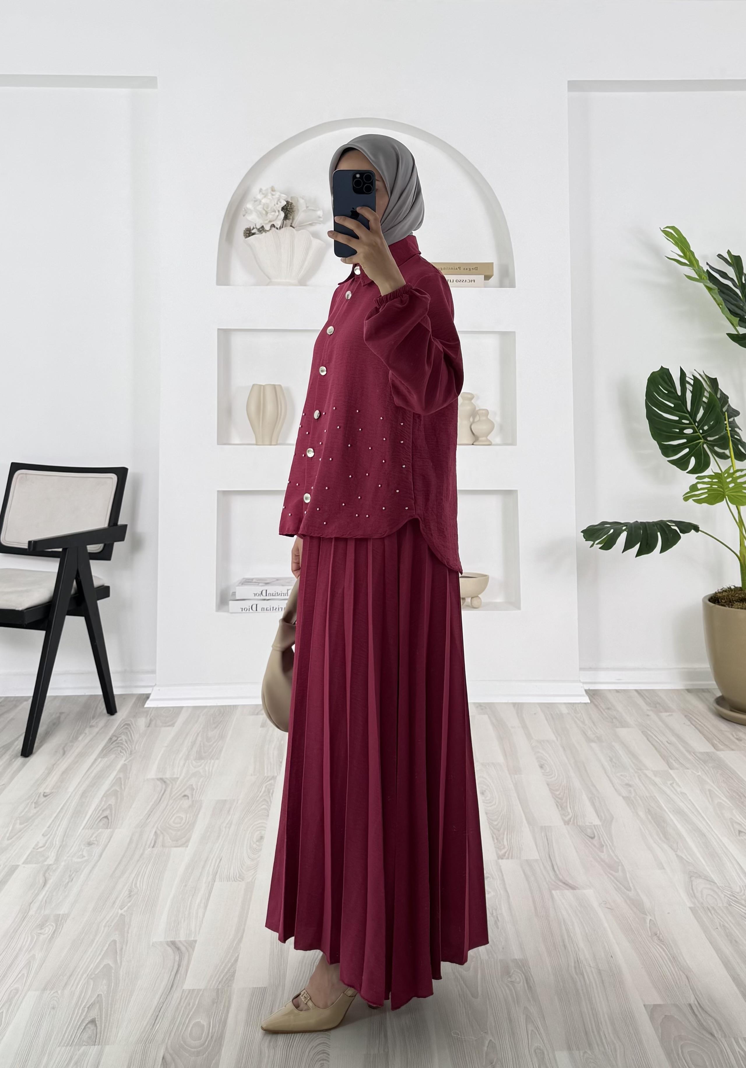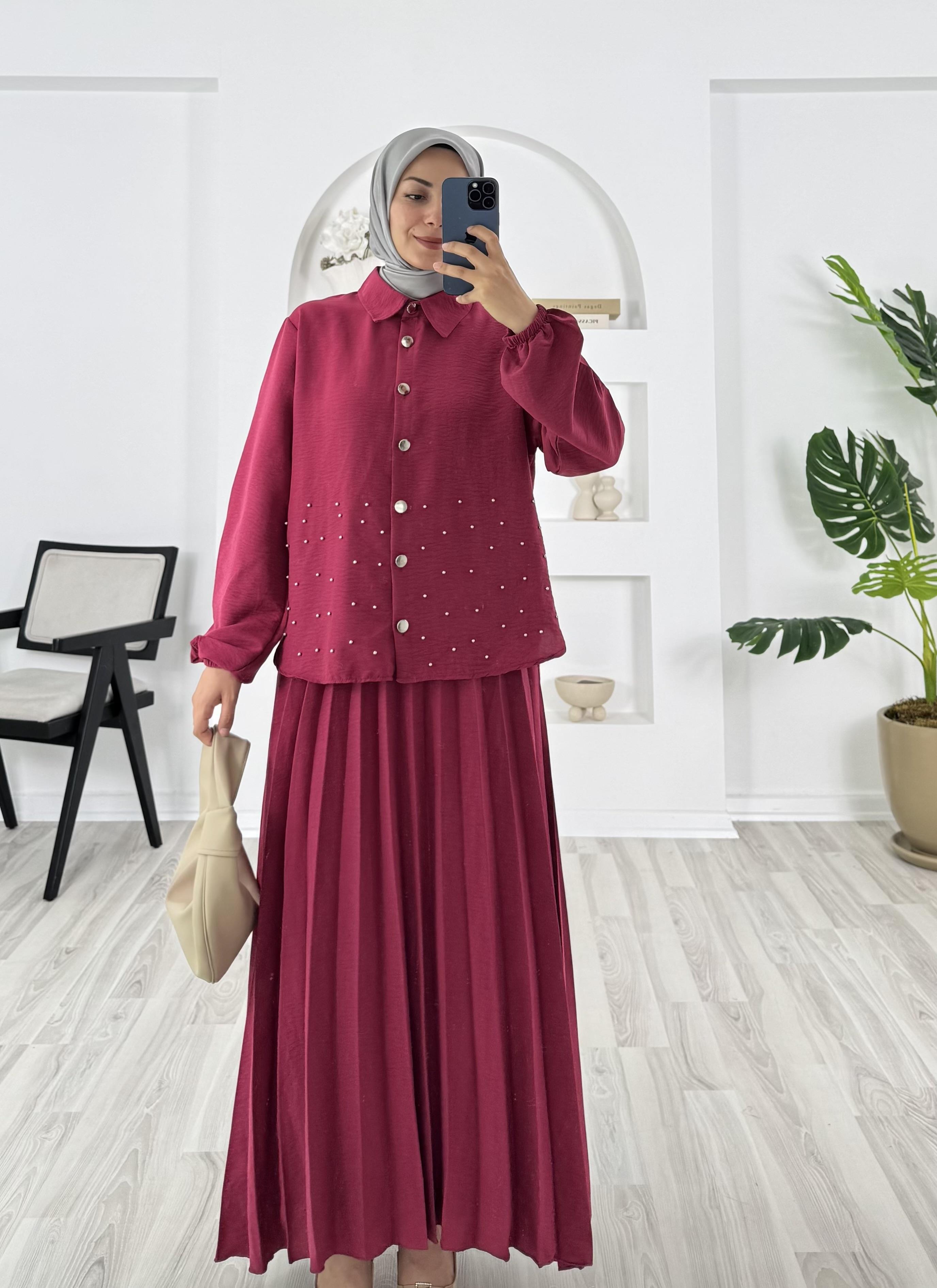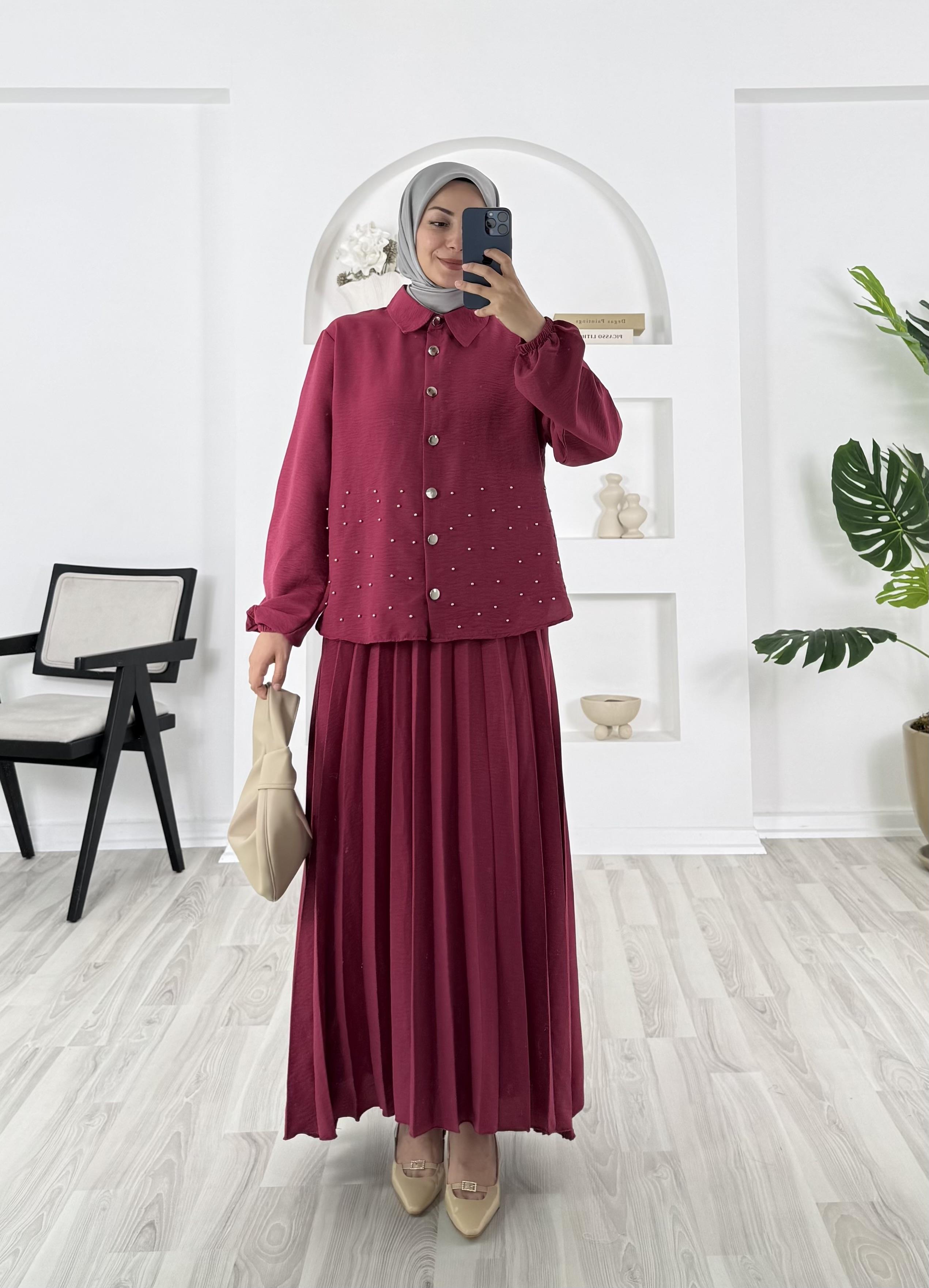 gömlek altı boncuk detaylı etekli takım