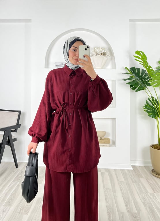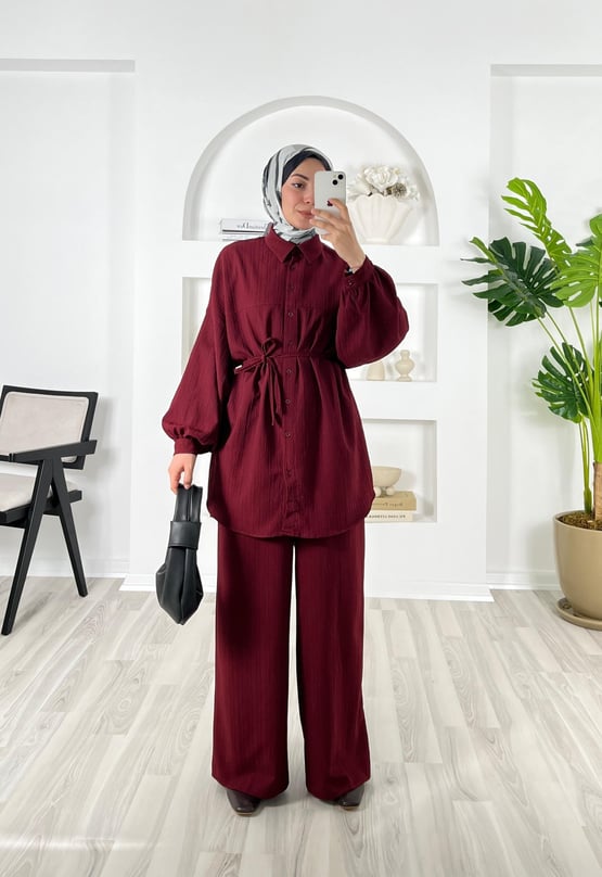 önü pervazlı biyeli pantolonlu takım