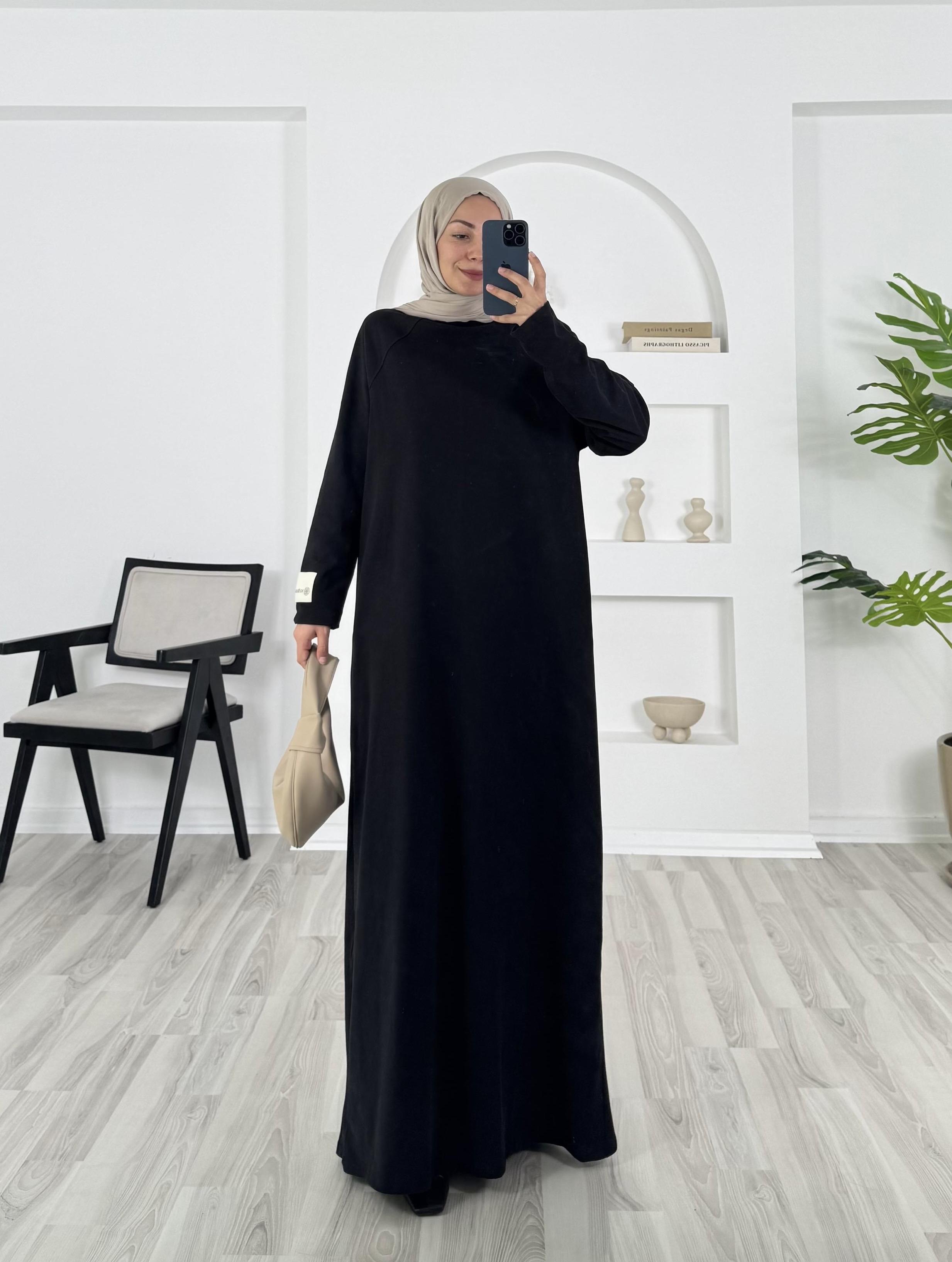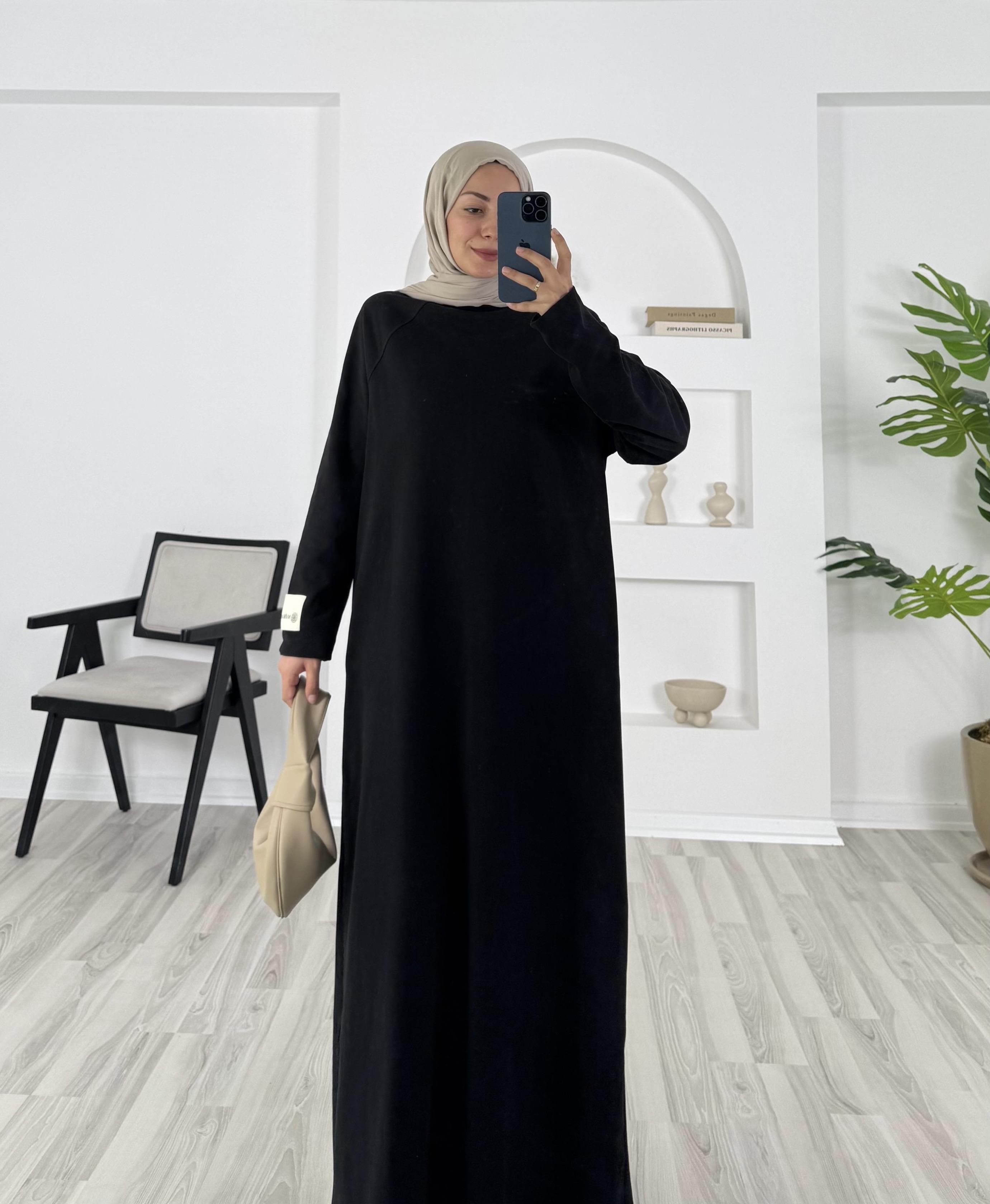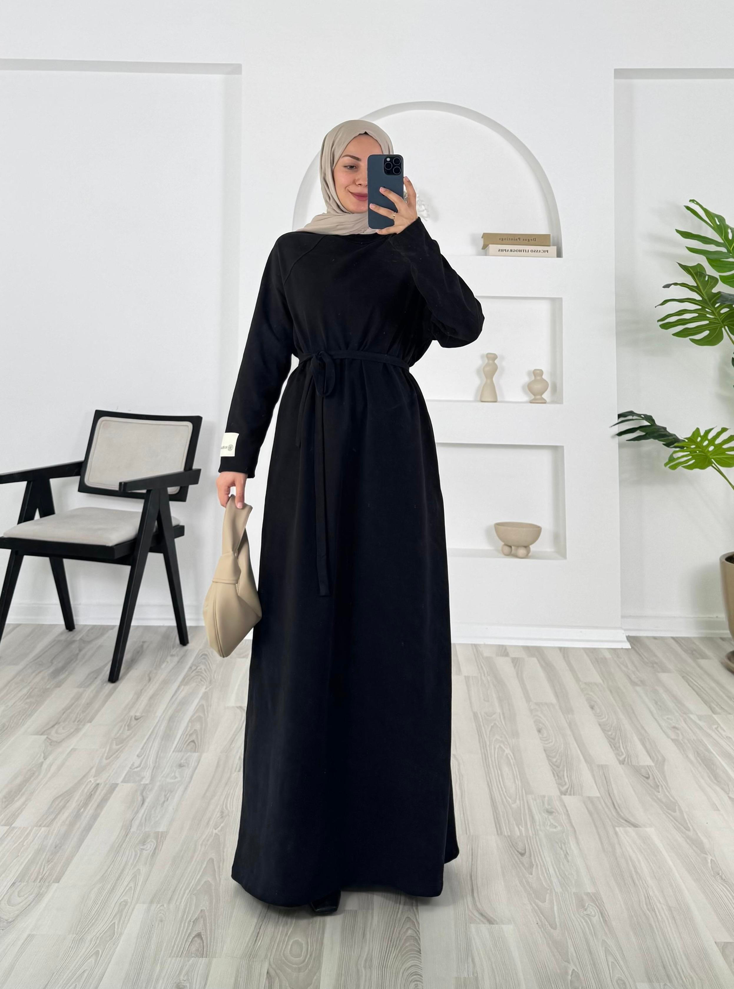 4632 - süprem kumaş kuşaklı elbise - siyah (4632)