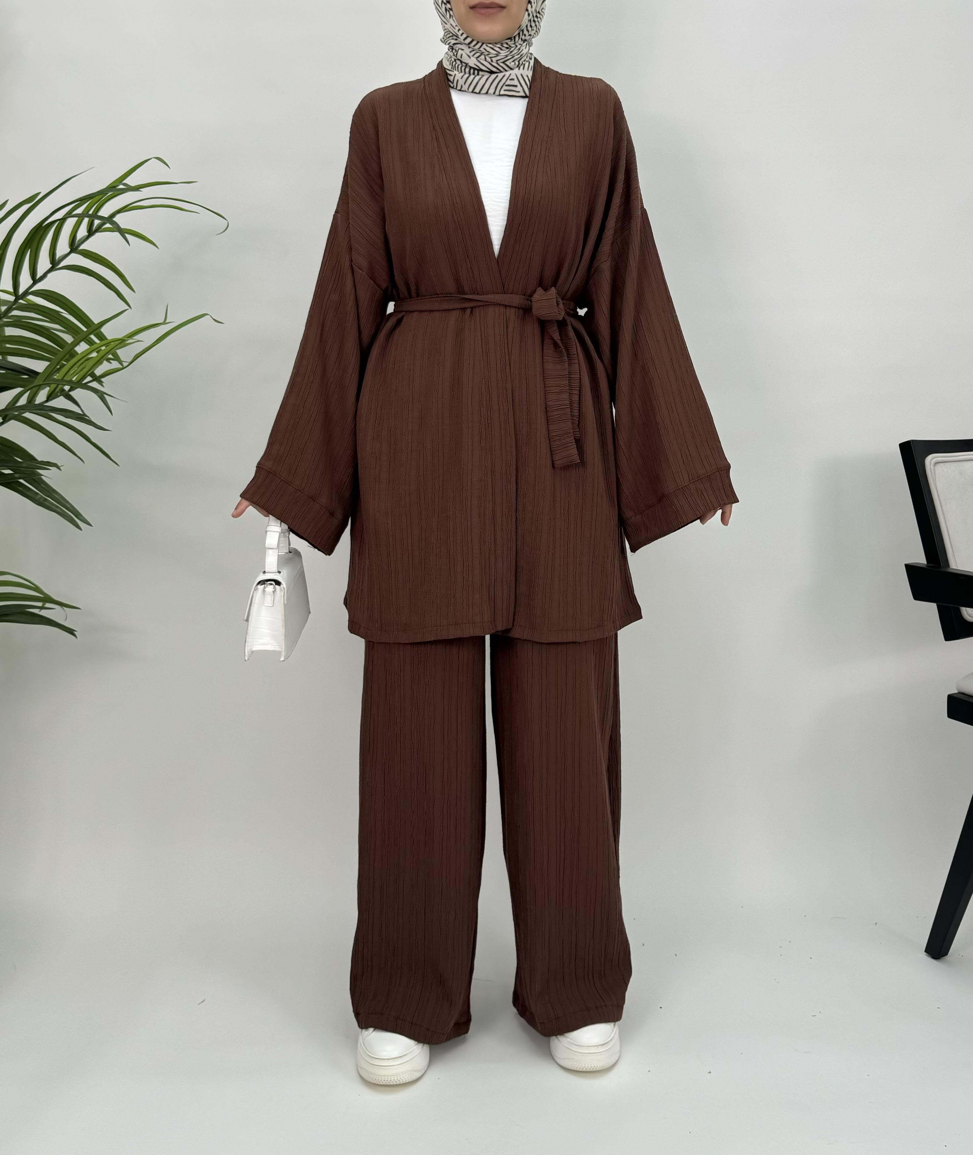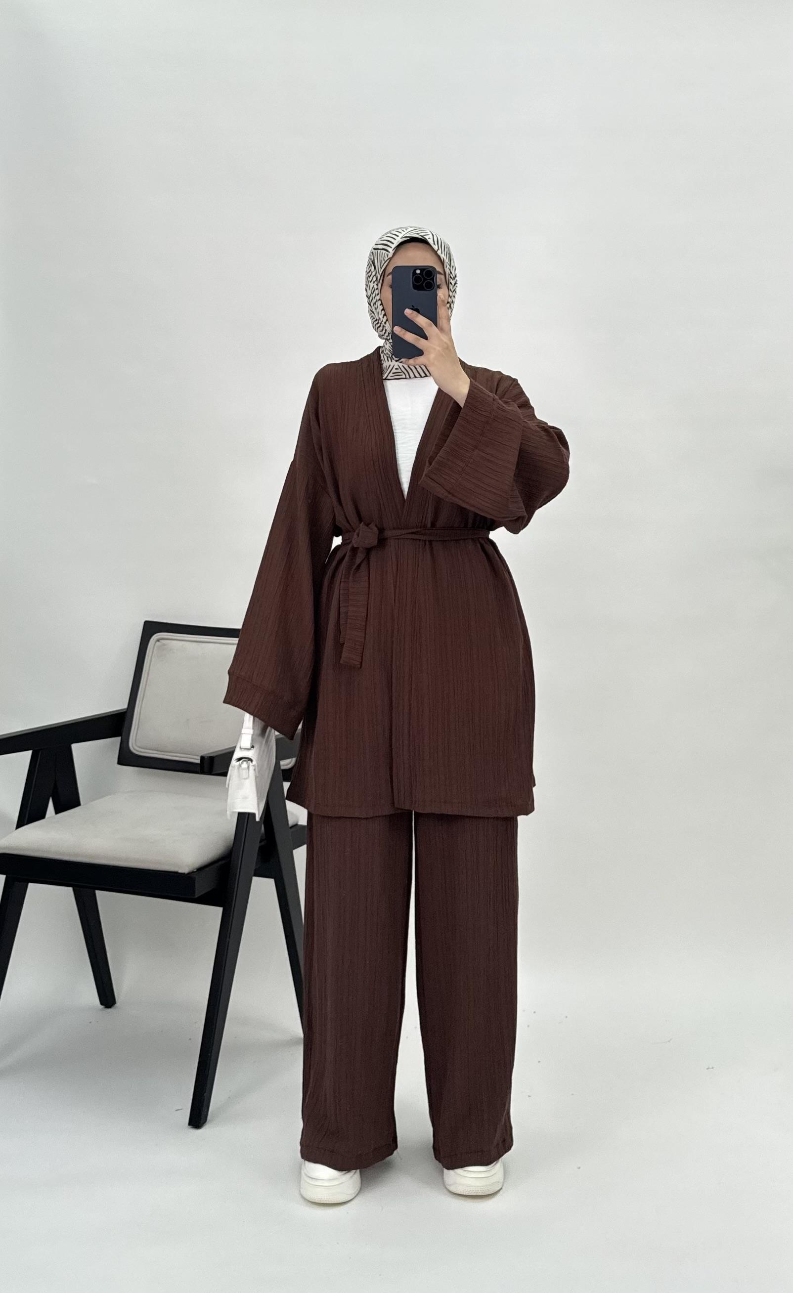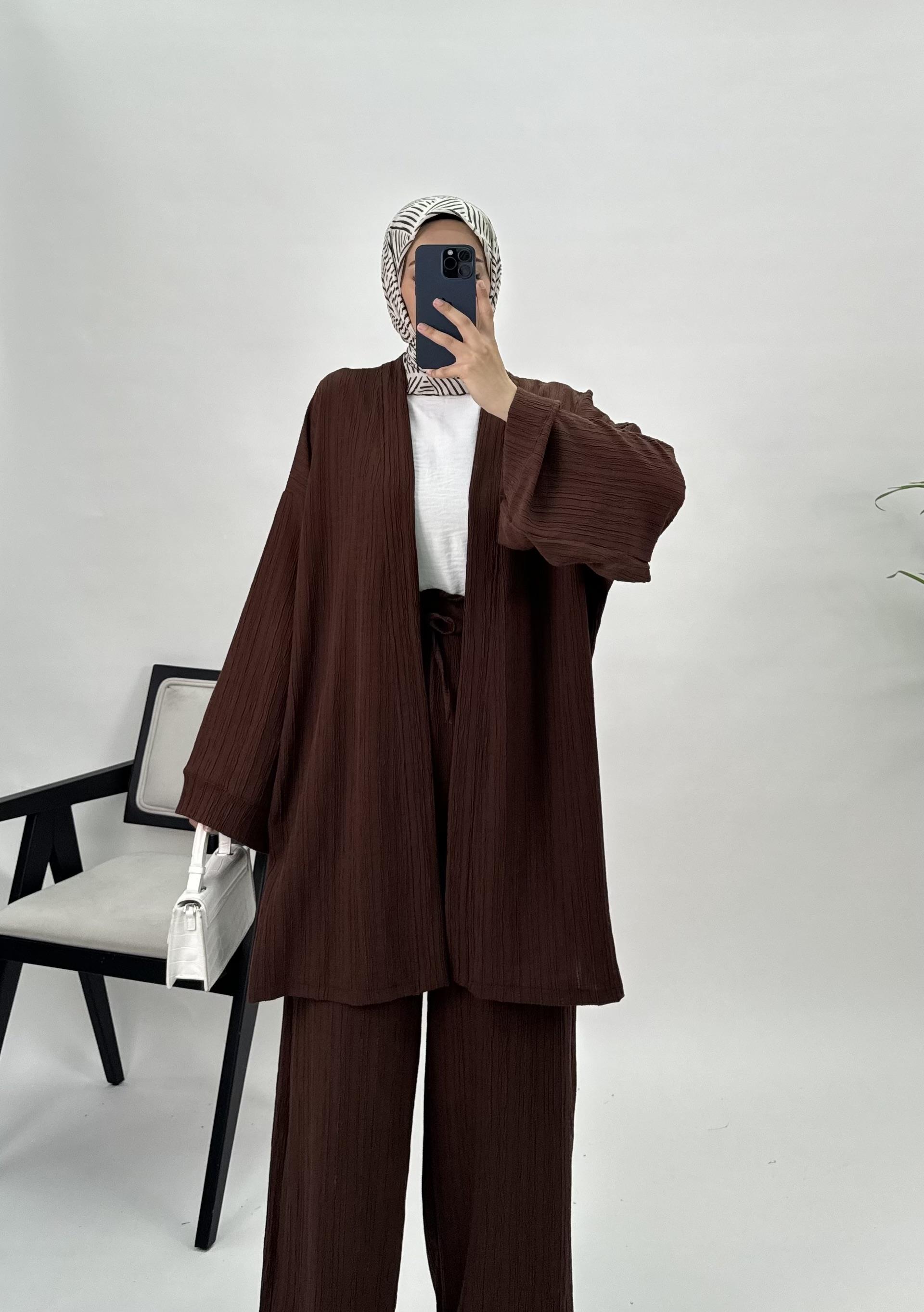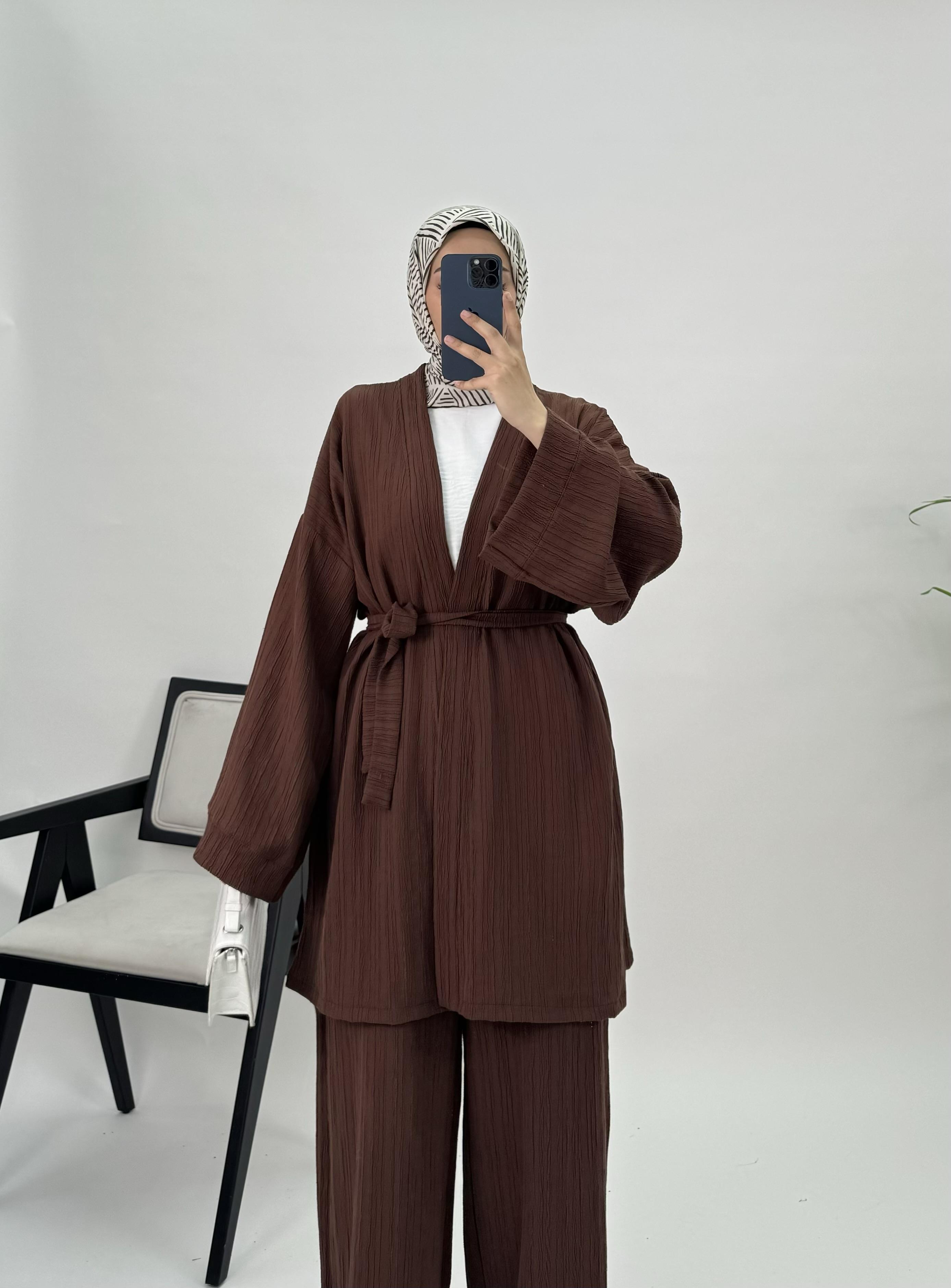 47137 E89+Kaş Kumaş Kimono Takım acı kahve (47137)