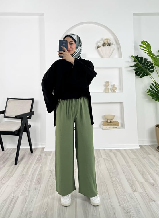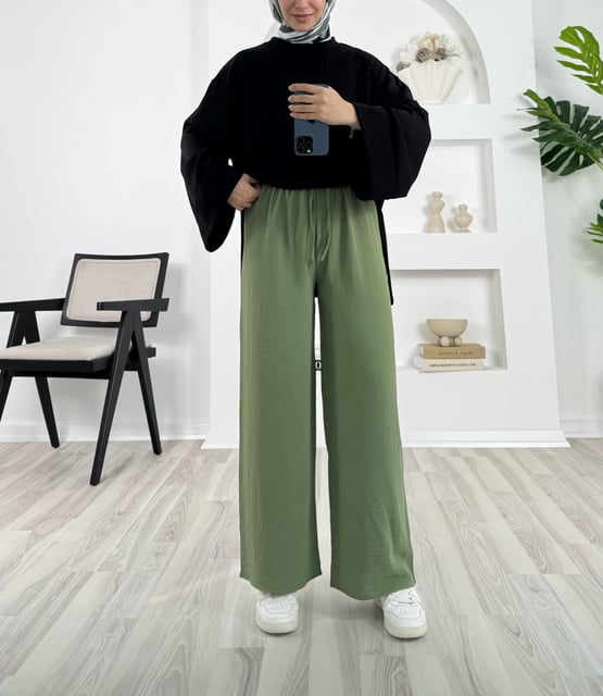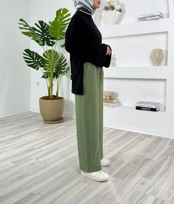 4730-ithal ayrobin kumaş-bol paça pantolon-çağla yeşili (4730)