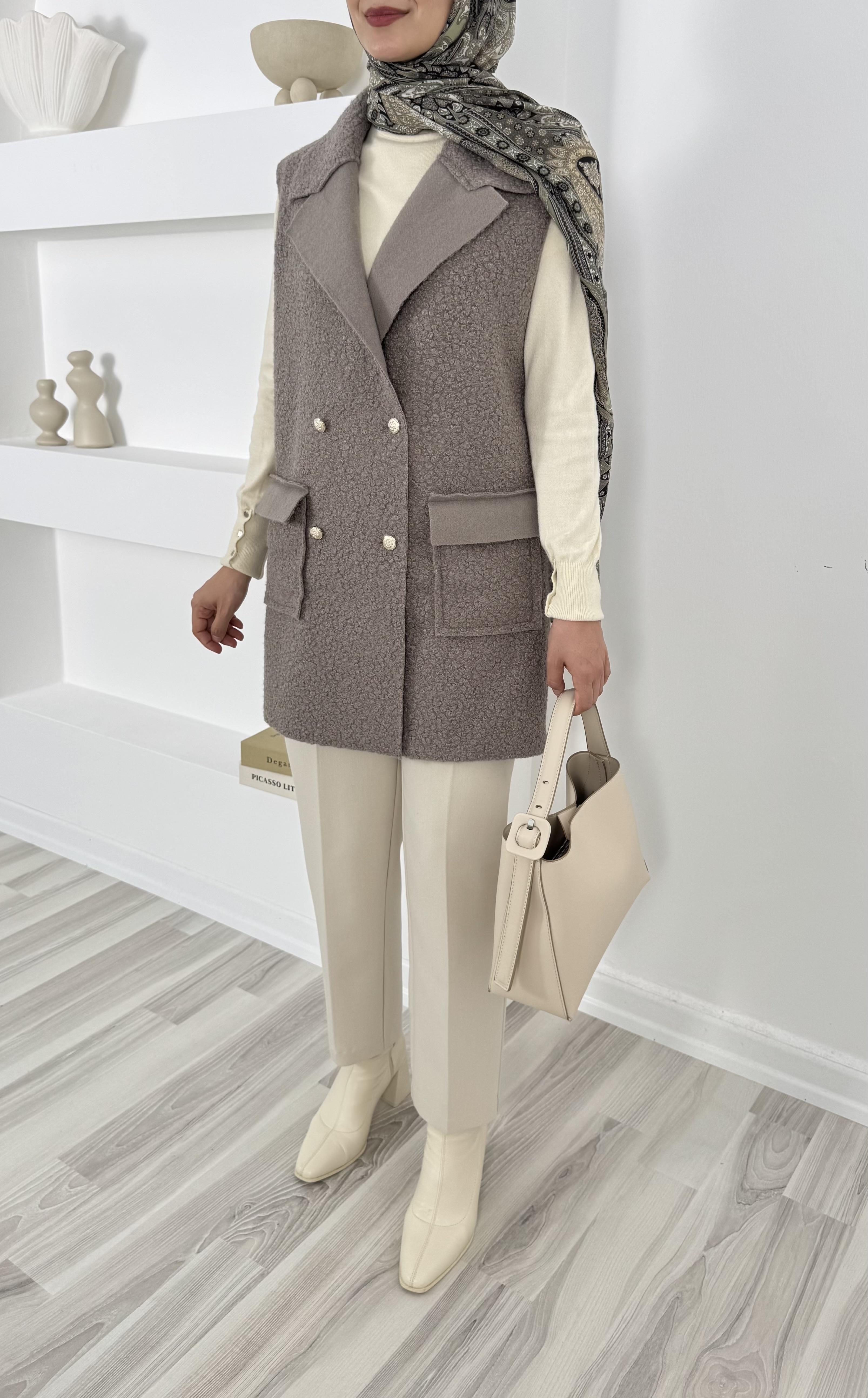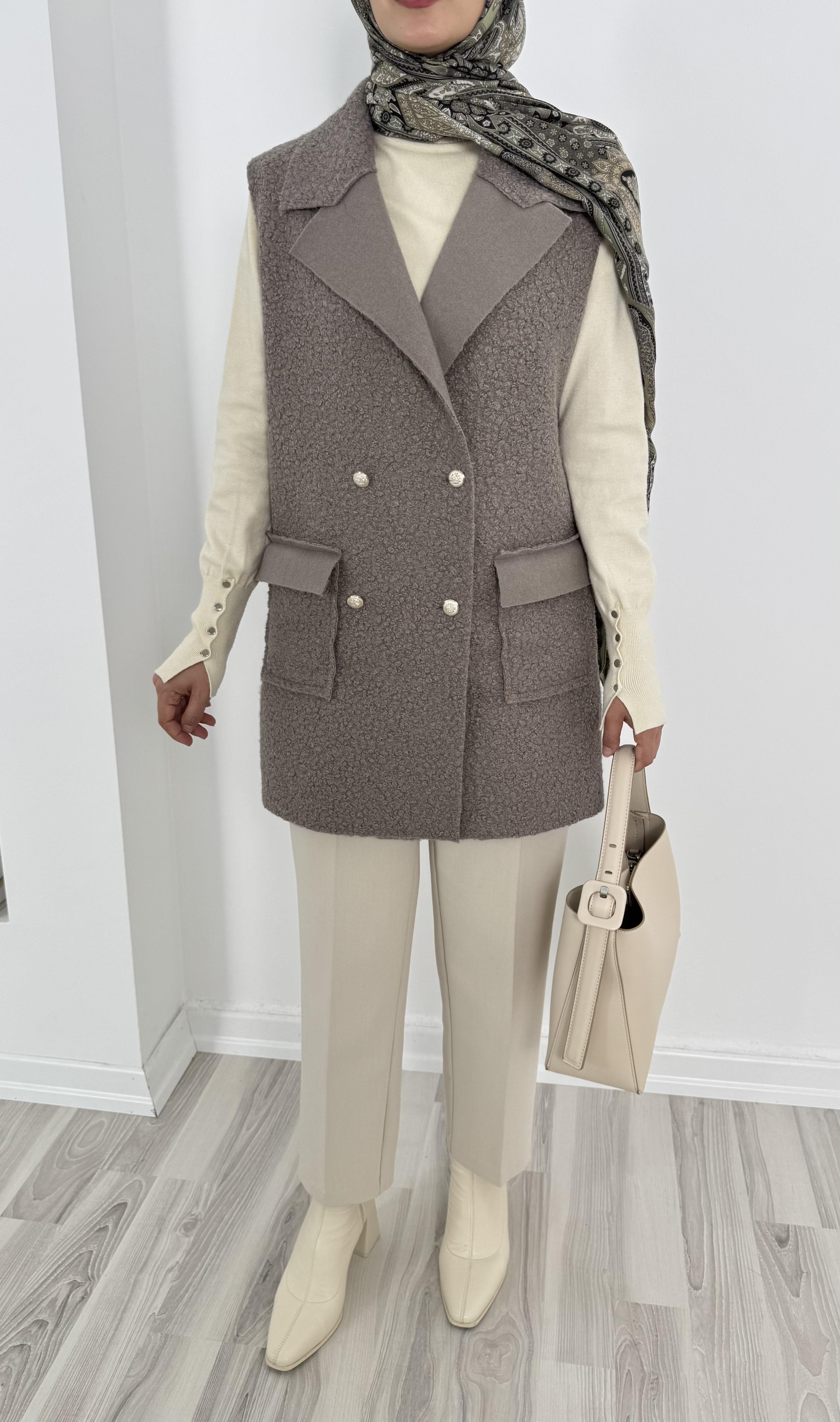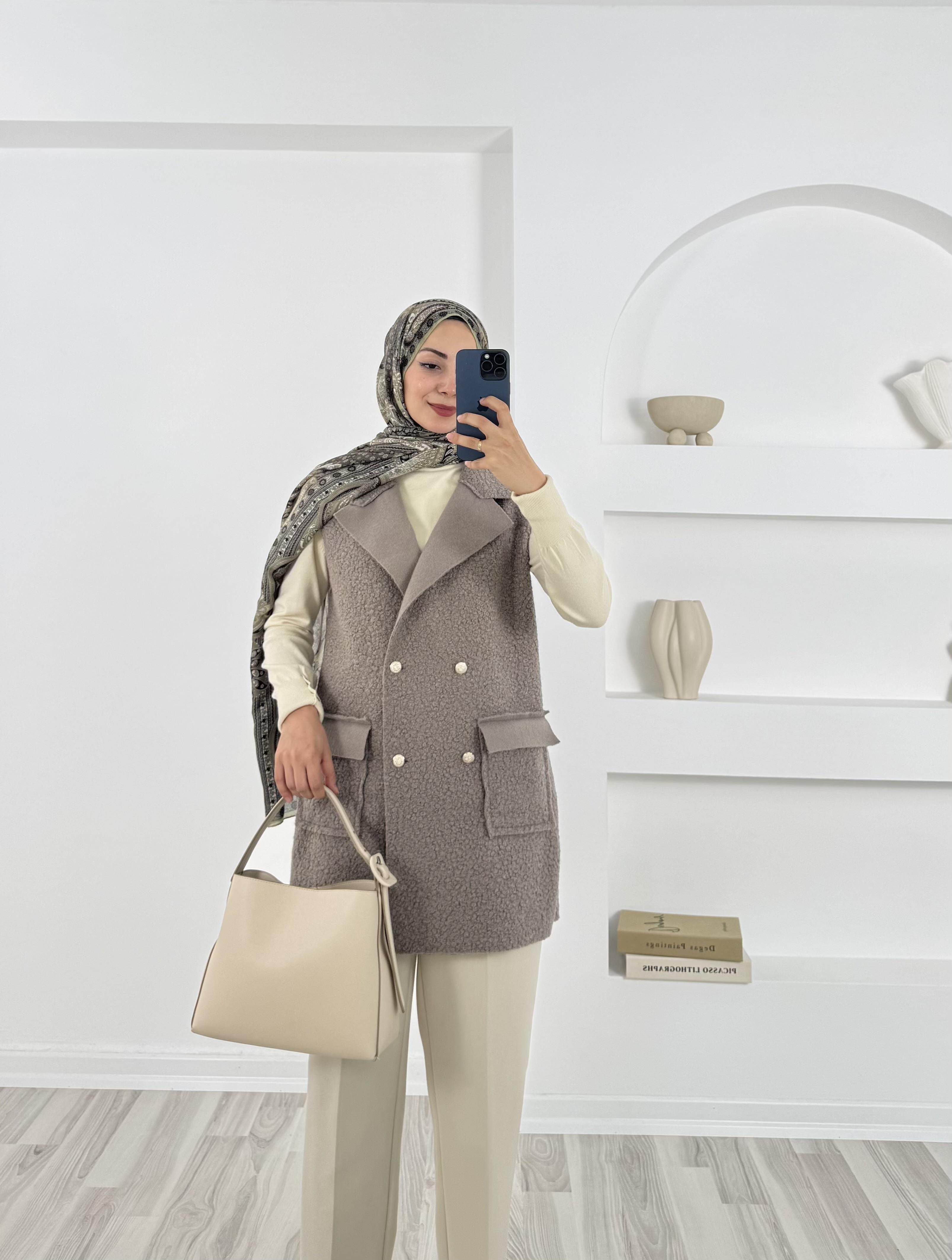 4786-keçe kumaş-önü cepli düğmeli yelek-vizon (4786)