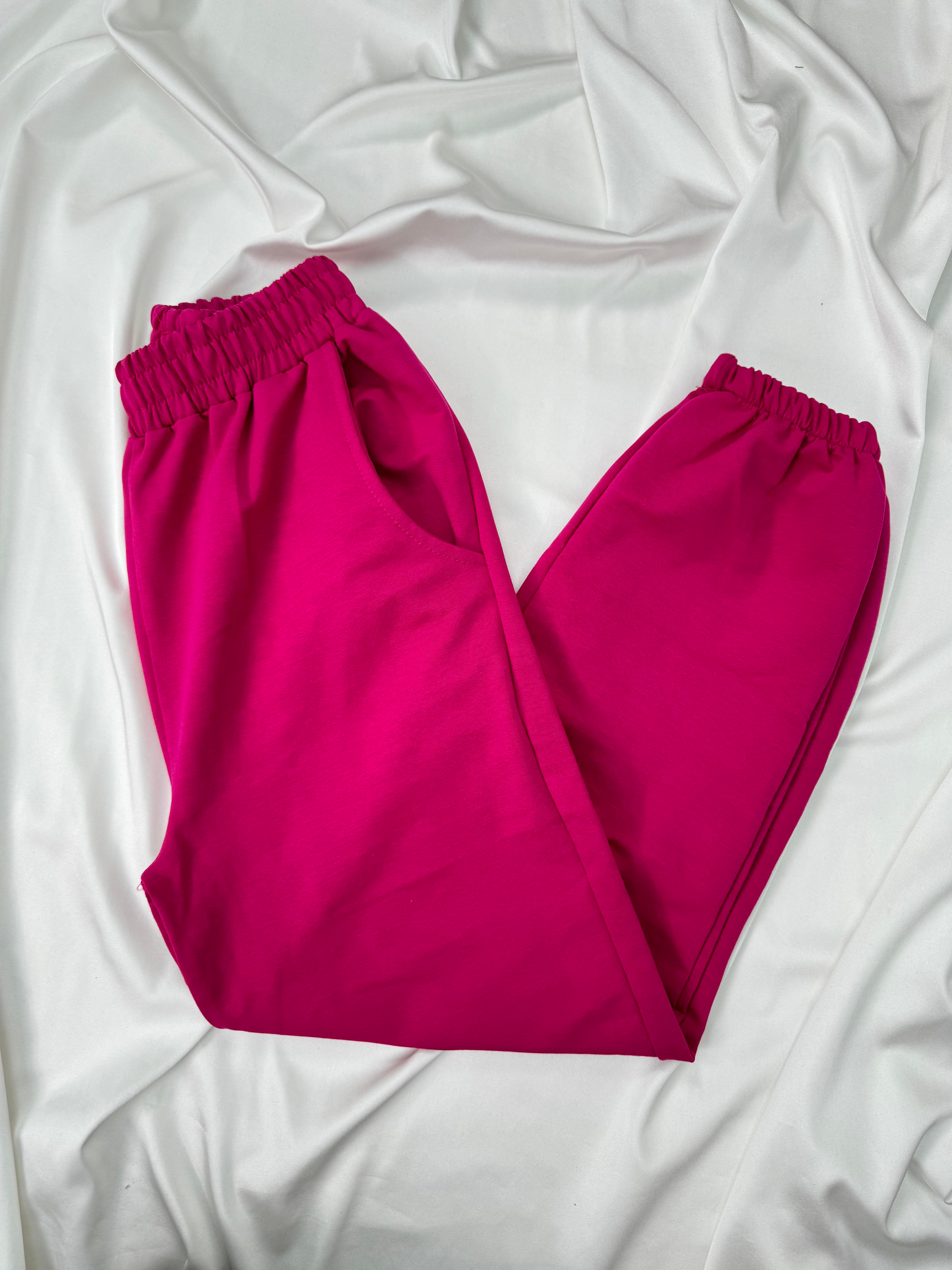 4828-iki iplik kumaş eşofman altı-fuşya (4828)