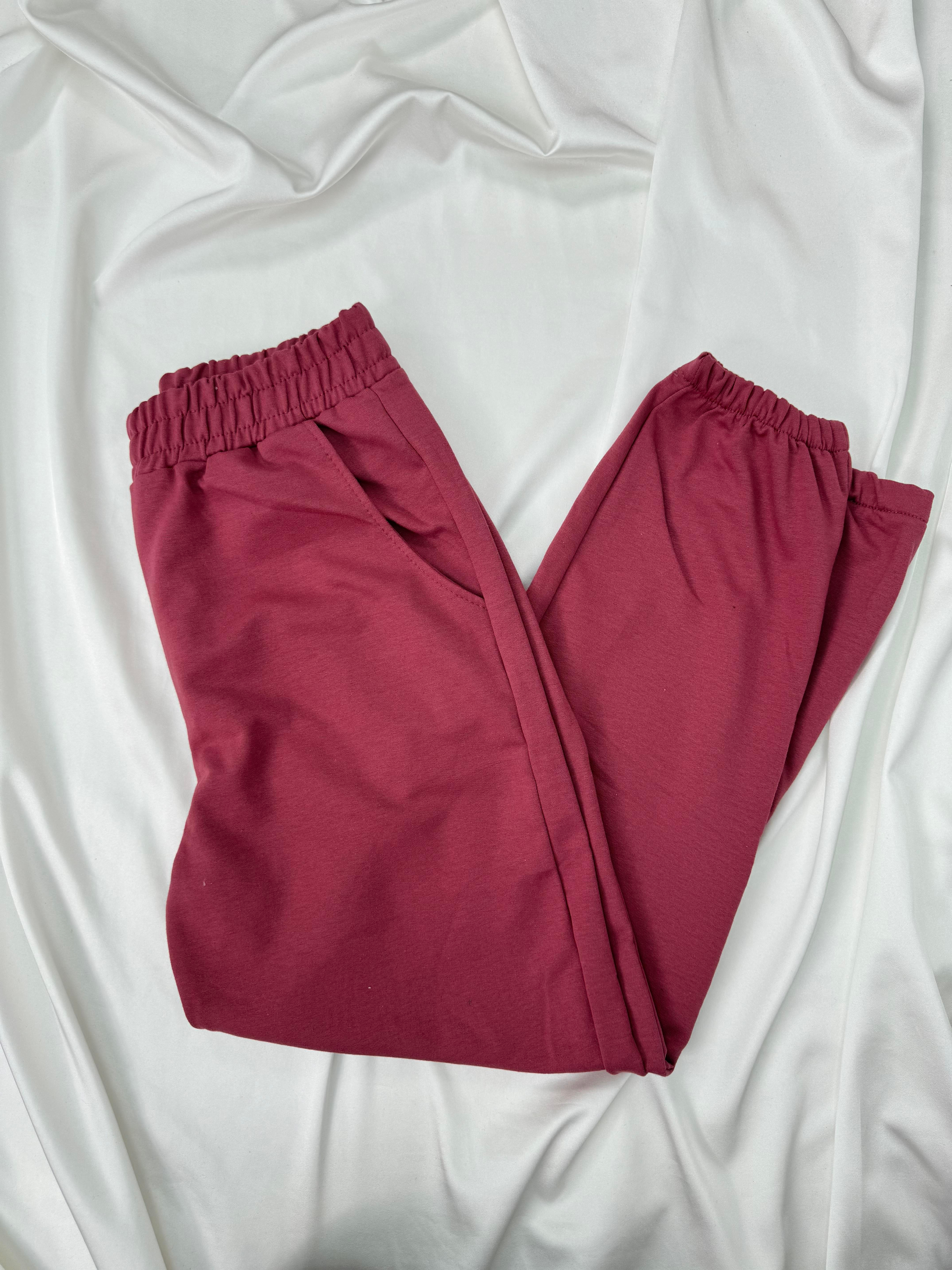 4828-iki iplik kumaş eşofman altı-gül kurusu (4828)