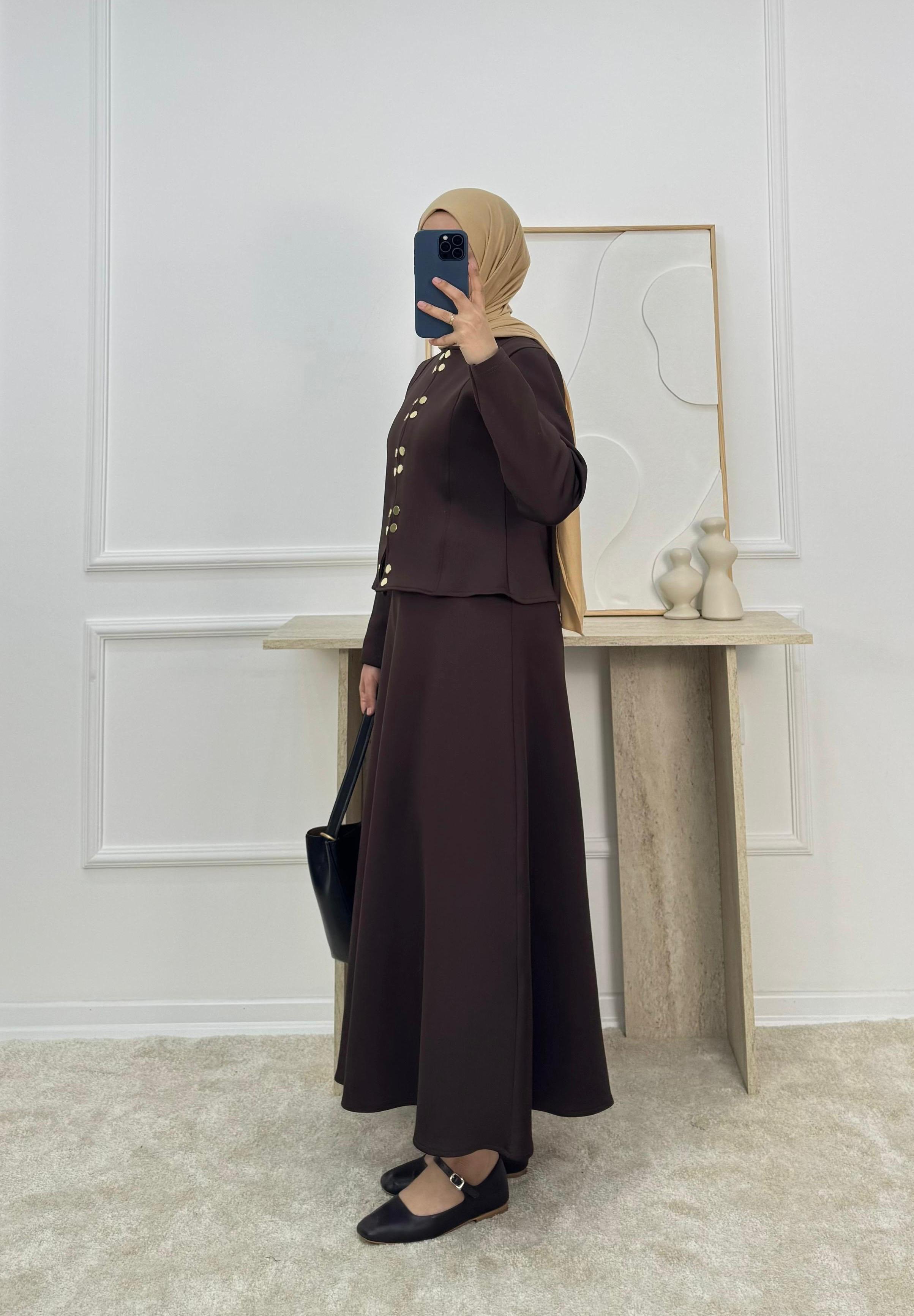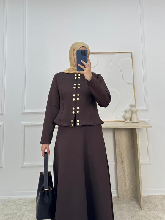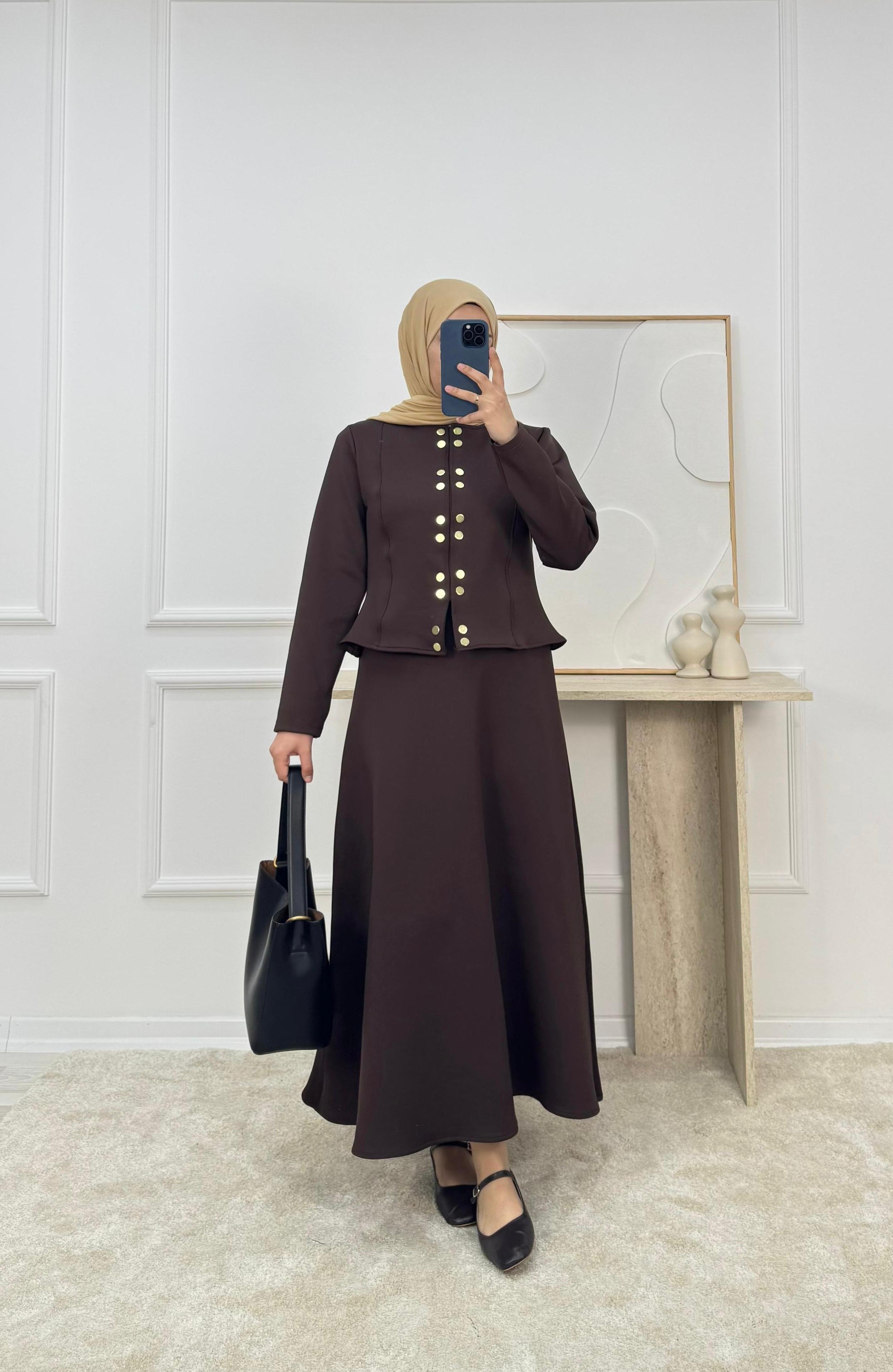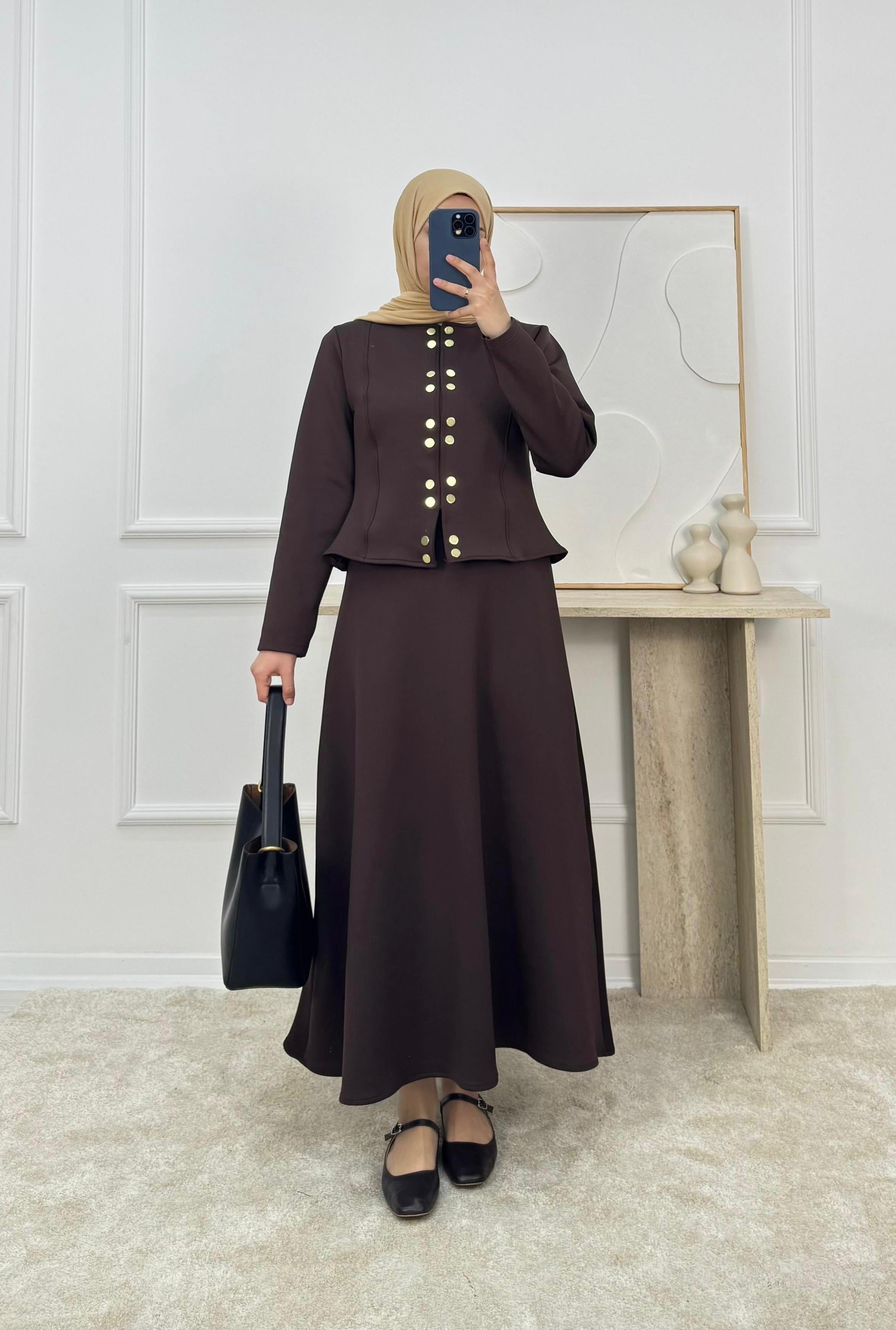 4857-sukuba dalgıç kumaş çıt çıtlı etekli takım-acı kahve (4857)