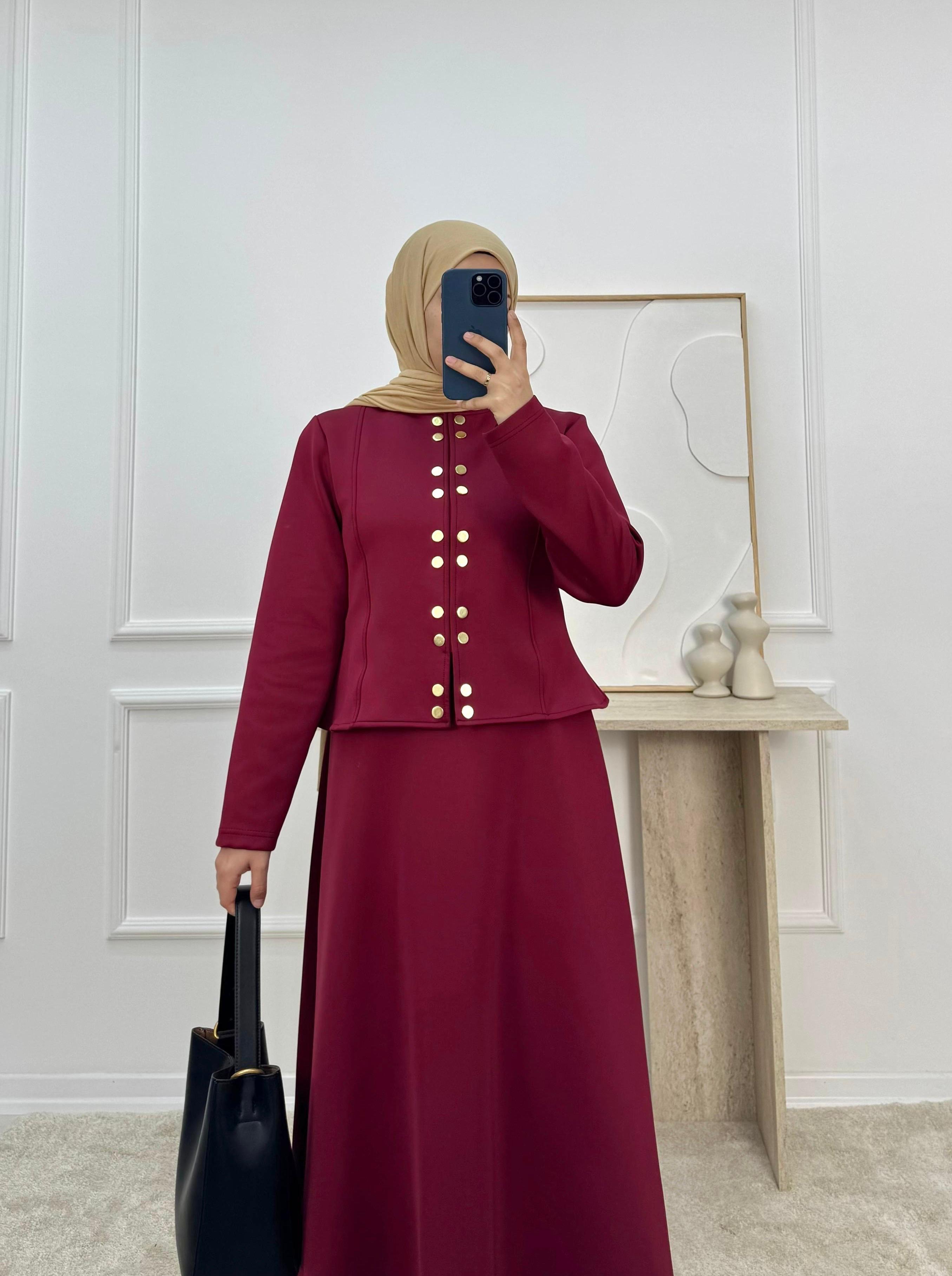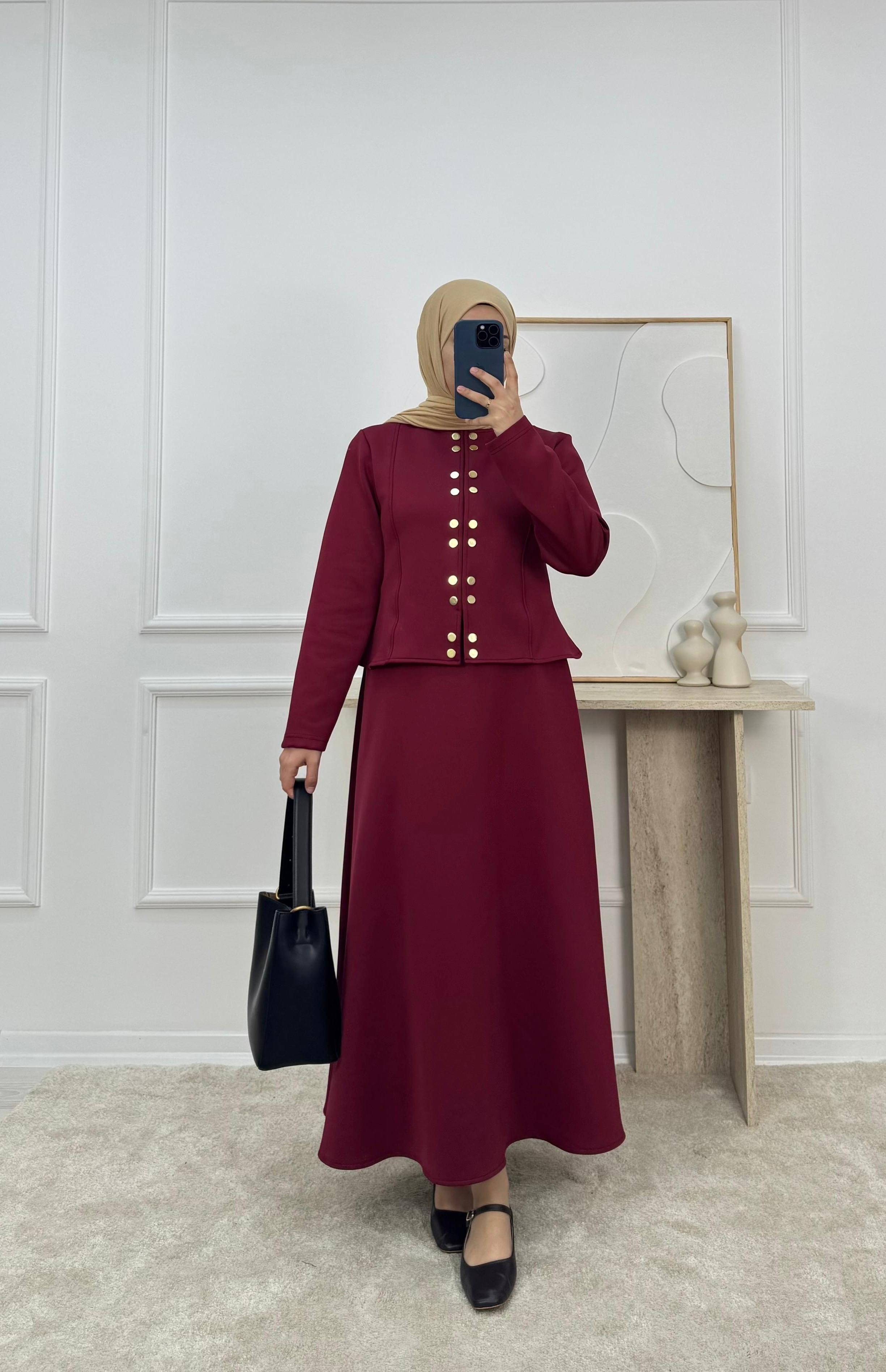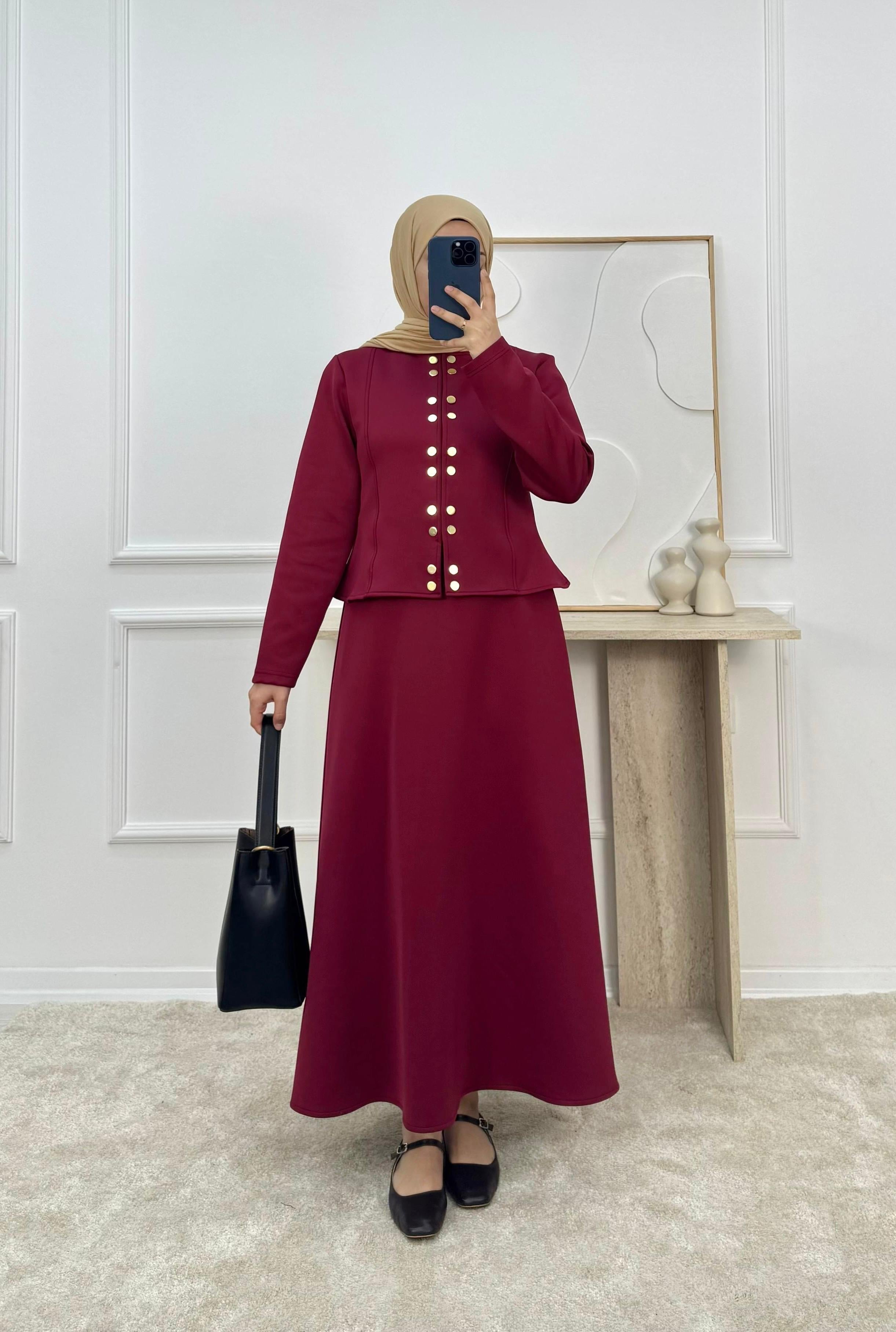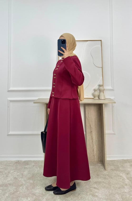4857-sukuba dalgıç kumaş çıt çıtlı etekli takım-bordo (4857)