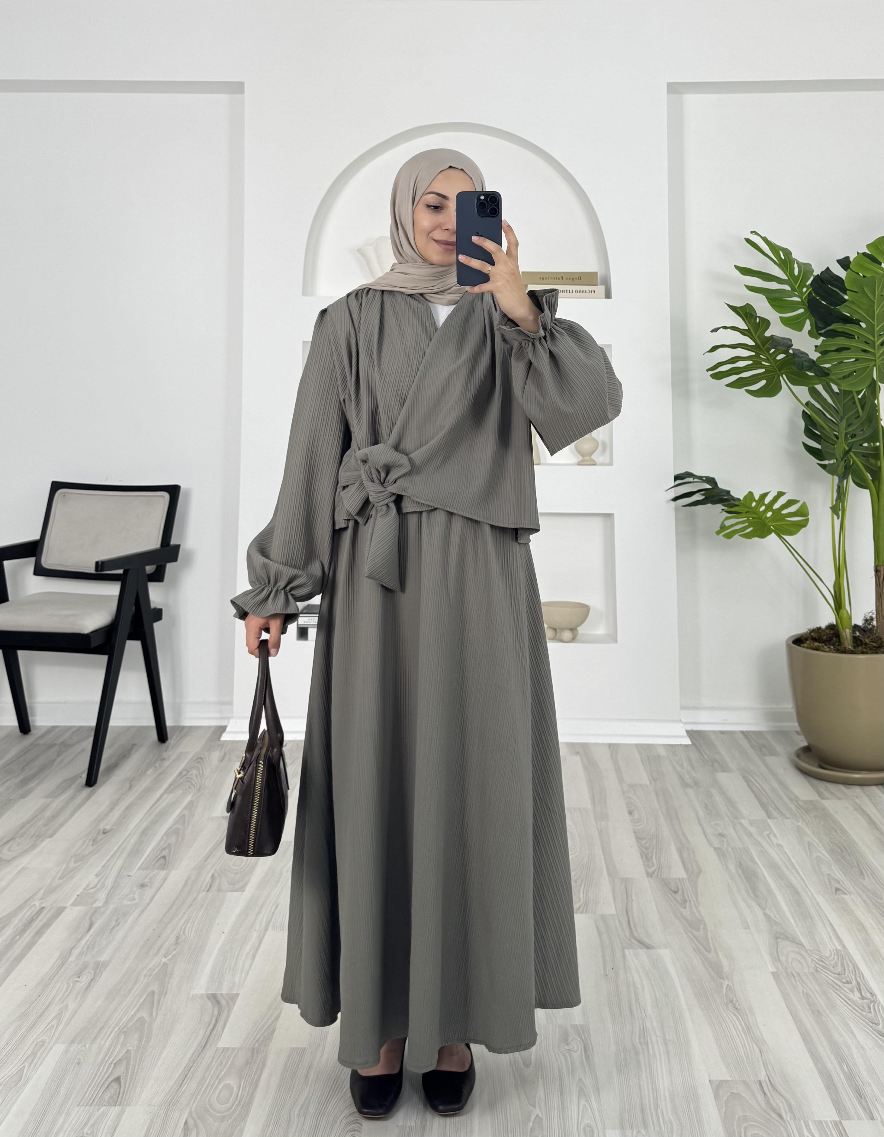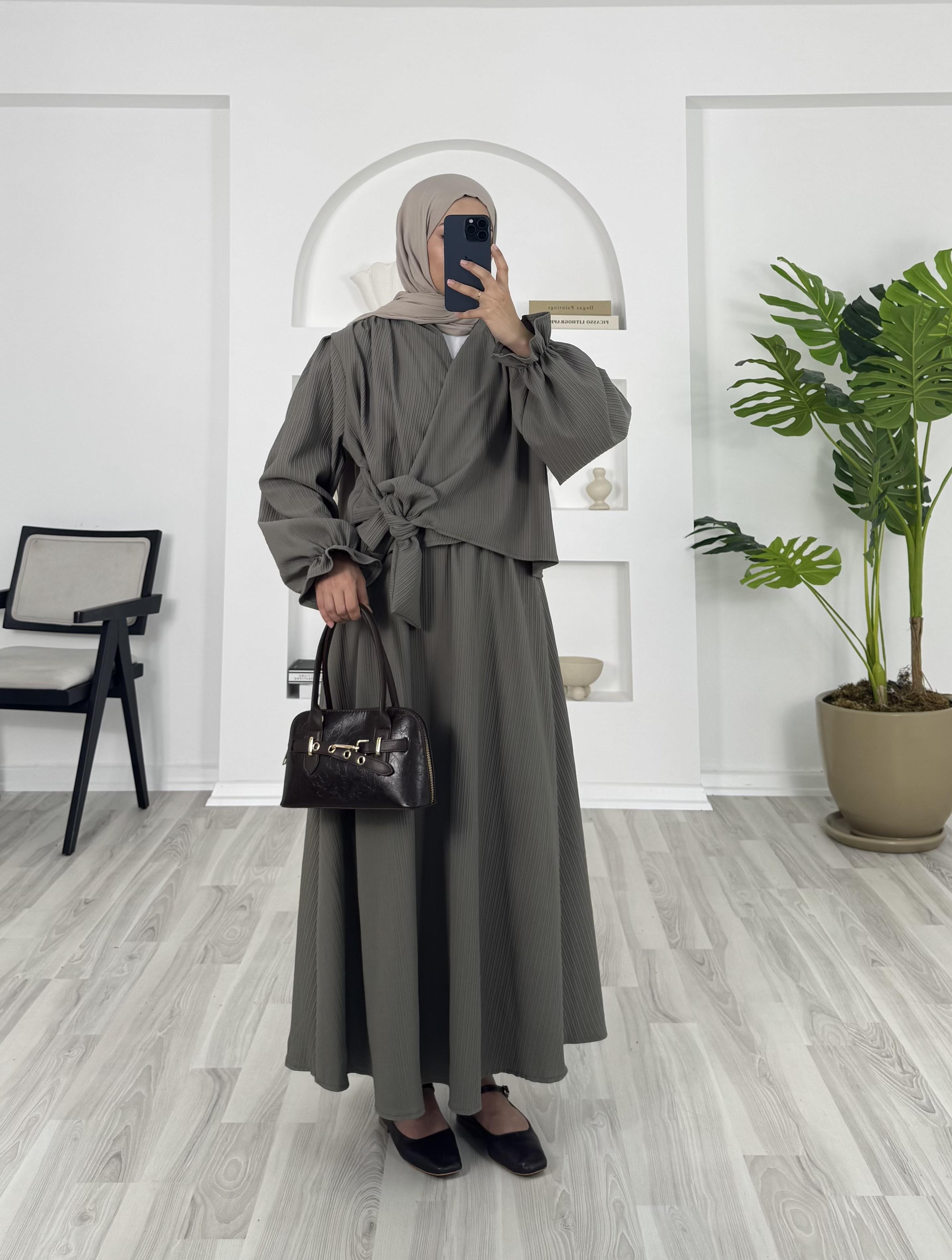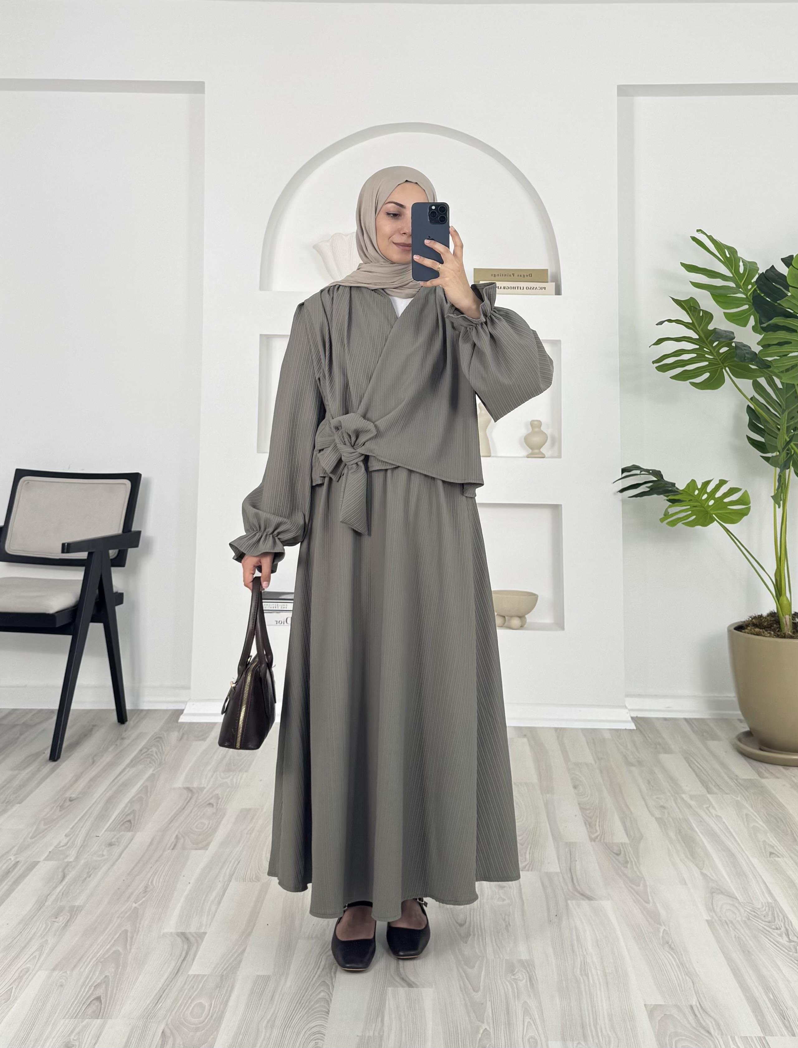 49120 - fitilli helena kumaş önü baglamalı etekli takım - yeşil (49120 )
