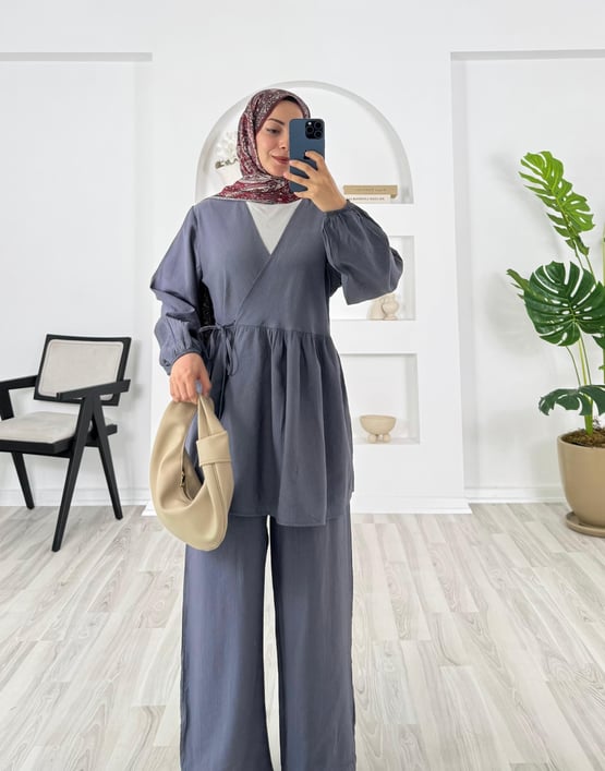 altı pile detaylı pantolonlu takım