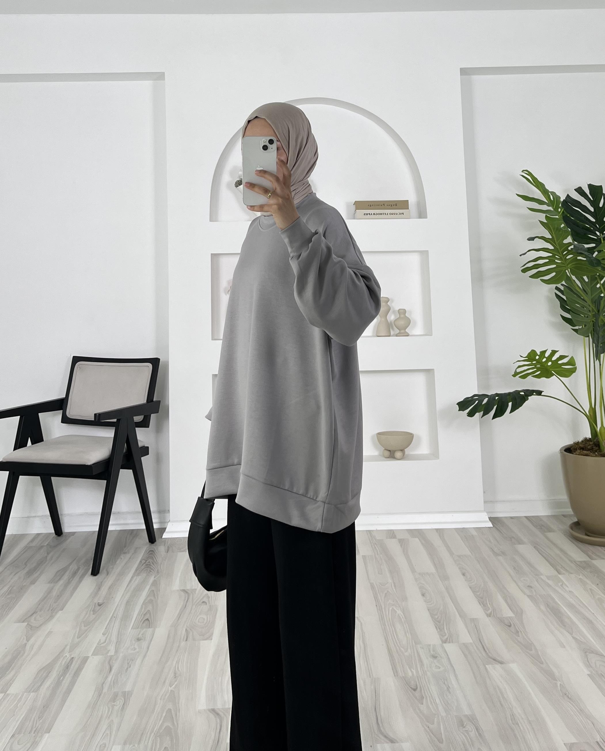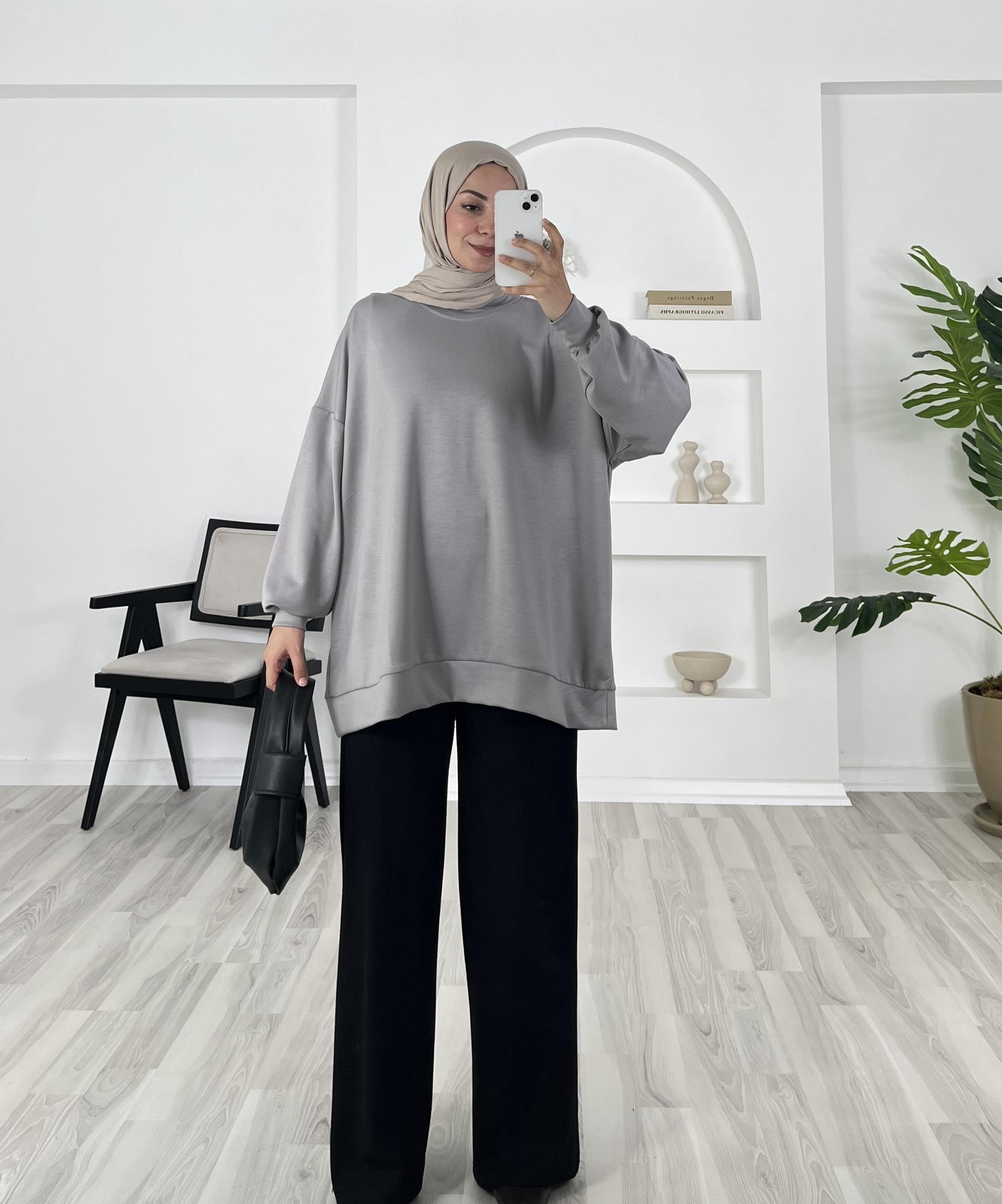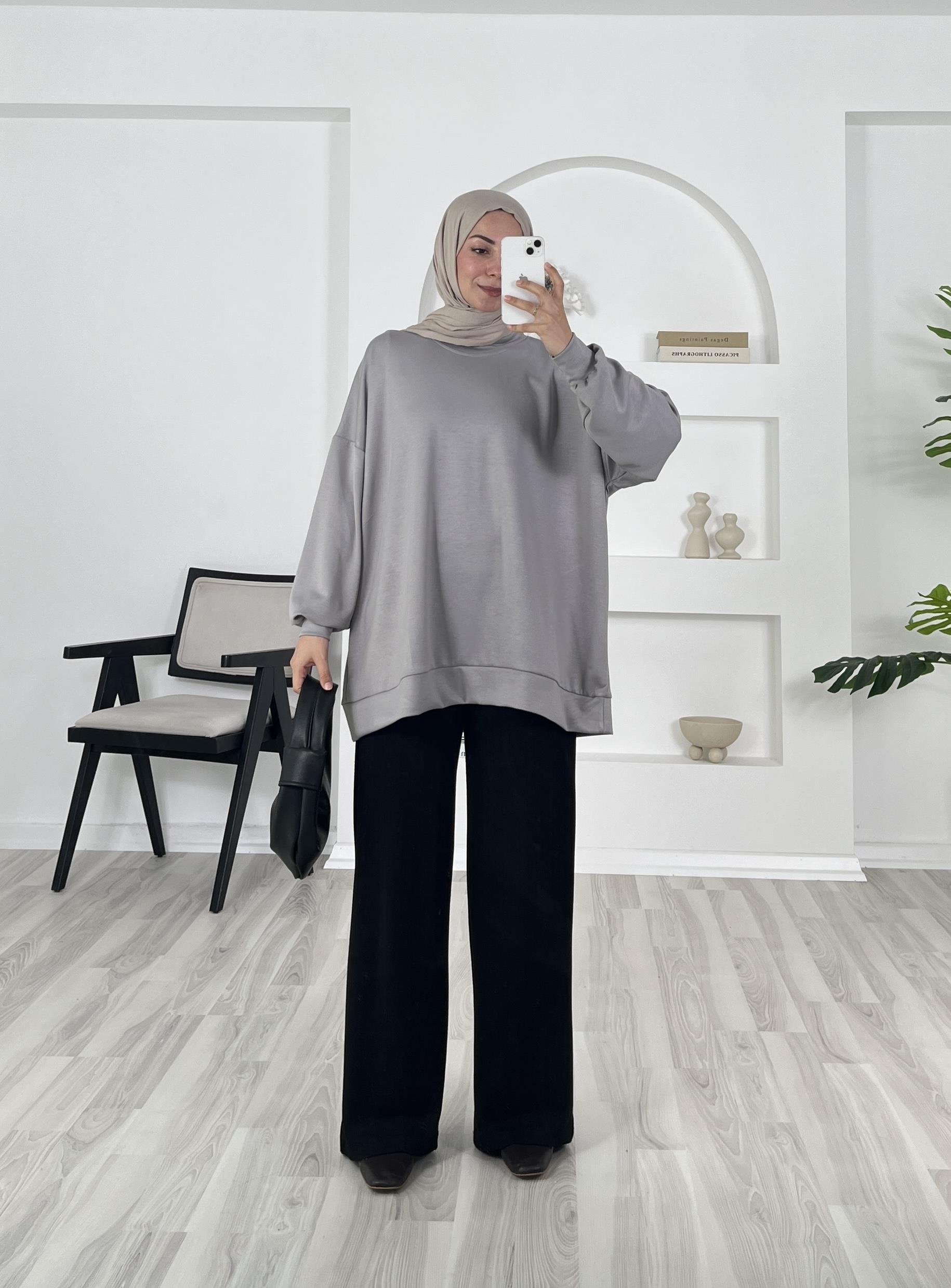 5236-oysho kumaş-balıkçı yaka düz model tunik-gri (5236)