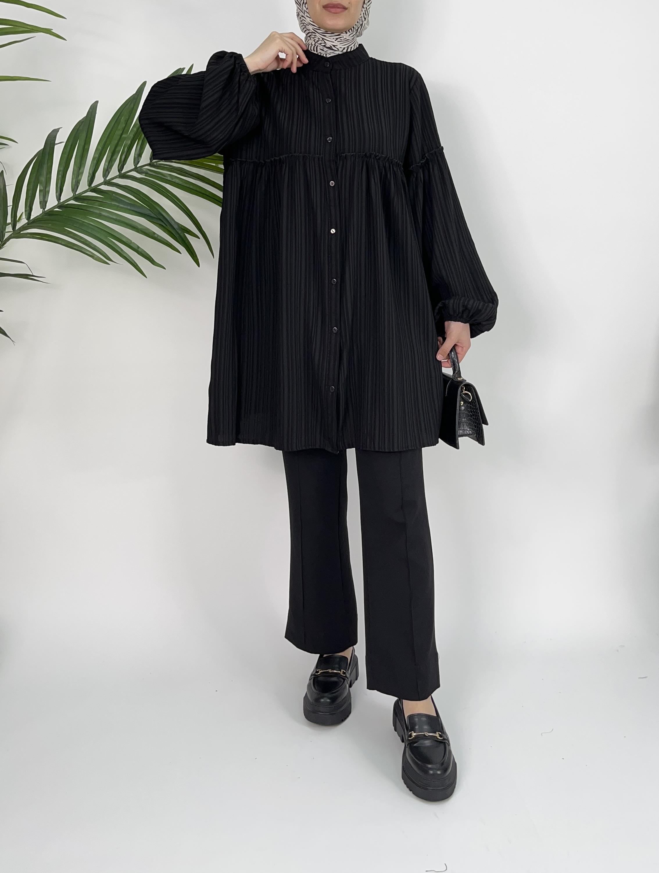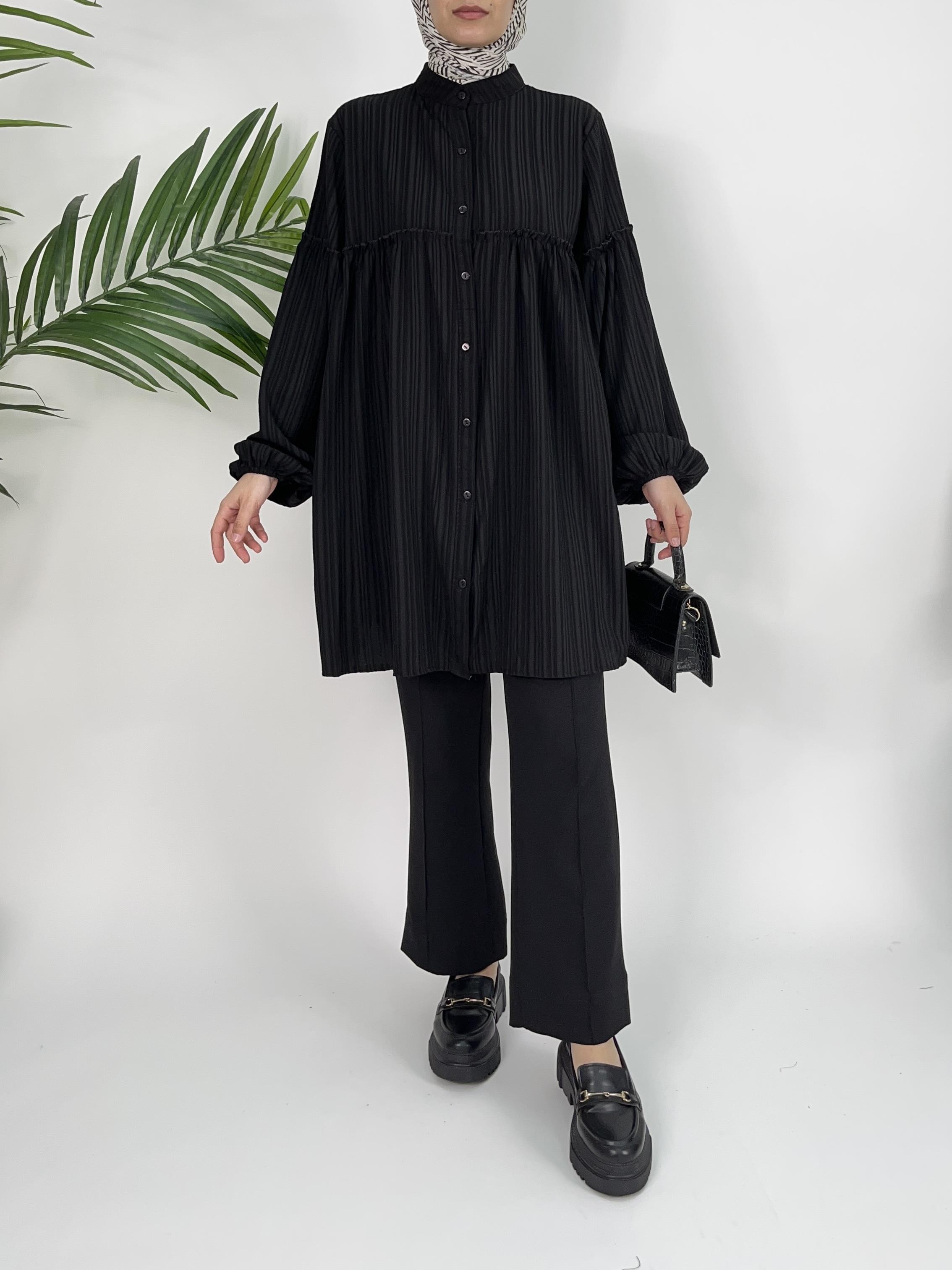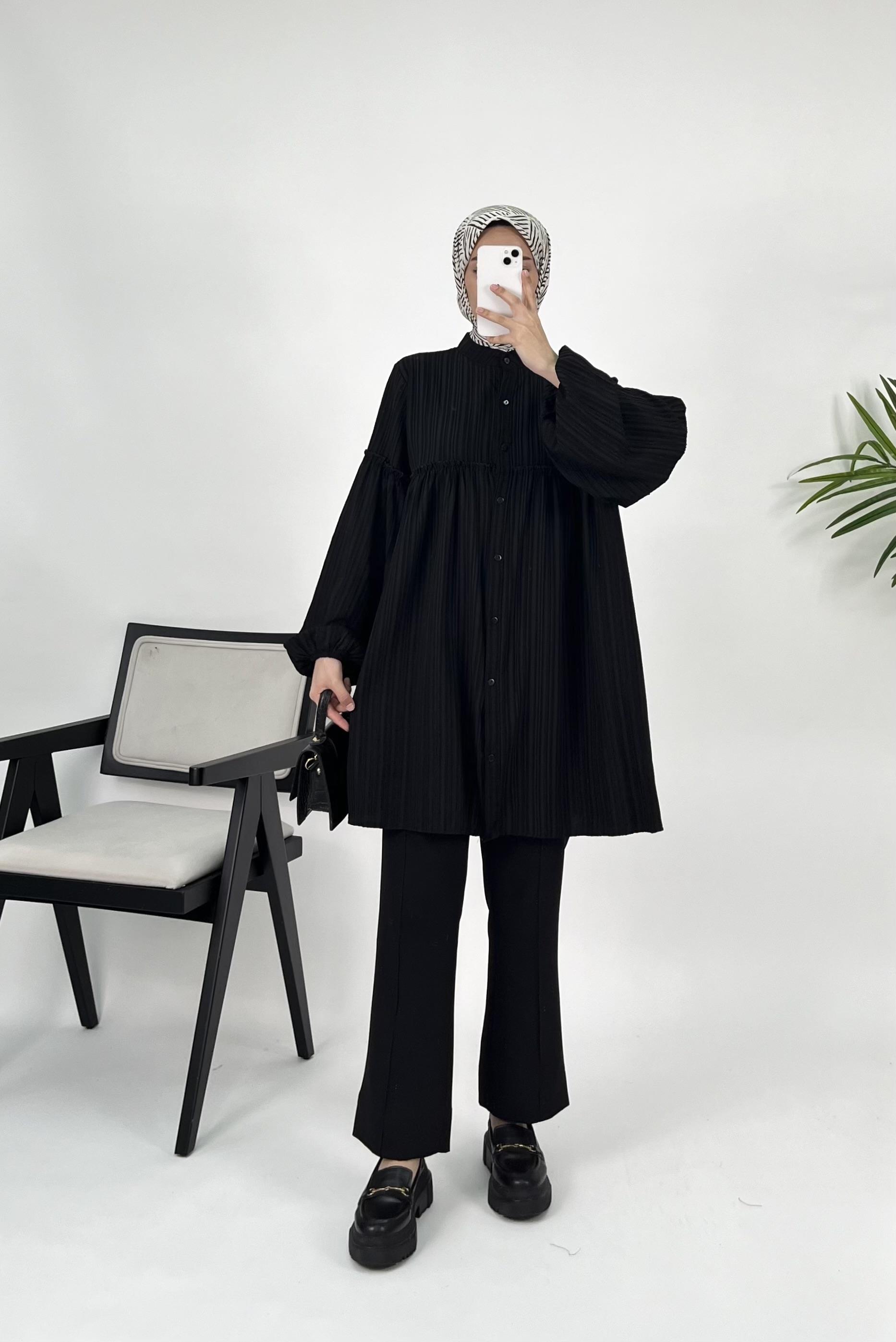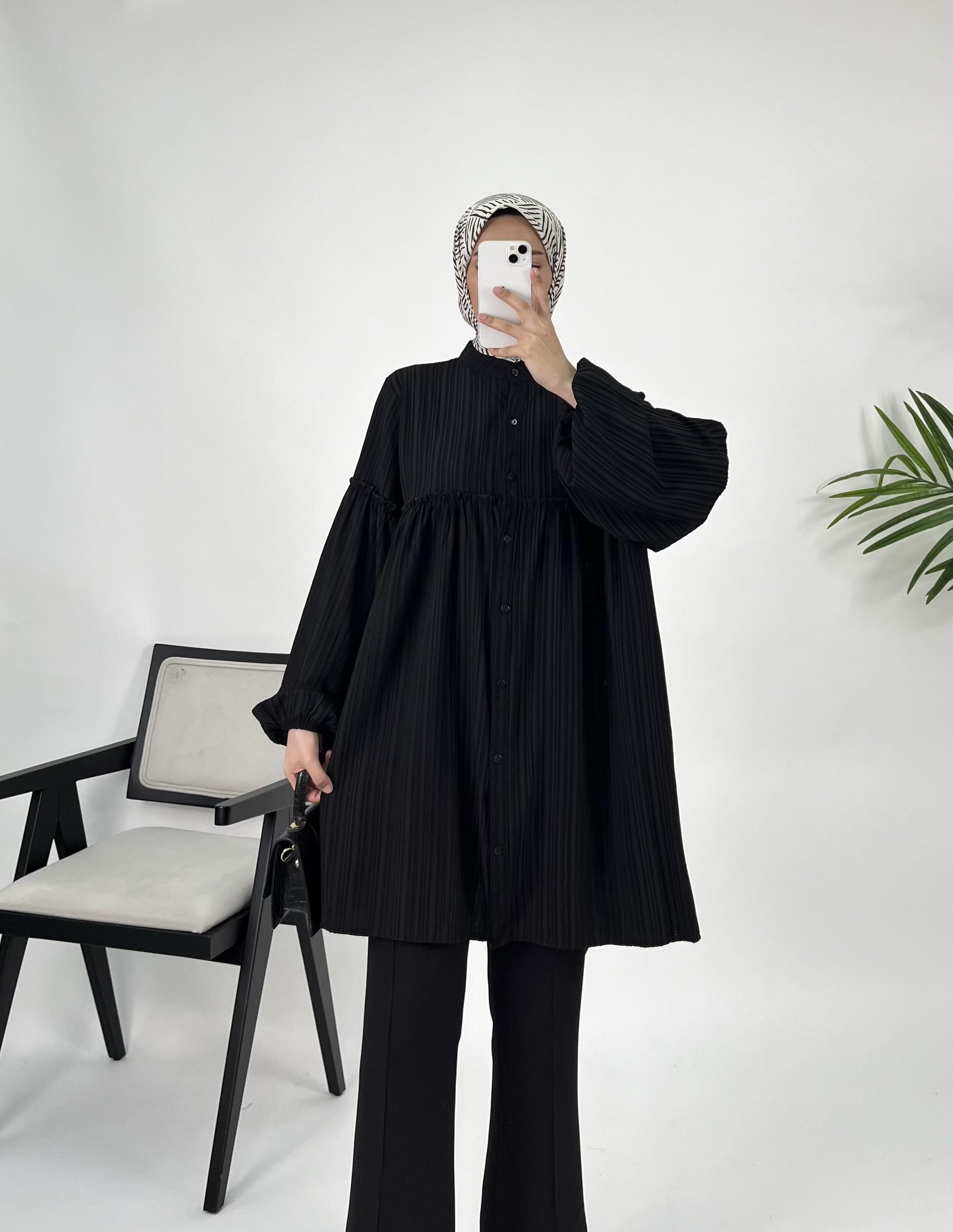 5267 - NADA KUMAŞ DÜGMELI TUNIK - SIYAH (5267)