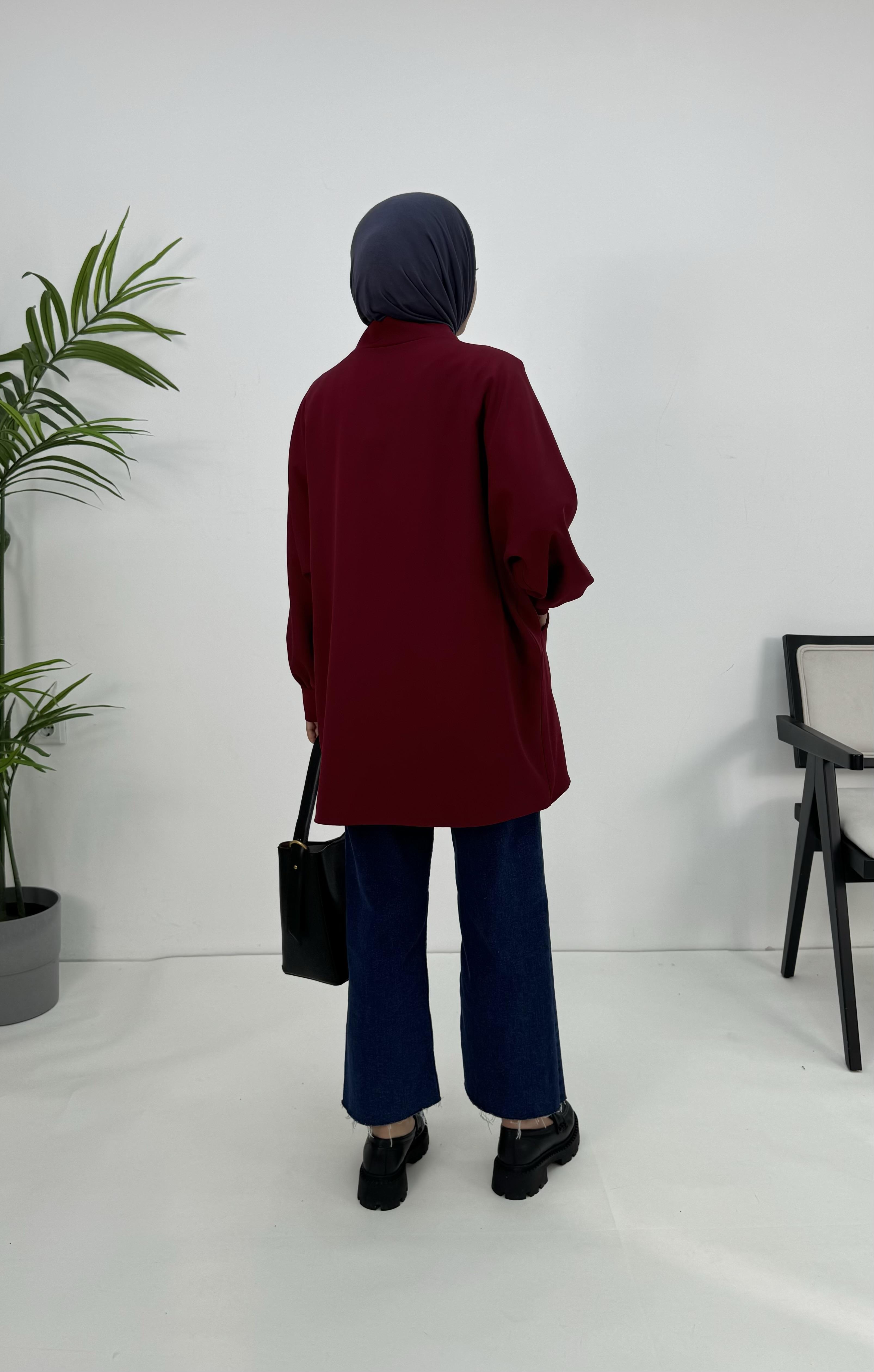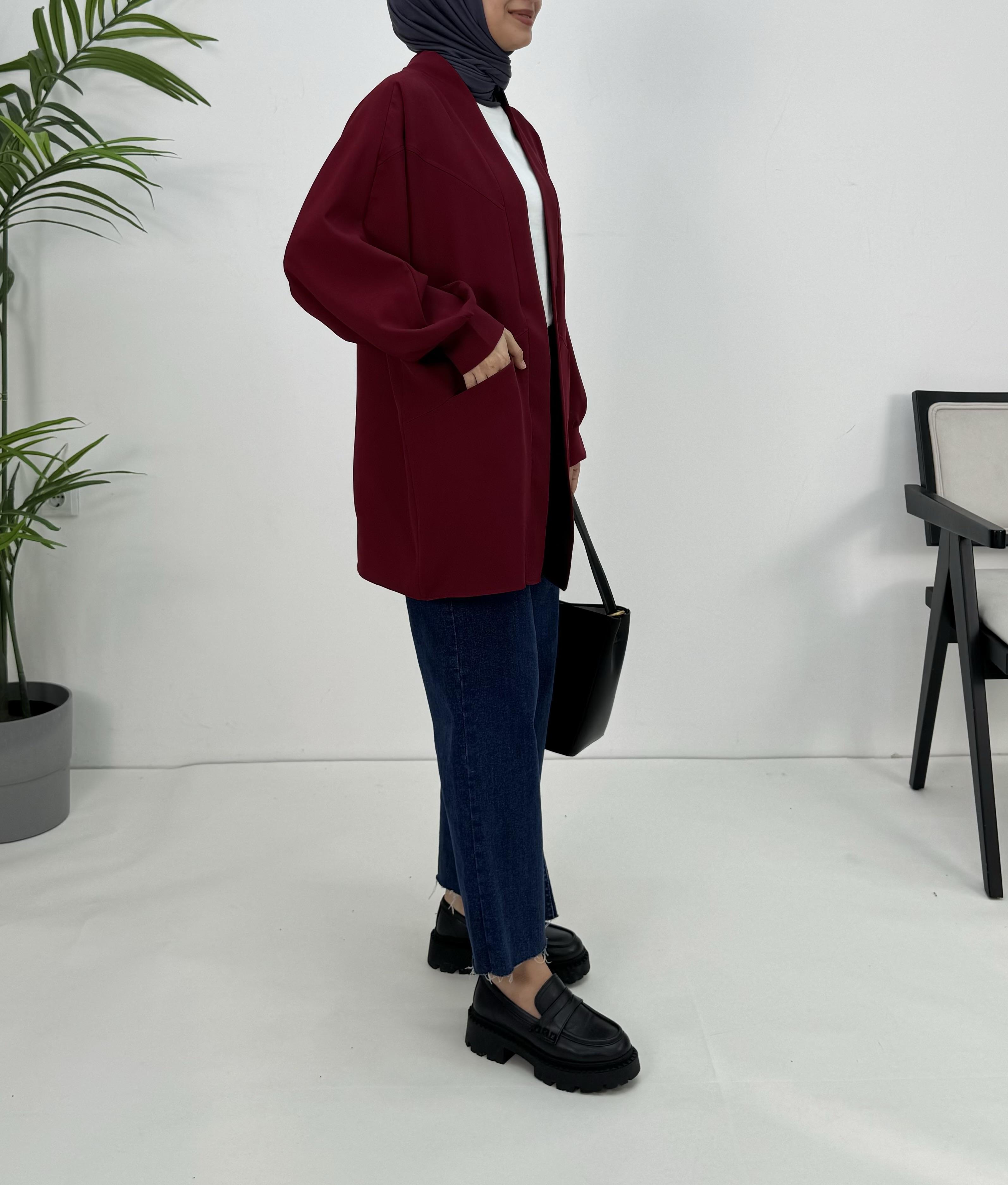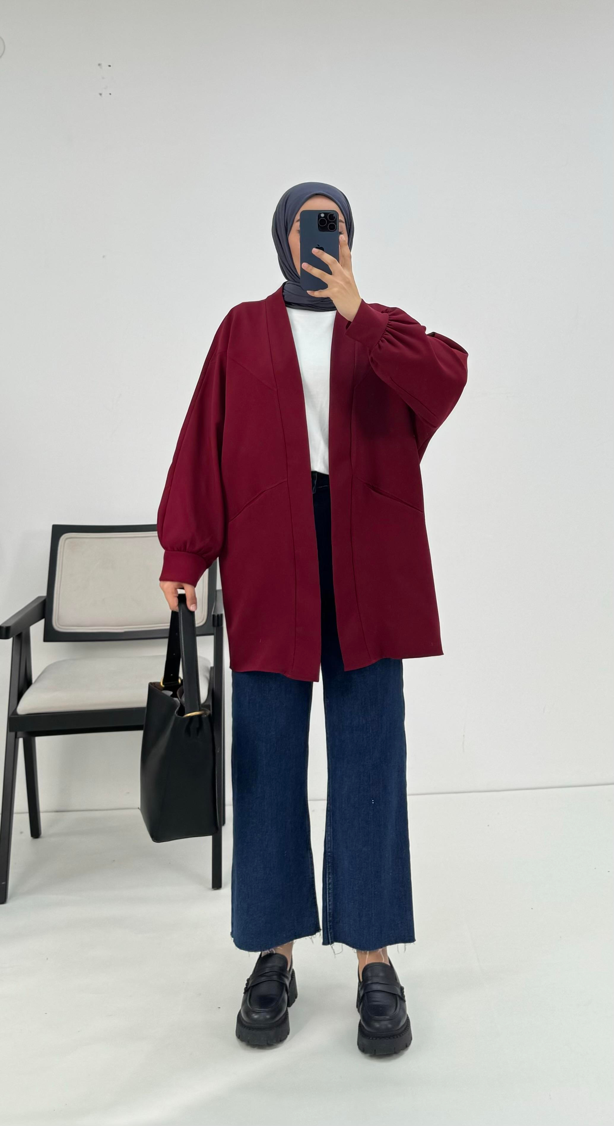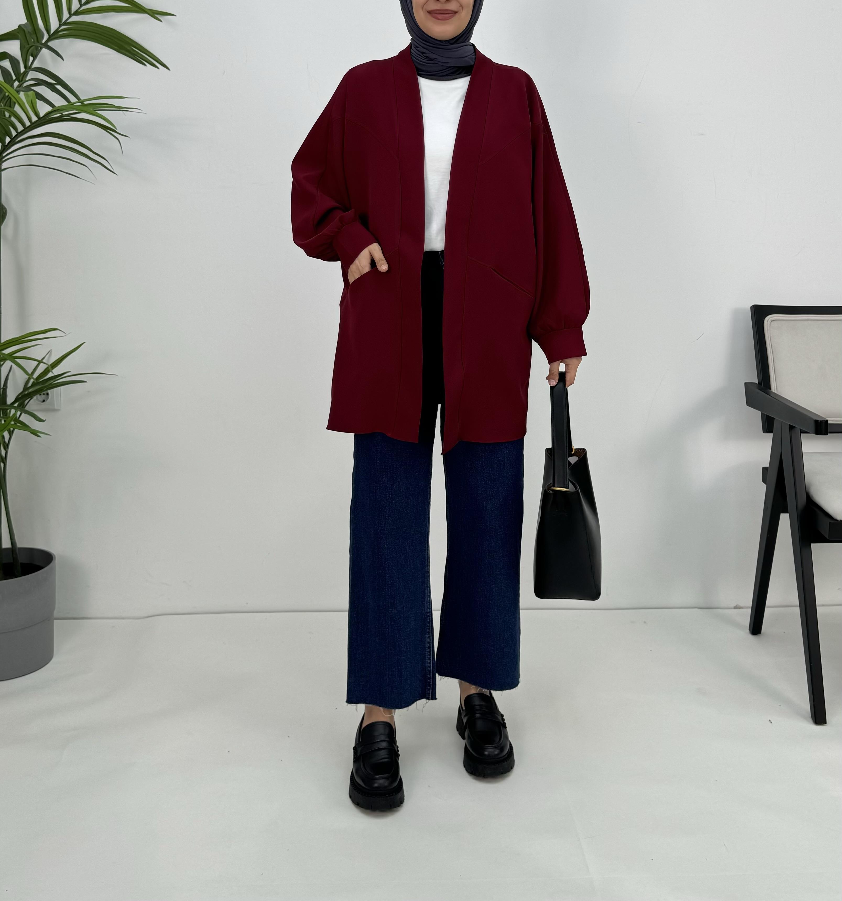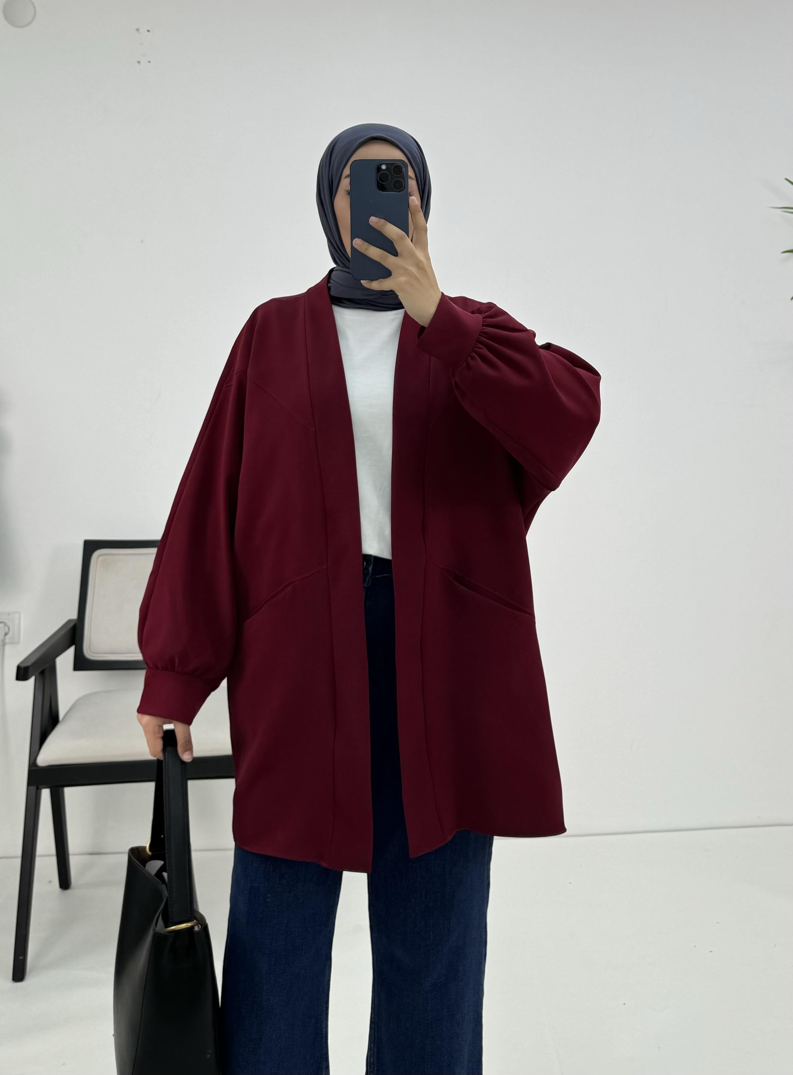 5274-dabıl krep kumaş-cep detaylı hırka-bordo (5274)
