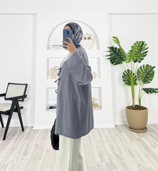 5292-çilek kumaş-önden bağlamalı kimono-gri (5292)