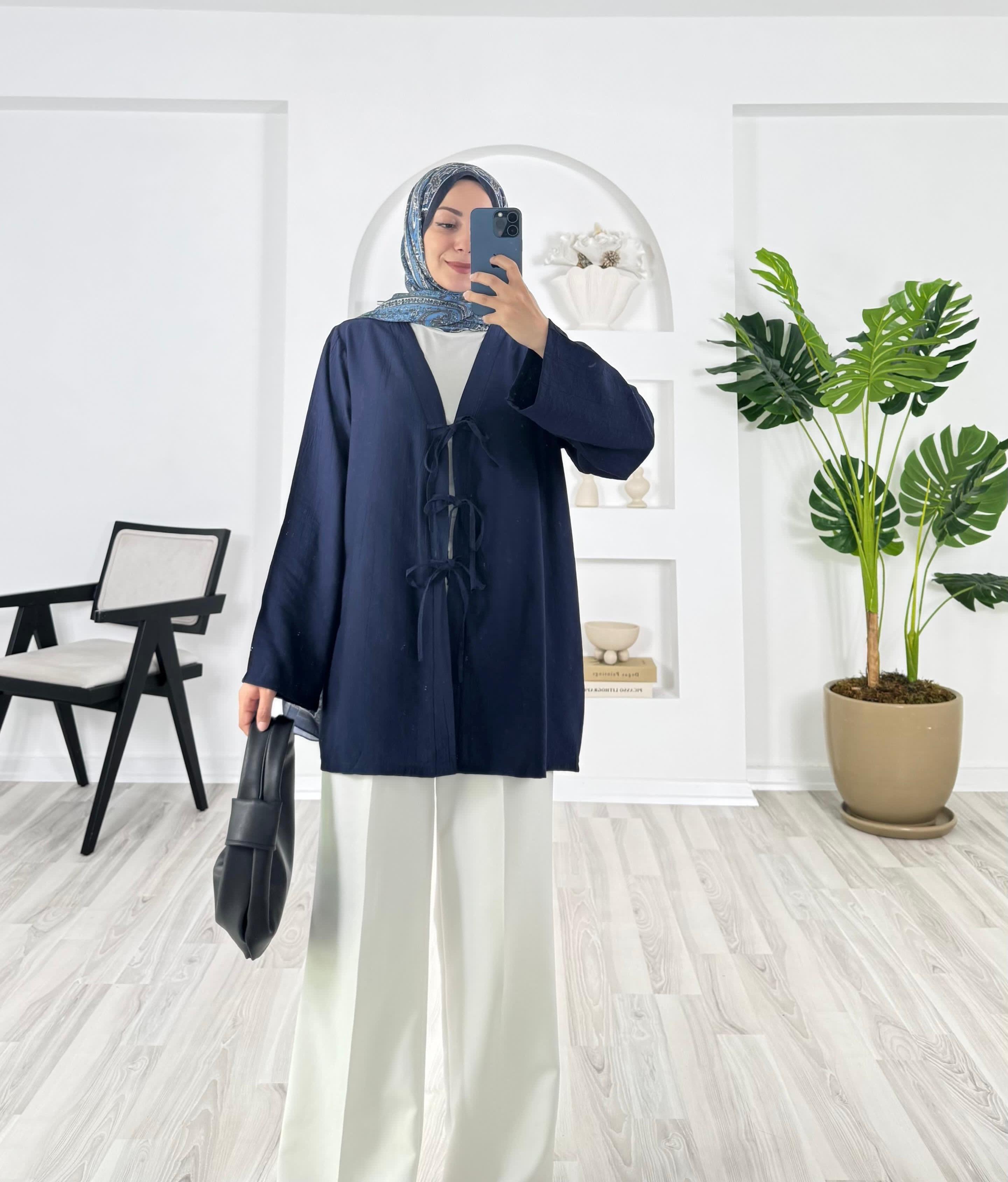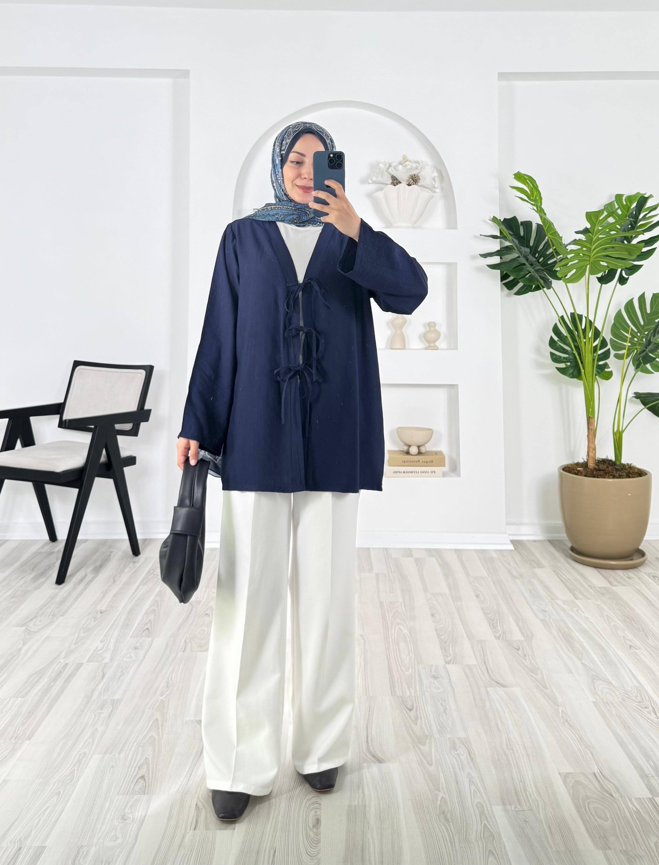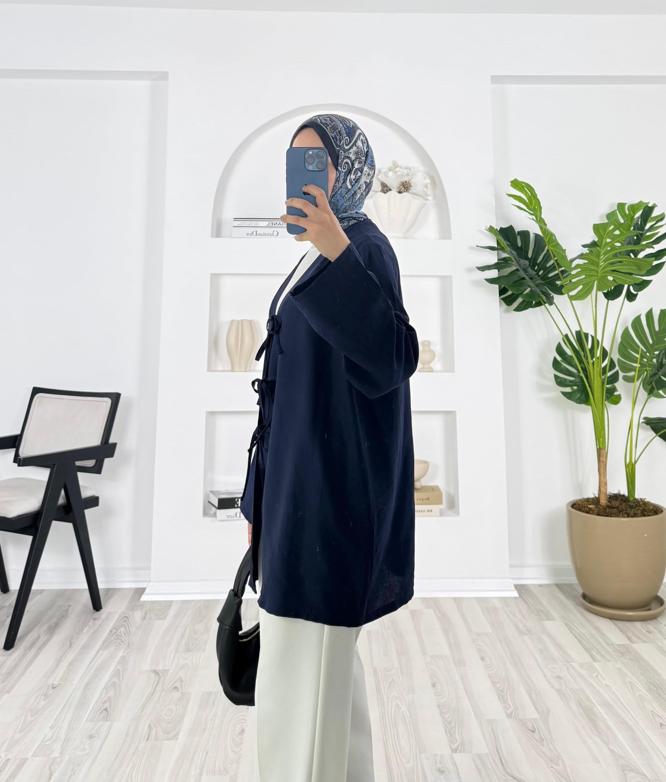 5292-çilek kumaş-önden bağlamalı kimono-lacivert (5292)