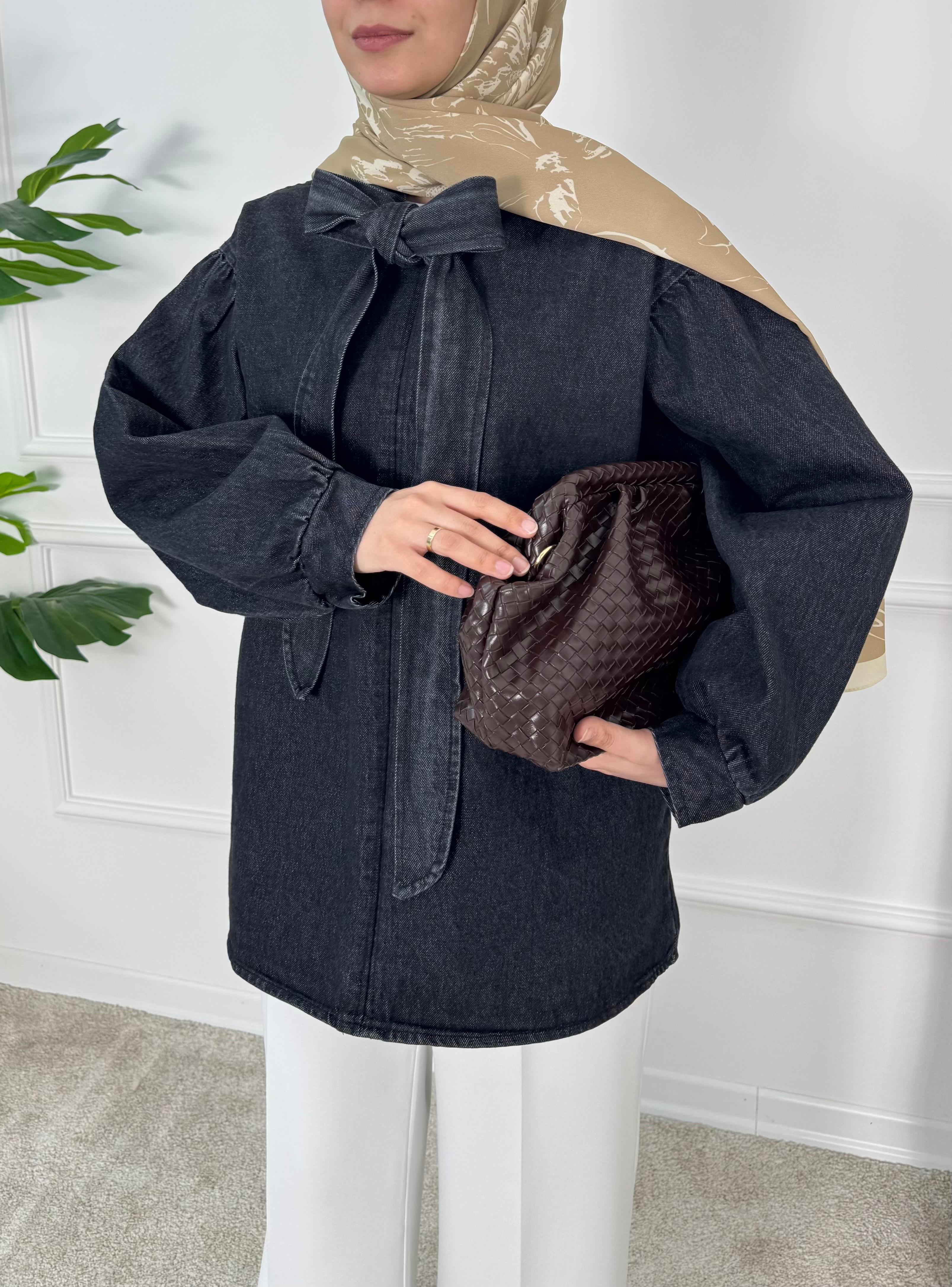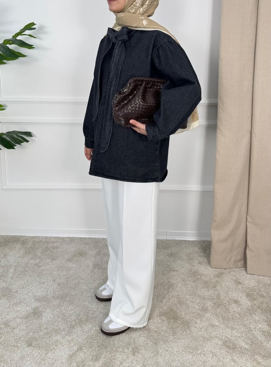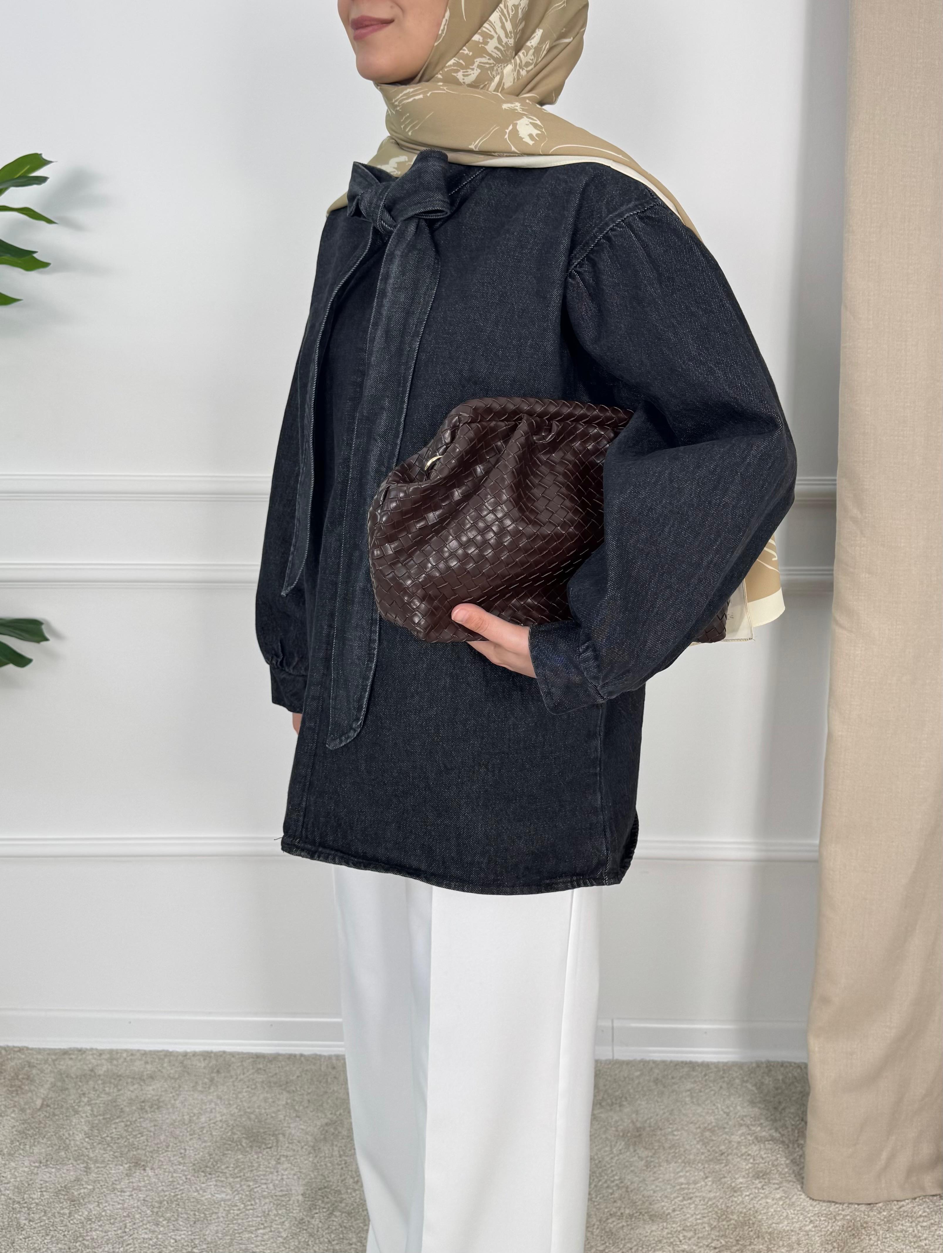 önden bağlamalı kot tunik
