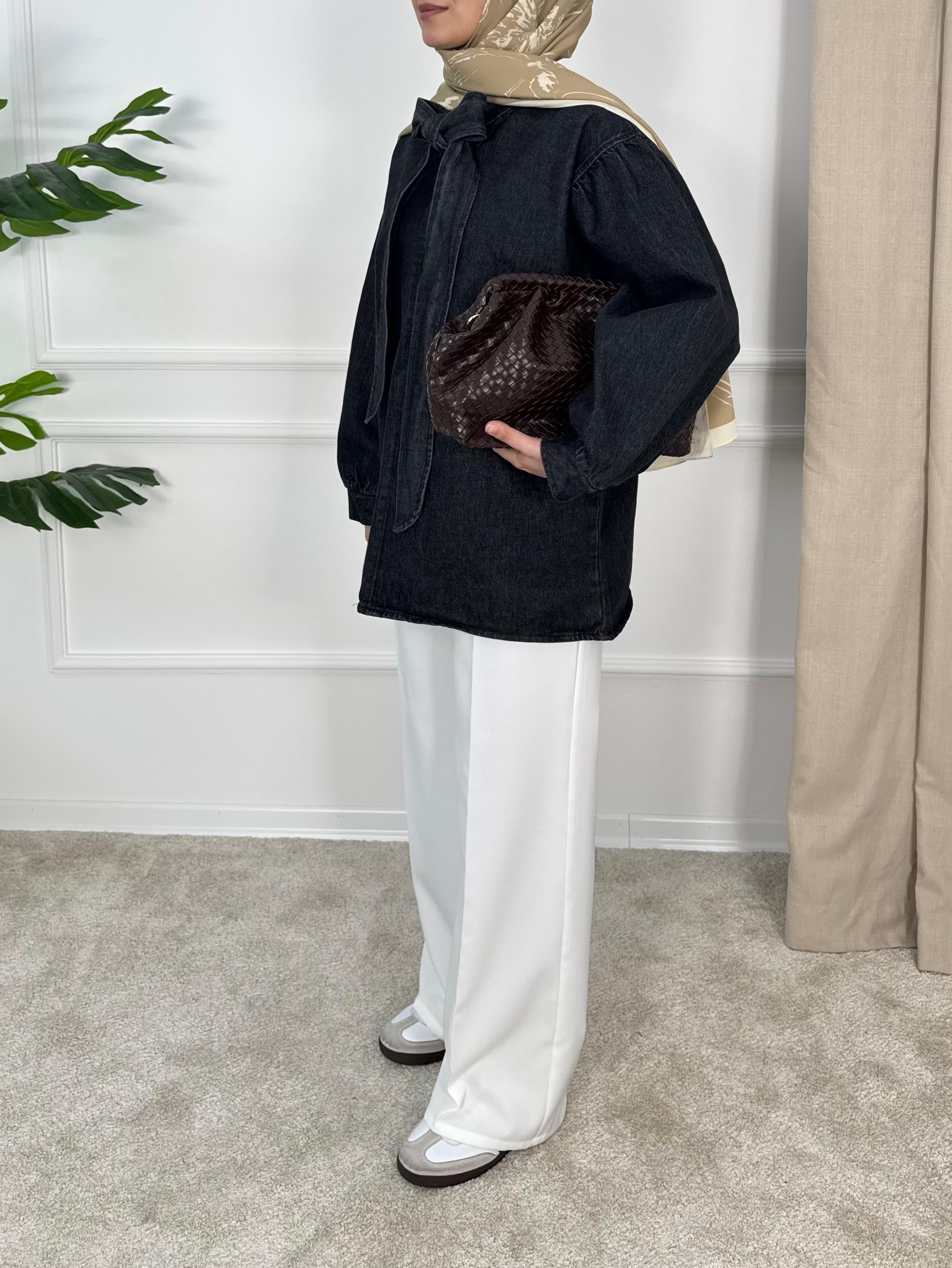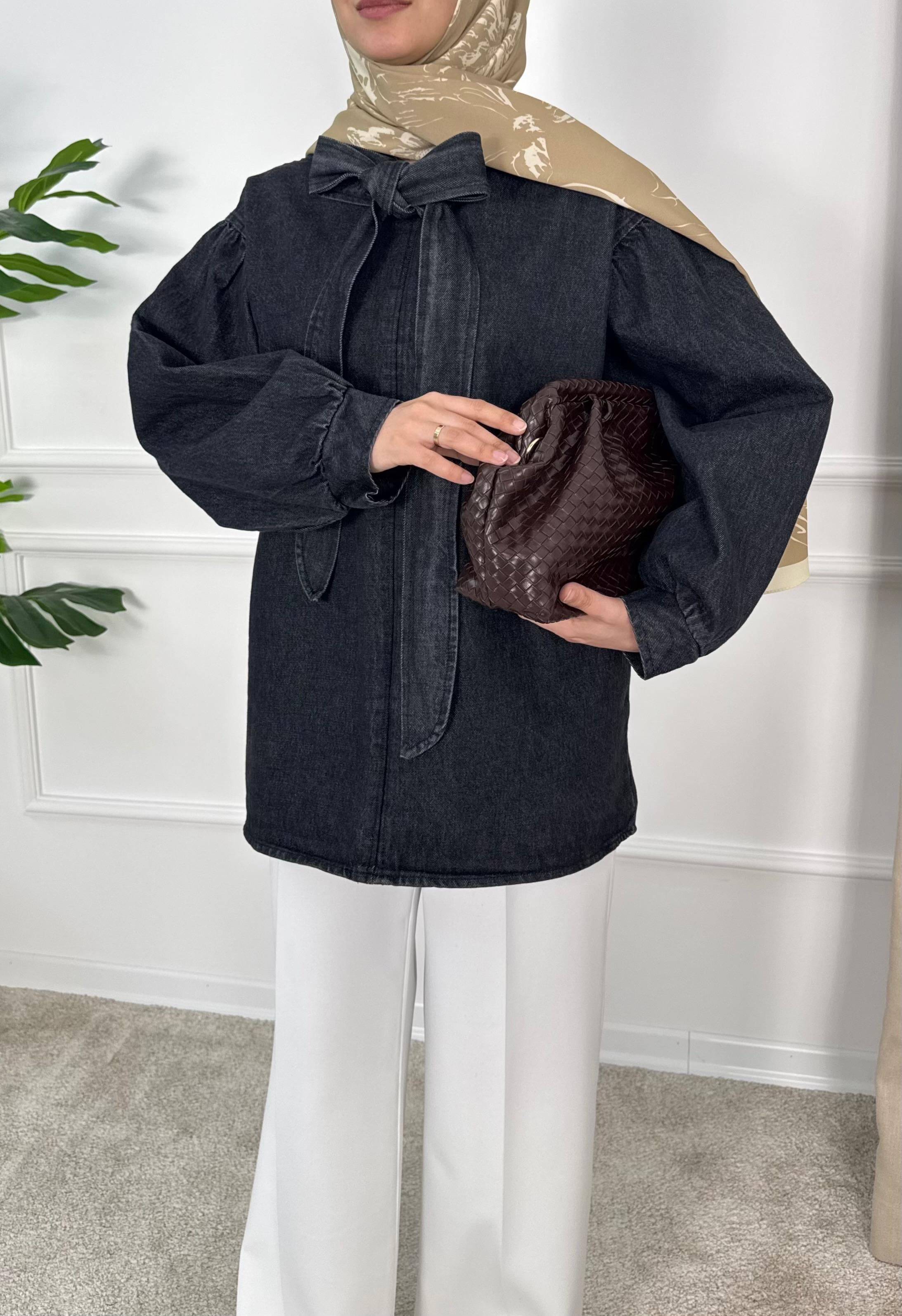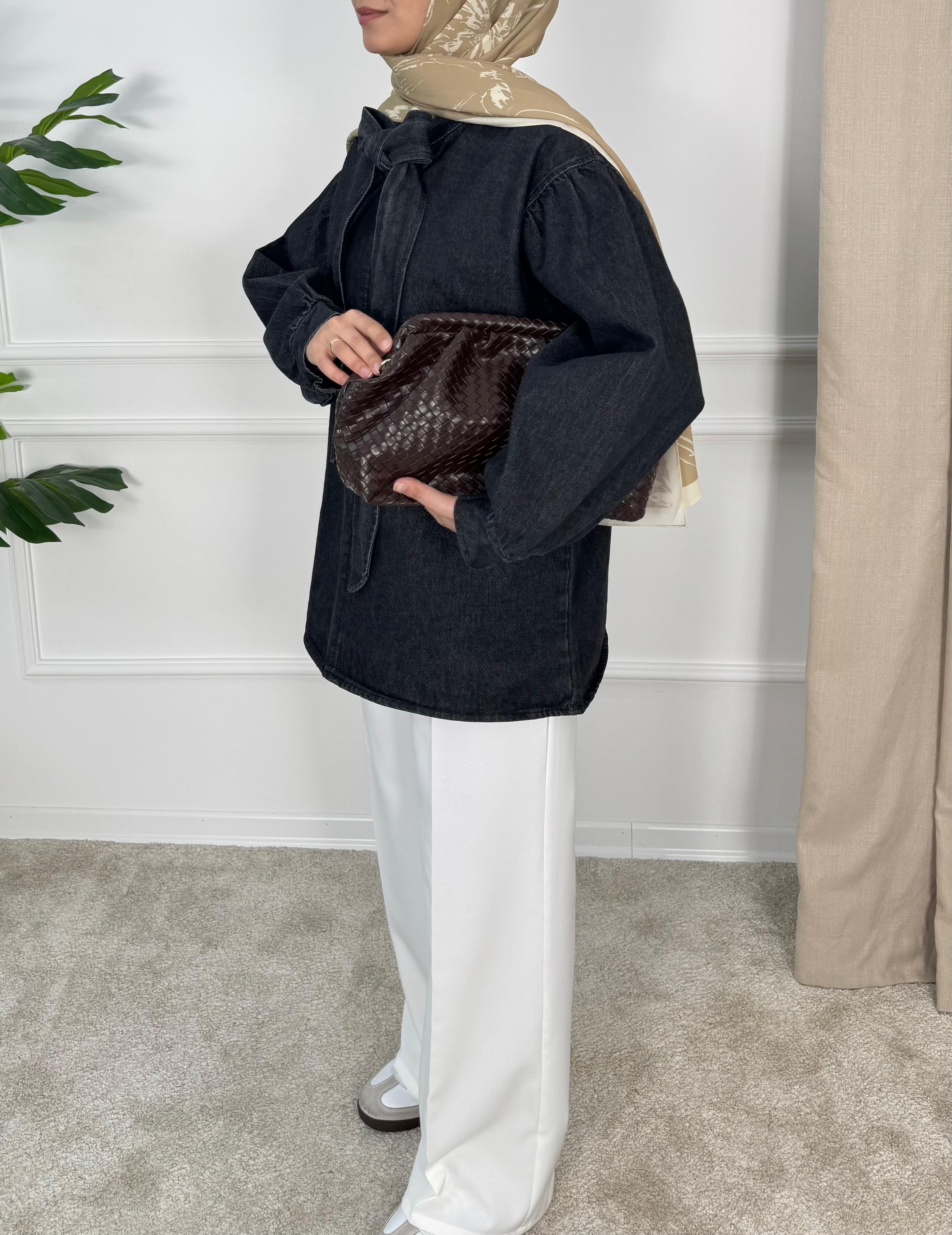 önden bağlamalı kot tunik