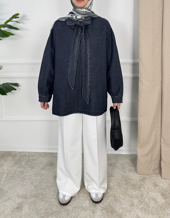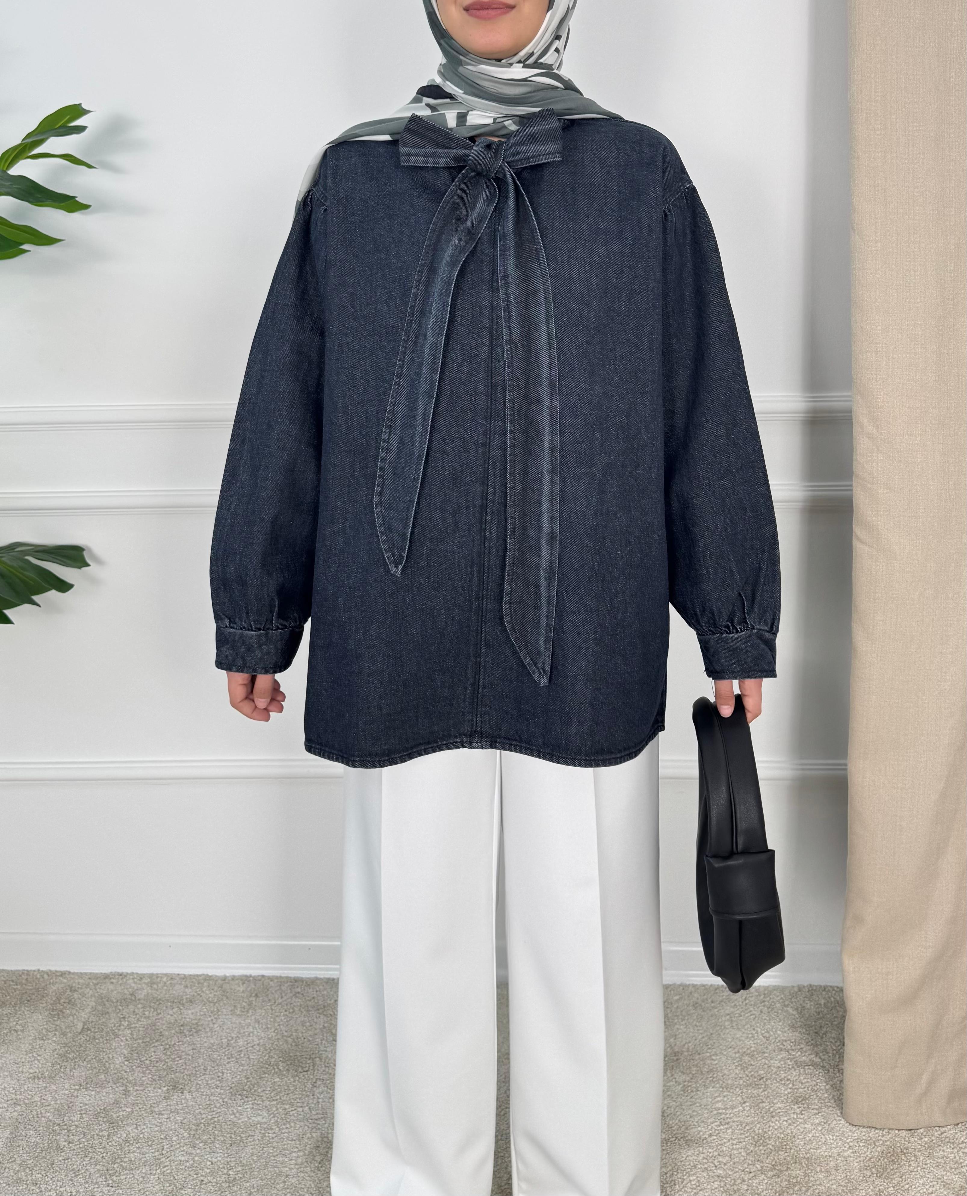 5301-önden bağlamalı kot tunik-koyu lacivert (5301)