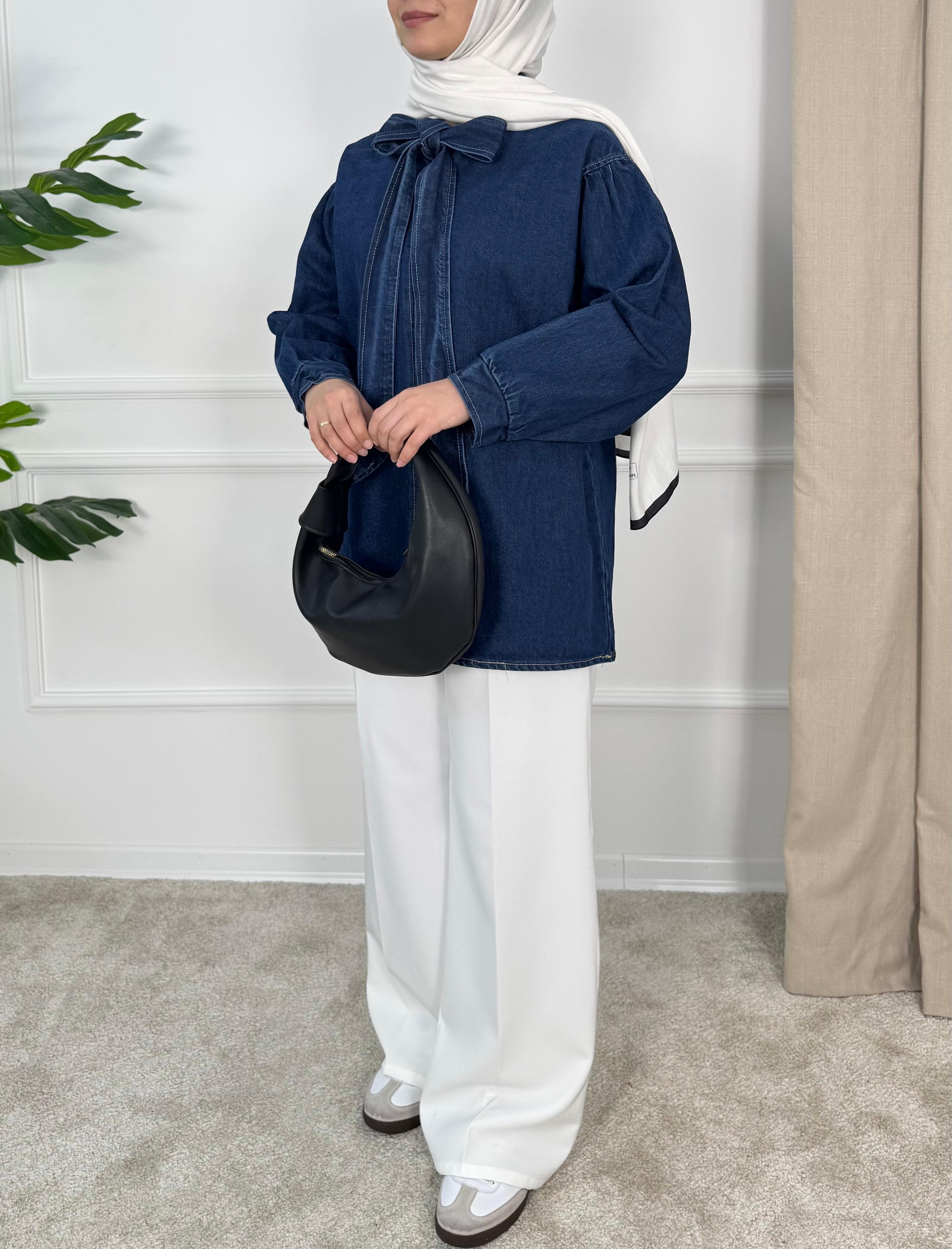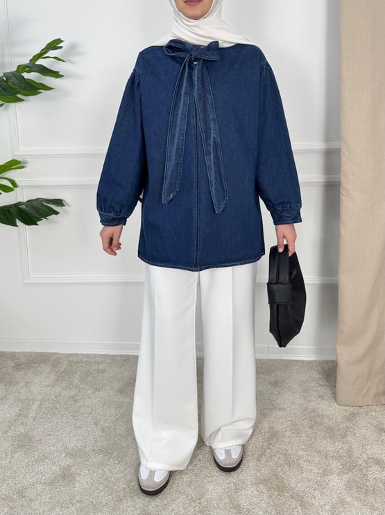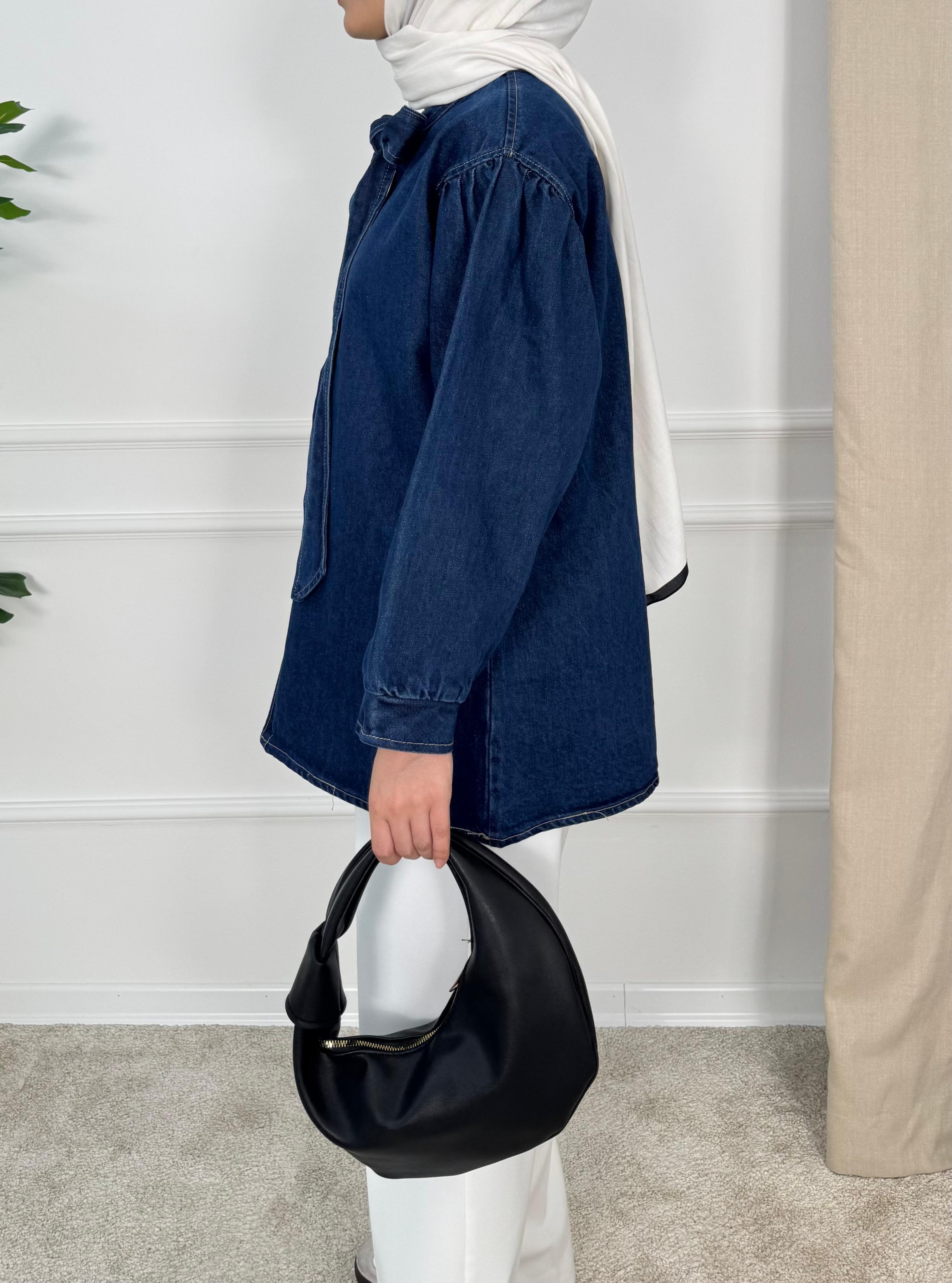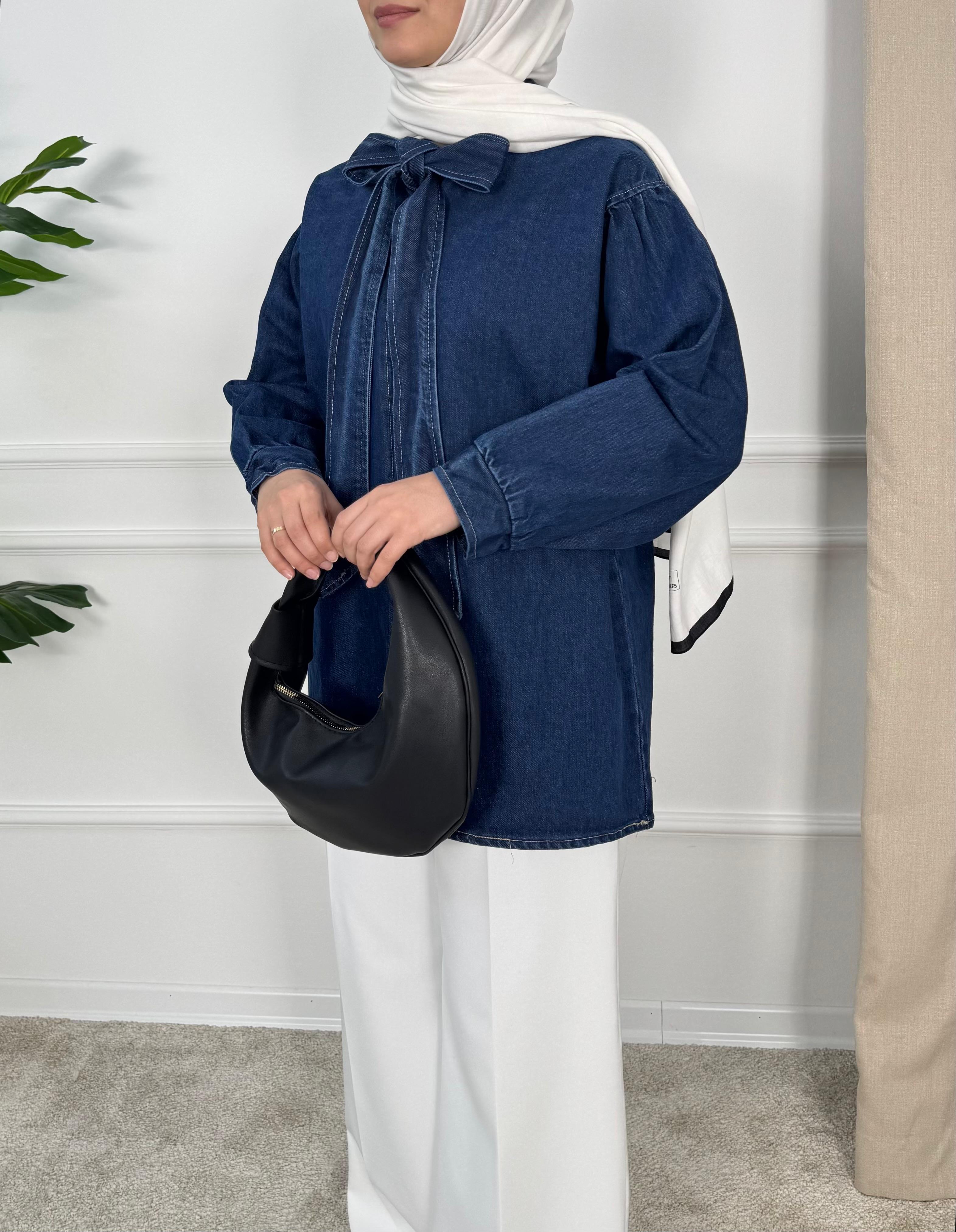 önden bağlamalı kot tunik