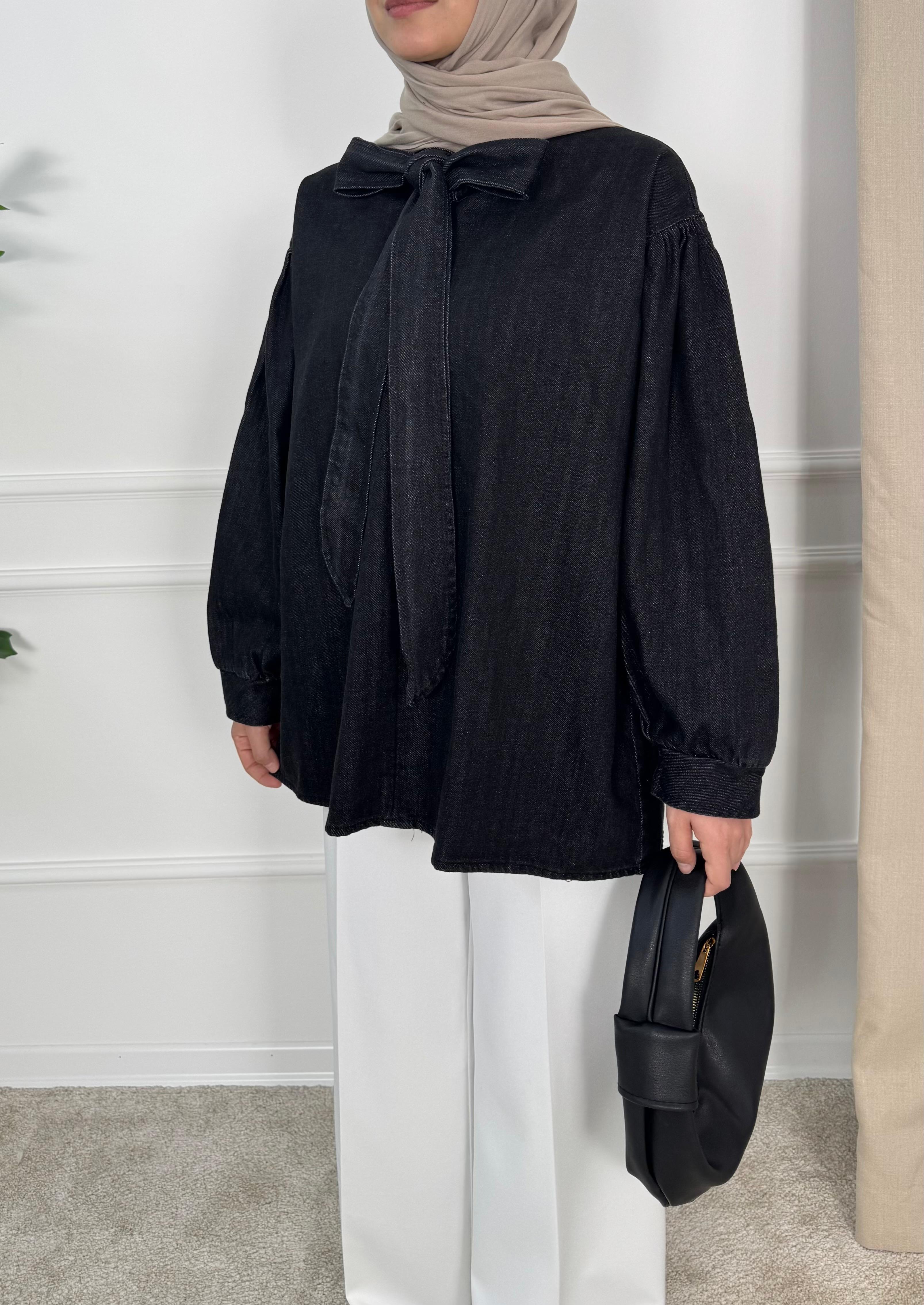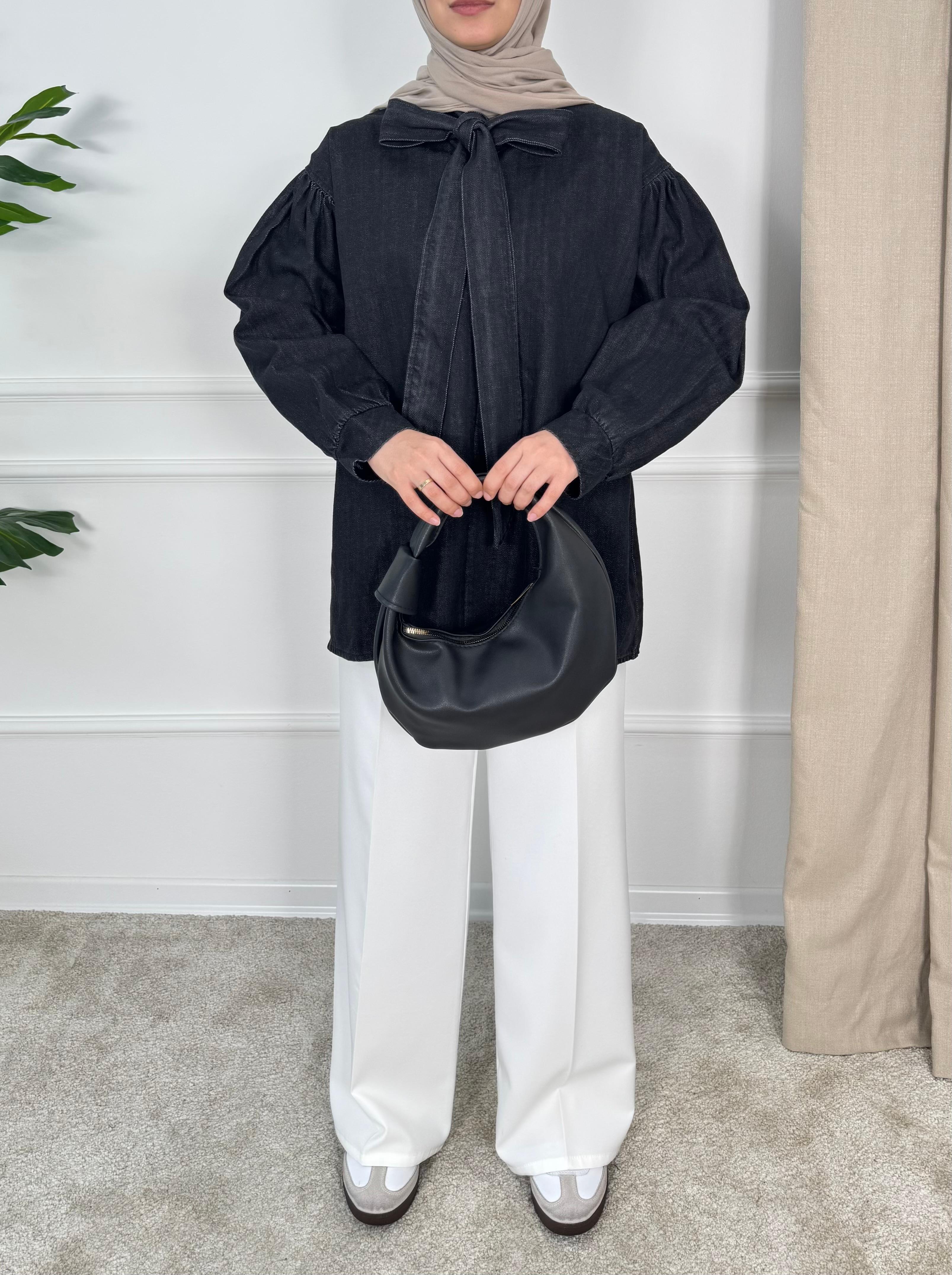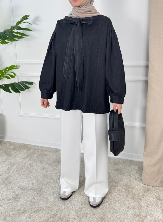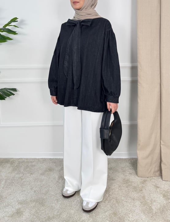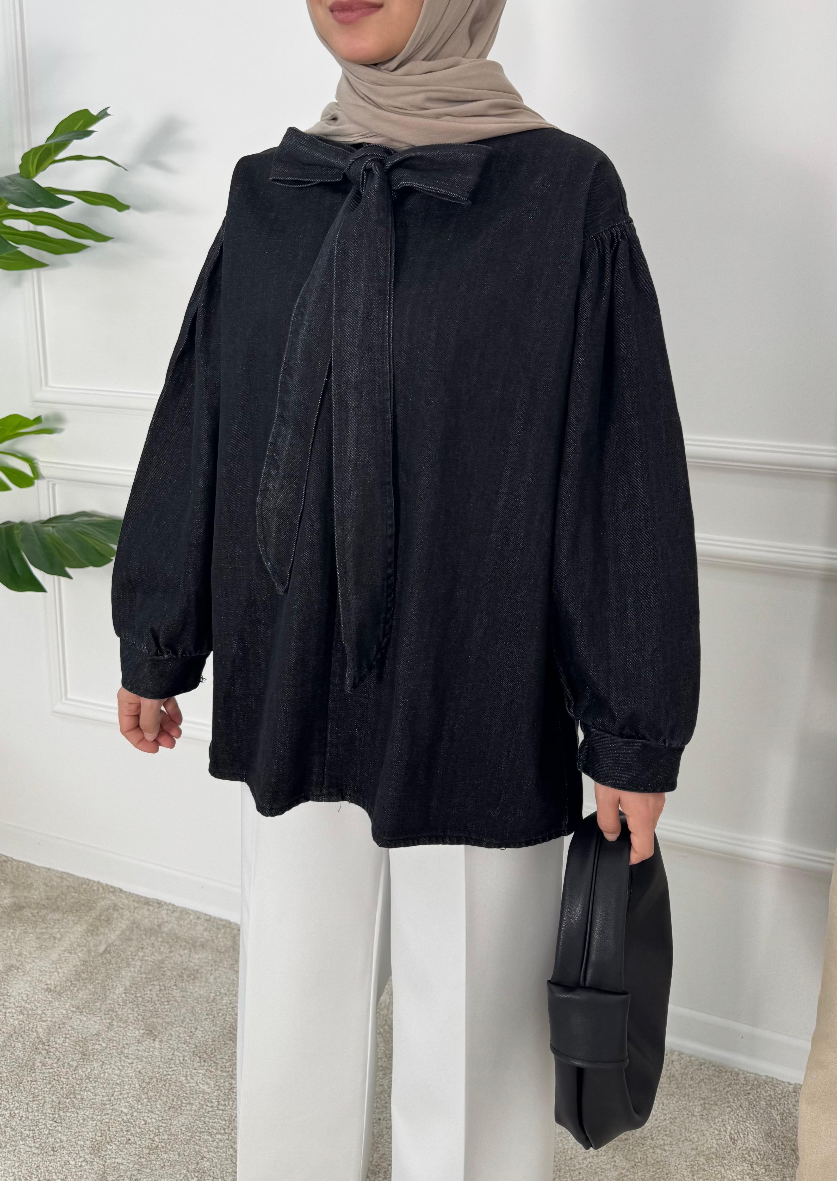 önden bağlamalı kot tunik