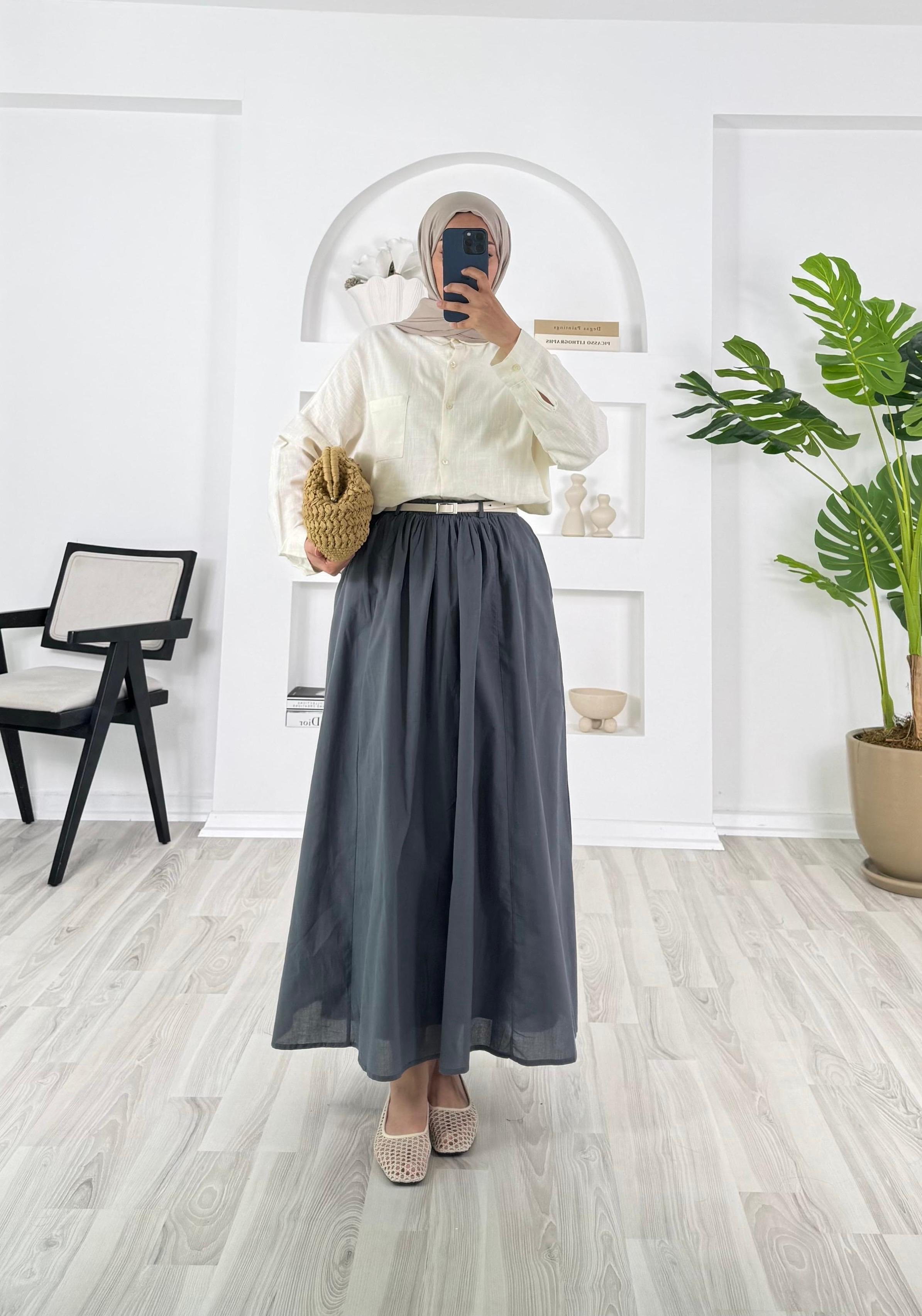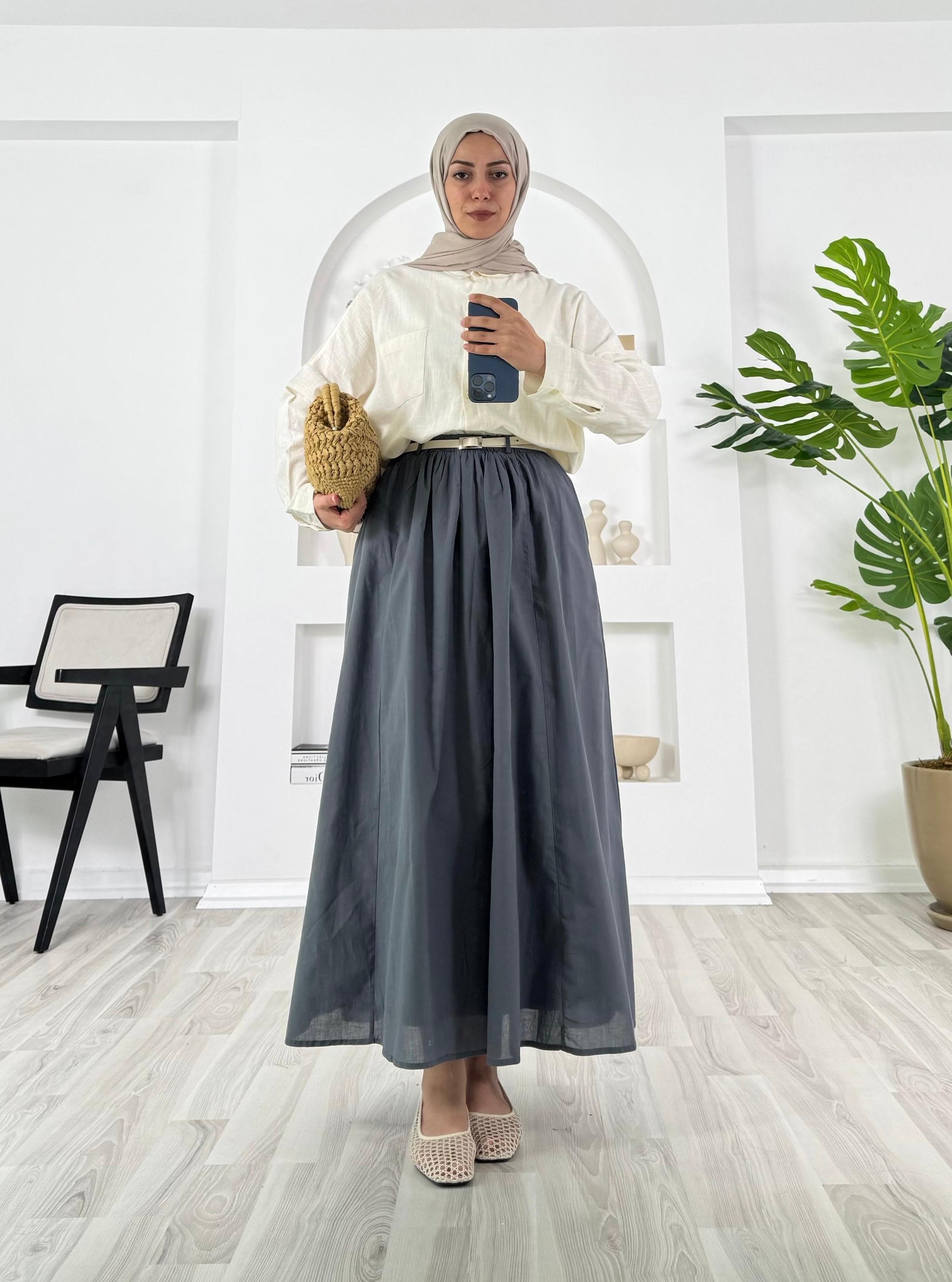 5307-astarlı vural kumaş-kemer detaylı cepli etek-füme (5307)