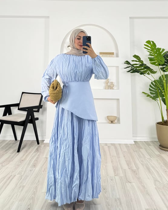5319 - kırışık poplin kumaş kraşlı zara elbise - bebe mavisi (5319)