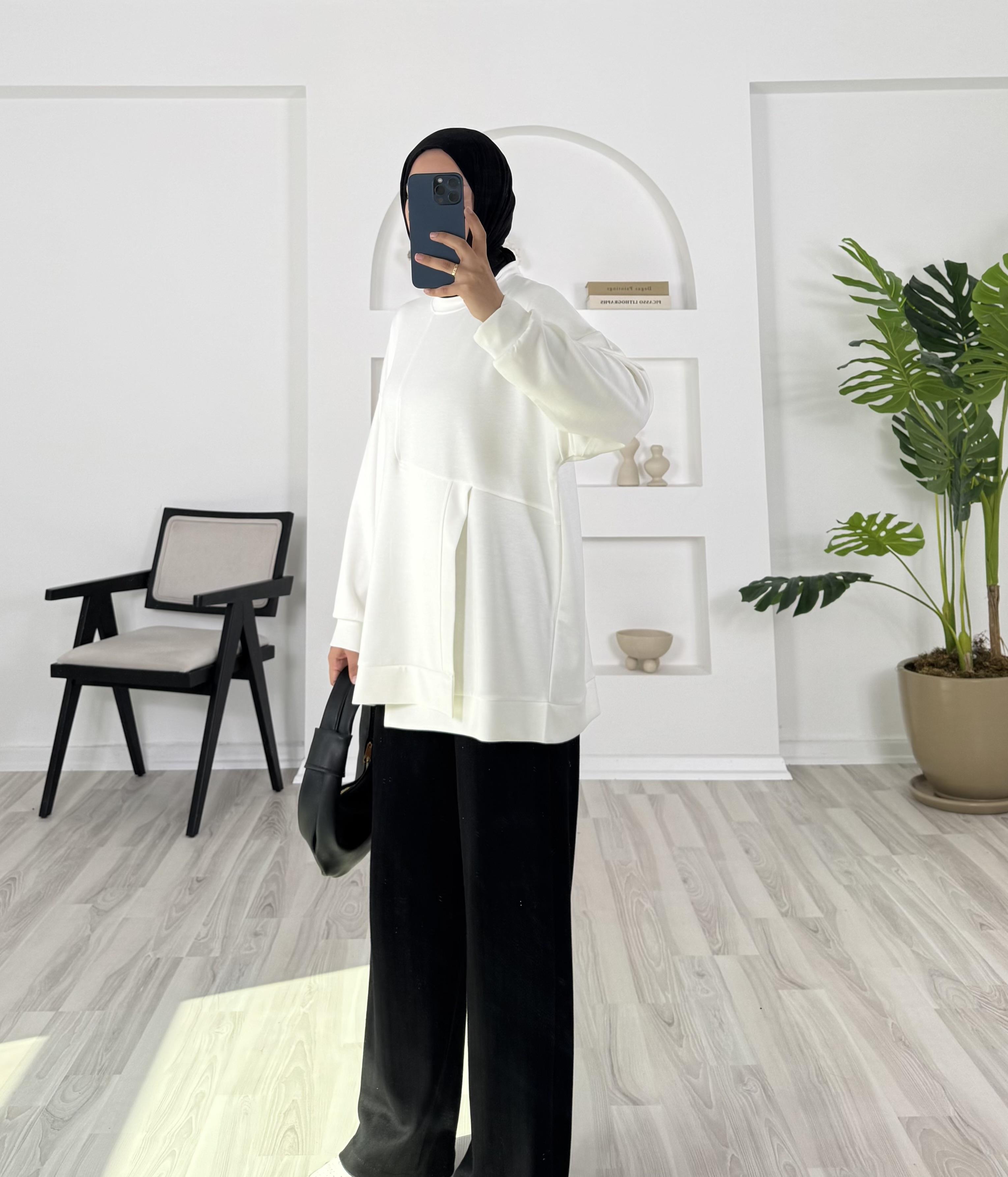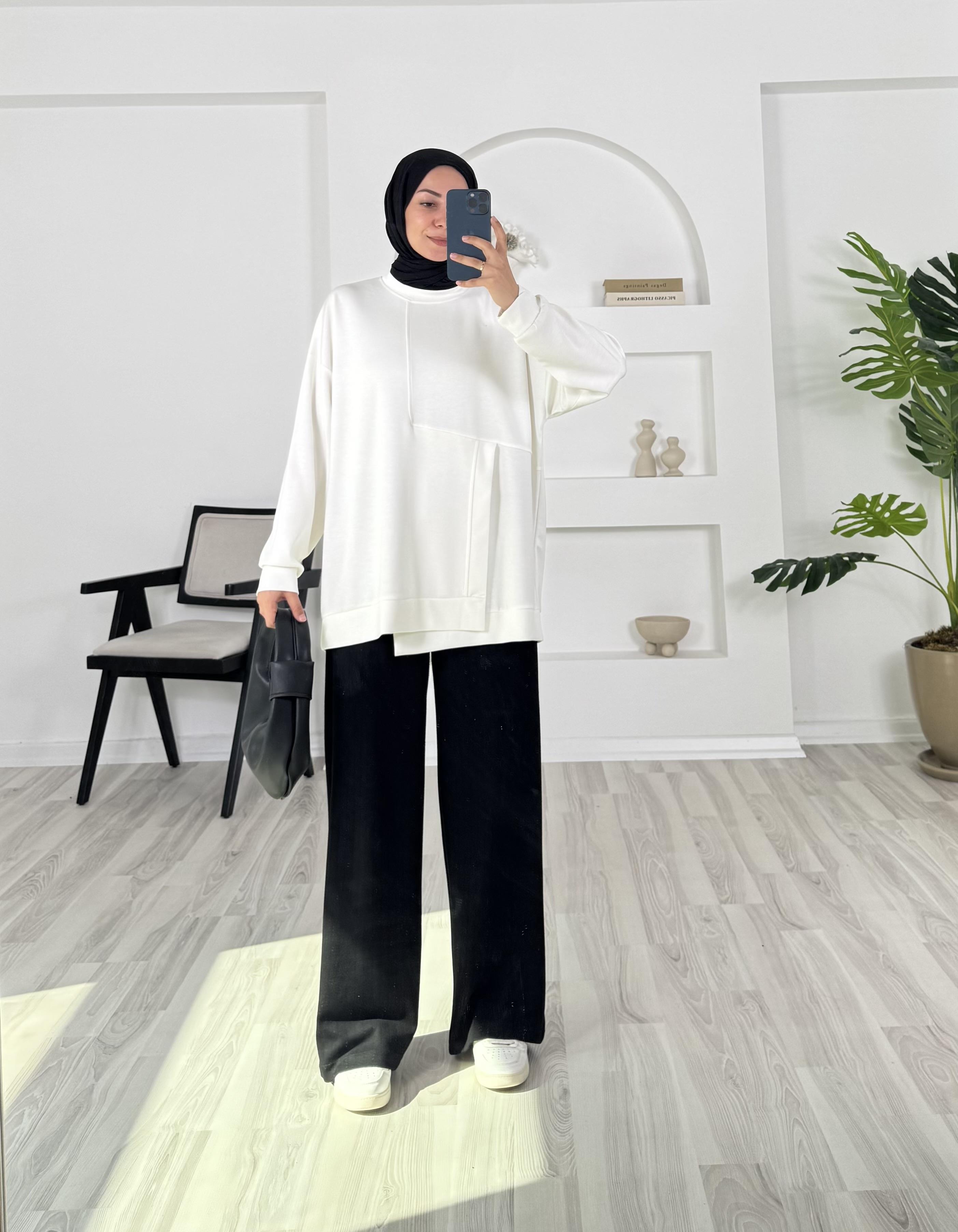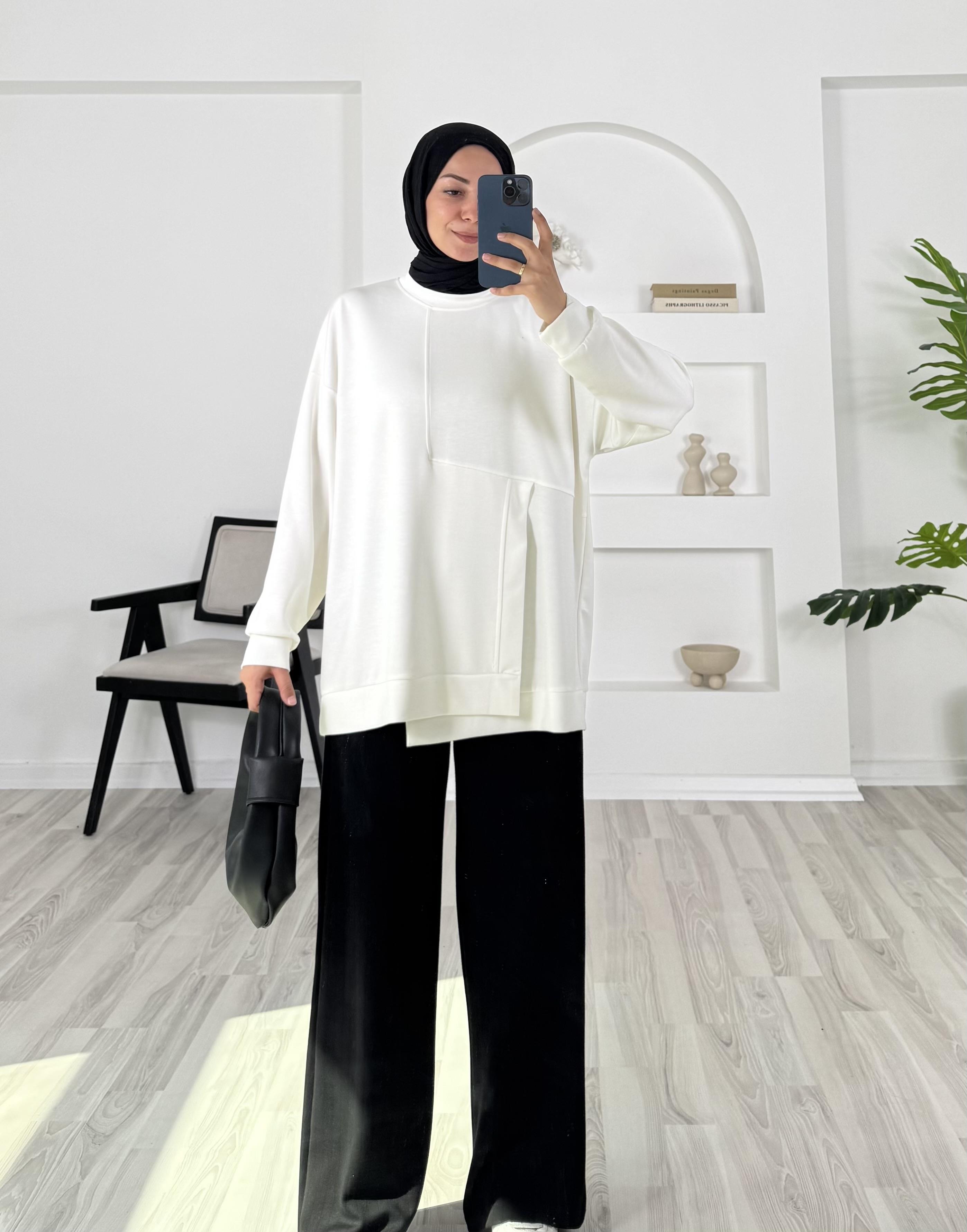 5394 - oysho kumaş paçalı tunik - beyaz (5394)