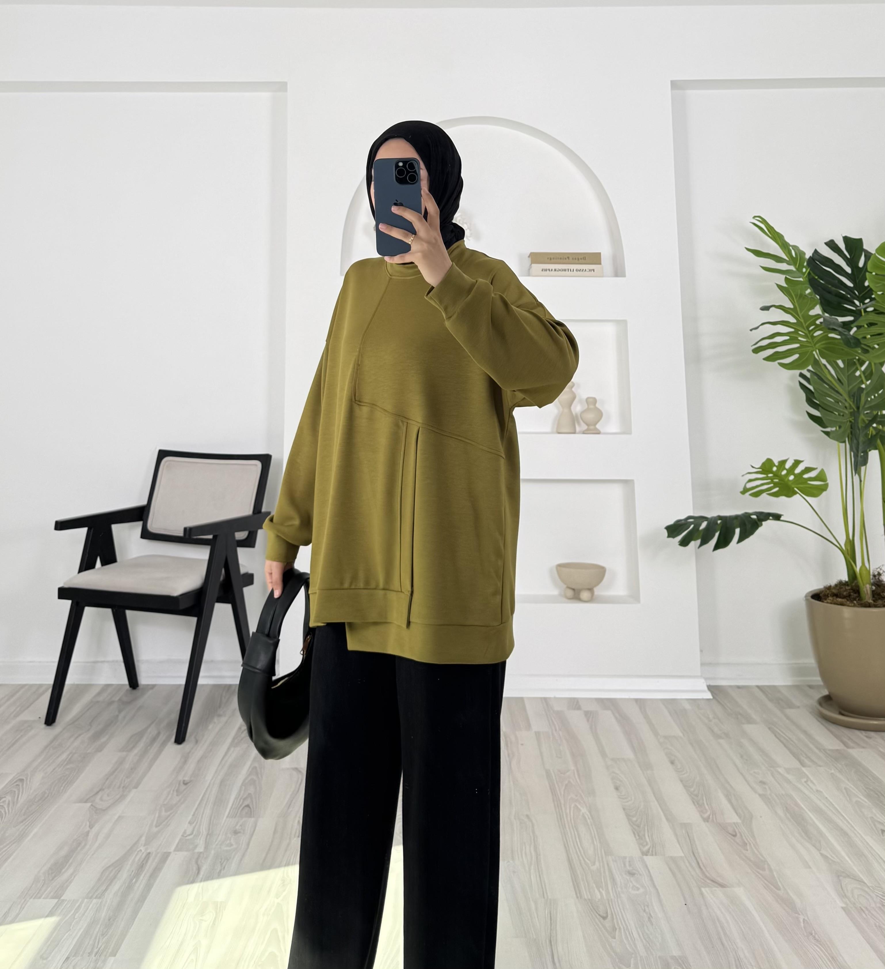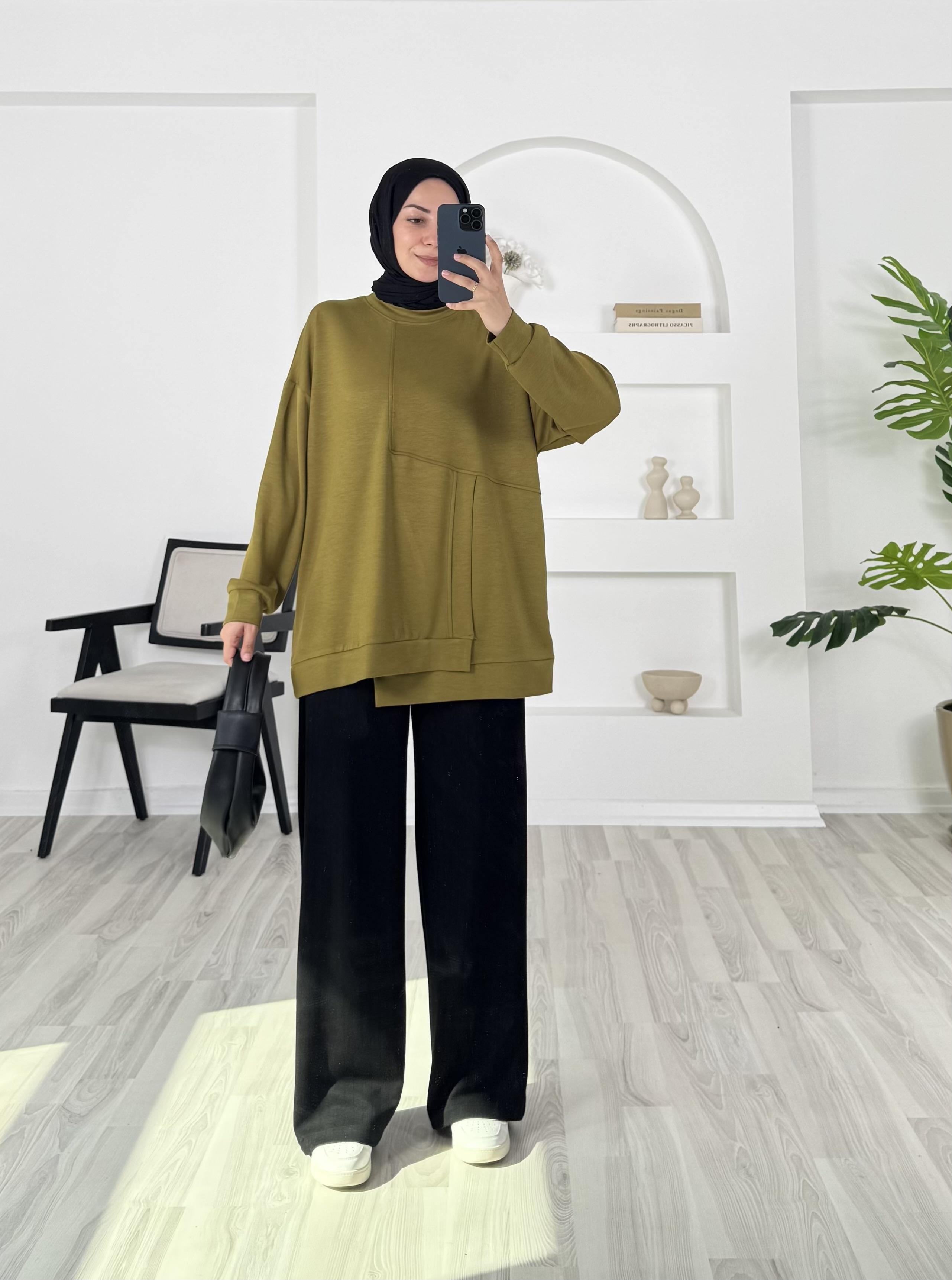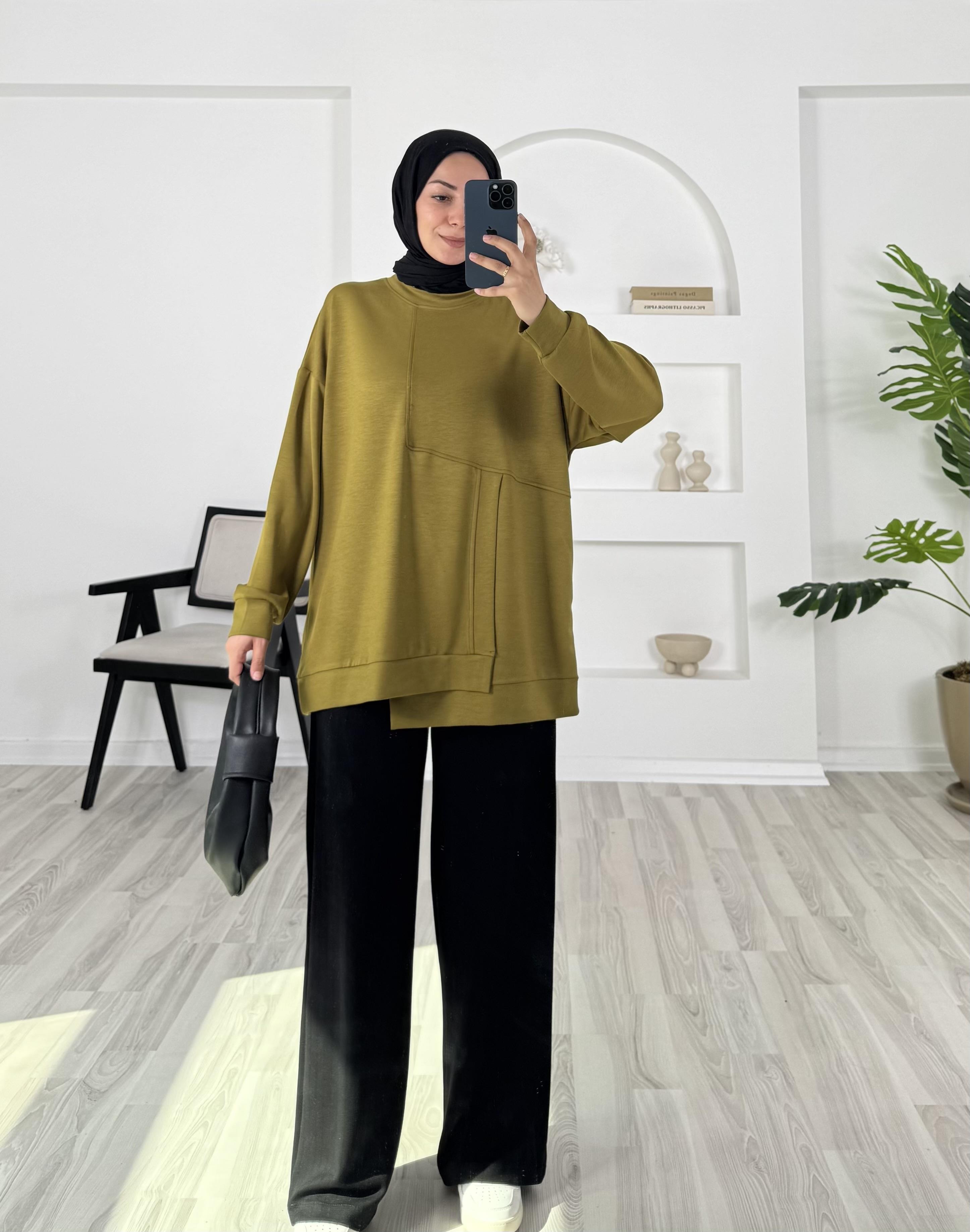 5394 - oysho kumaş paçalı tunik - yag yeşili (5394)