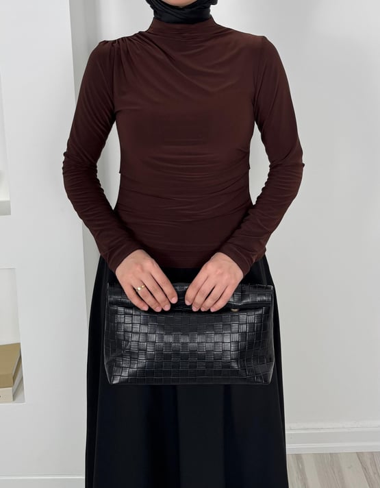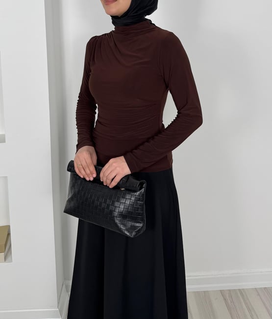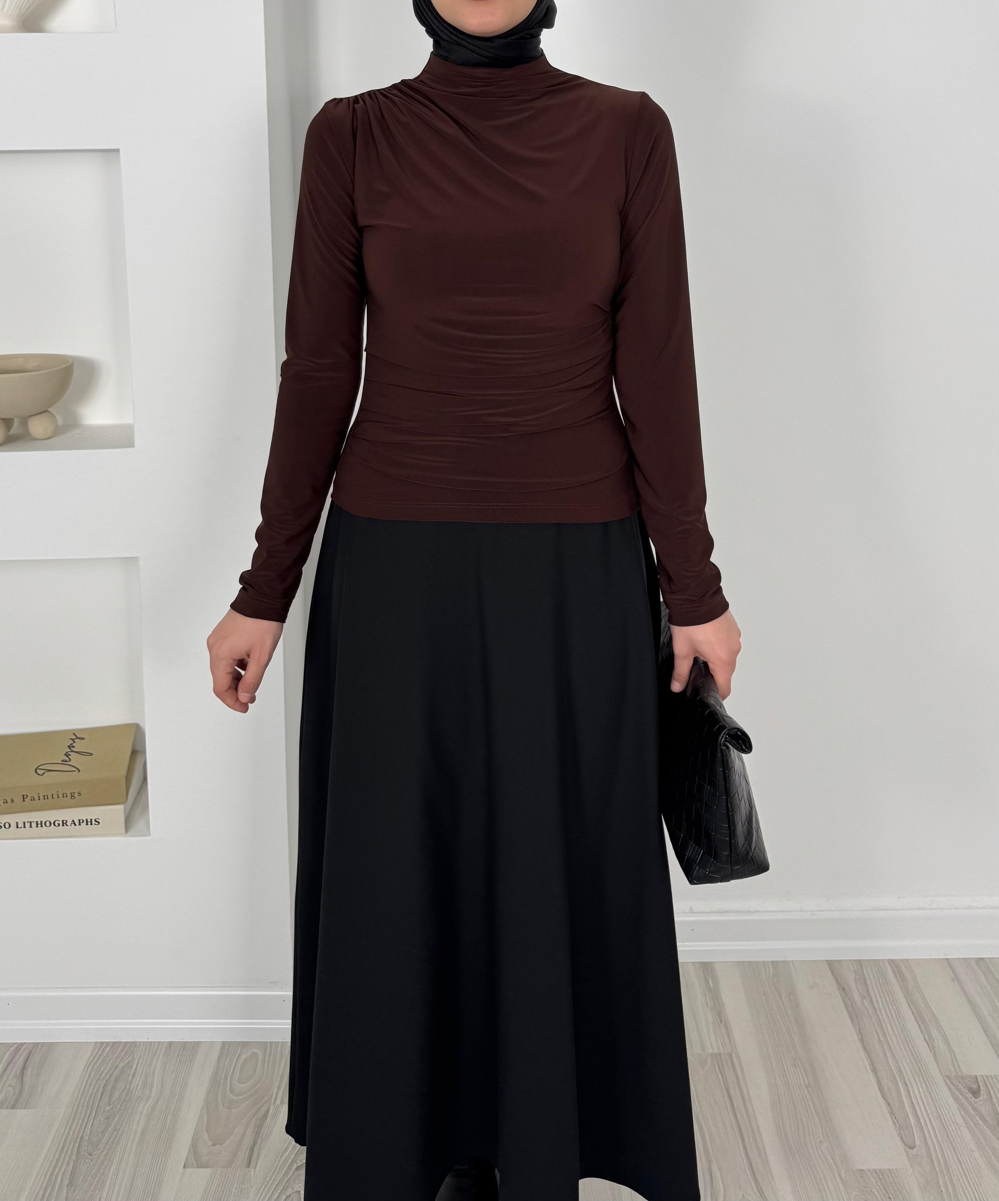 5612-sandy kumaş- alt kısmı büzgü detaylı bluz-acı kahve (5612)