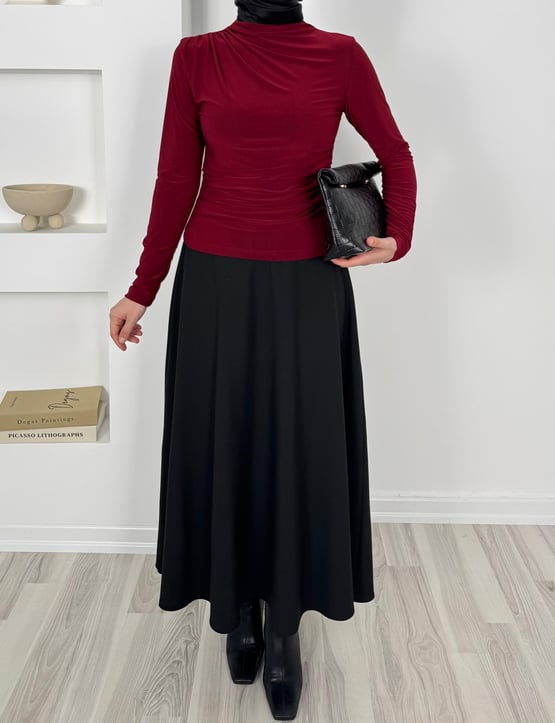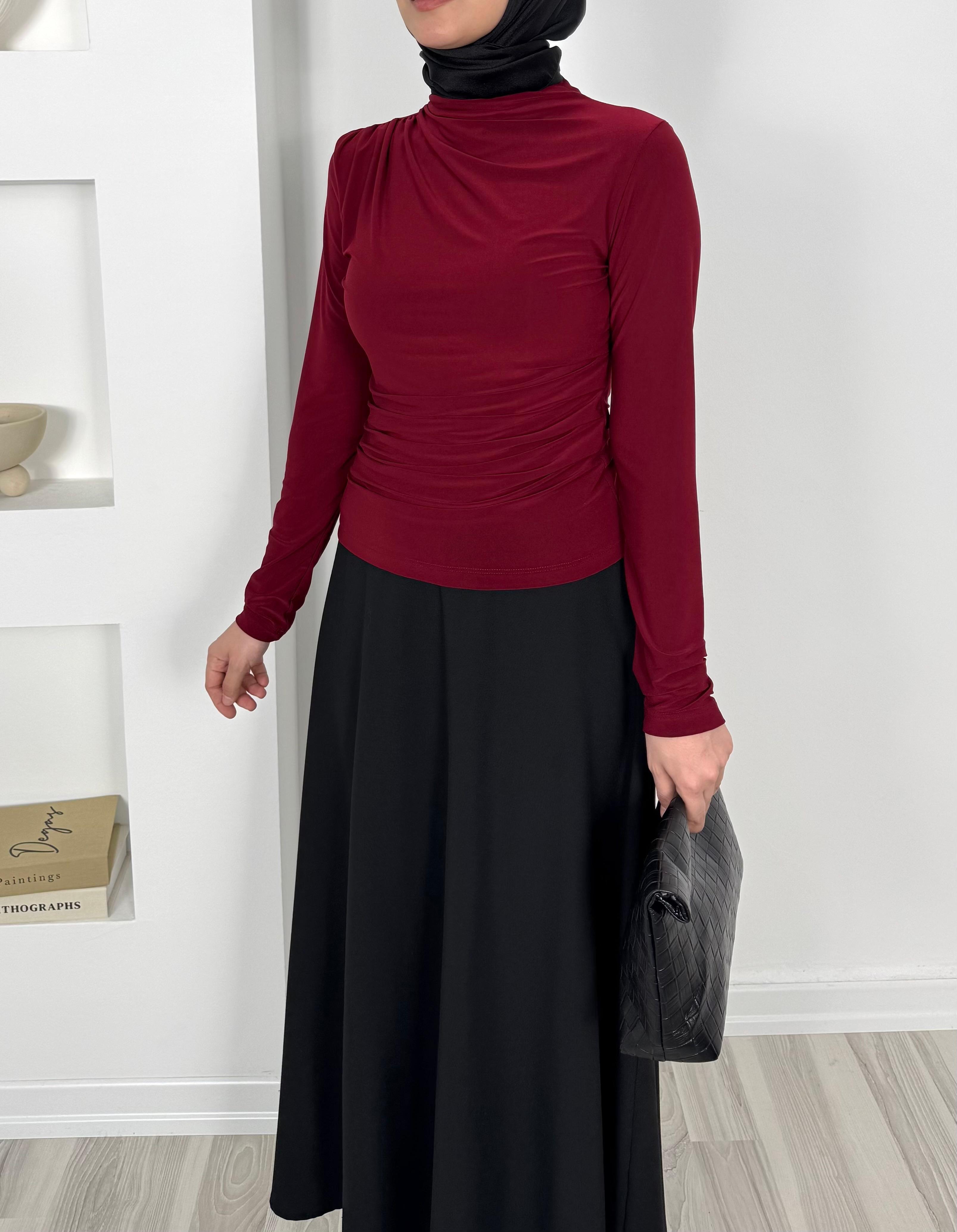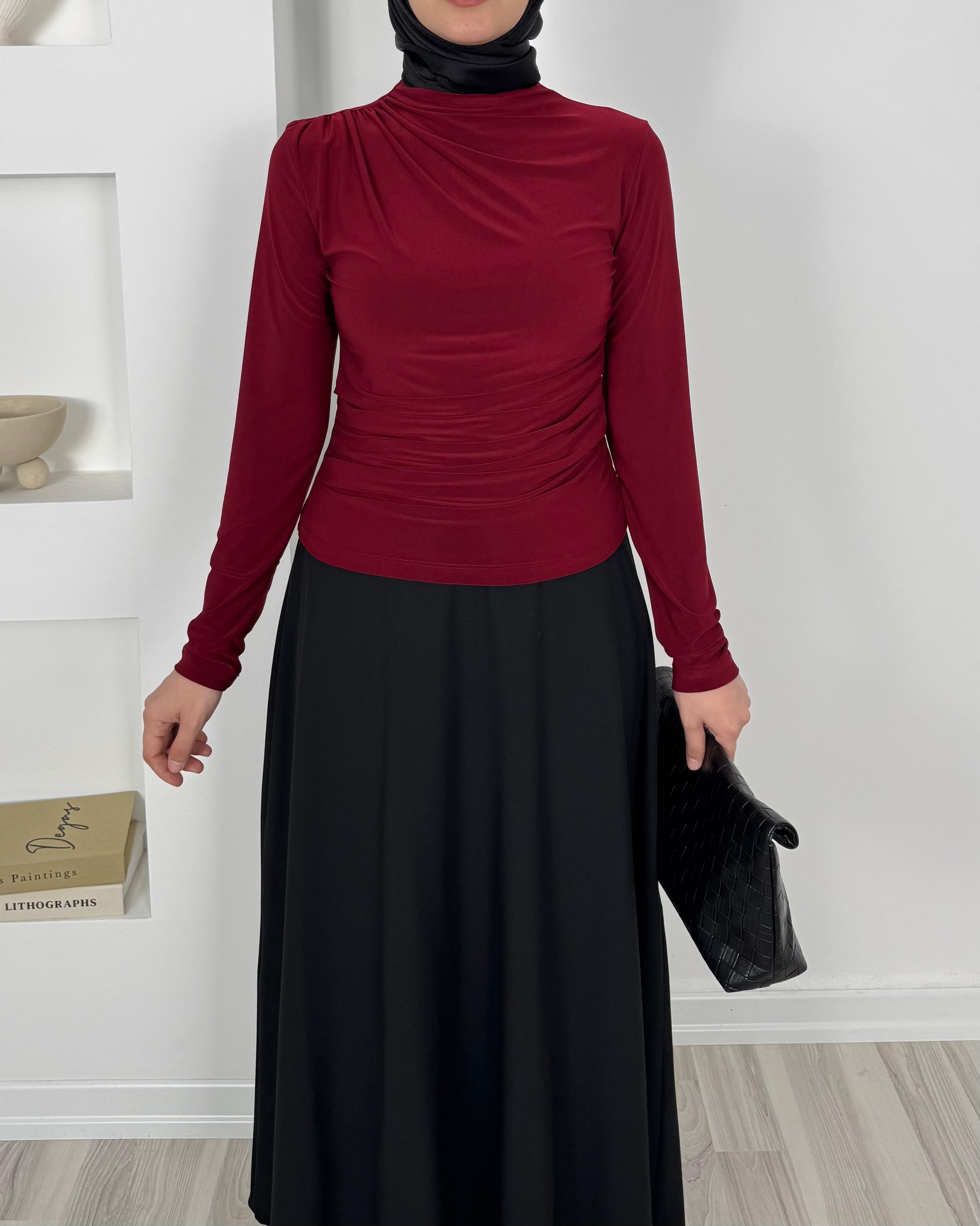 5612-sandy kumaş- alt kısmı büzgü detaylı bluz-bordo (5612)
