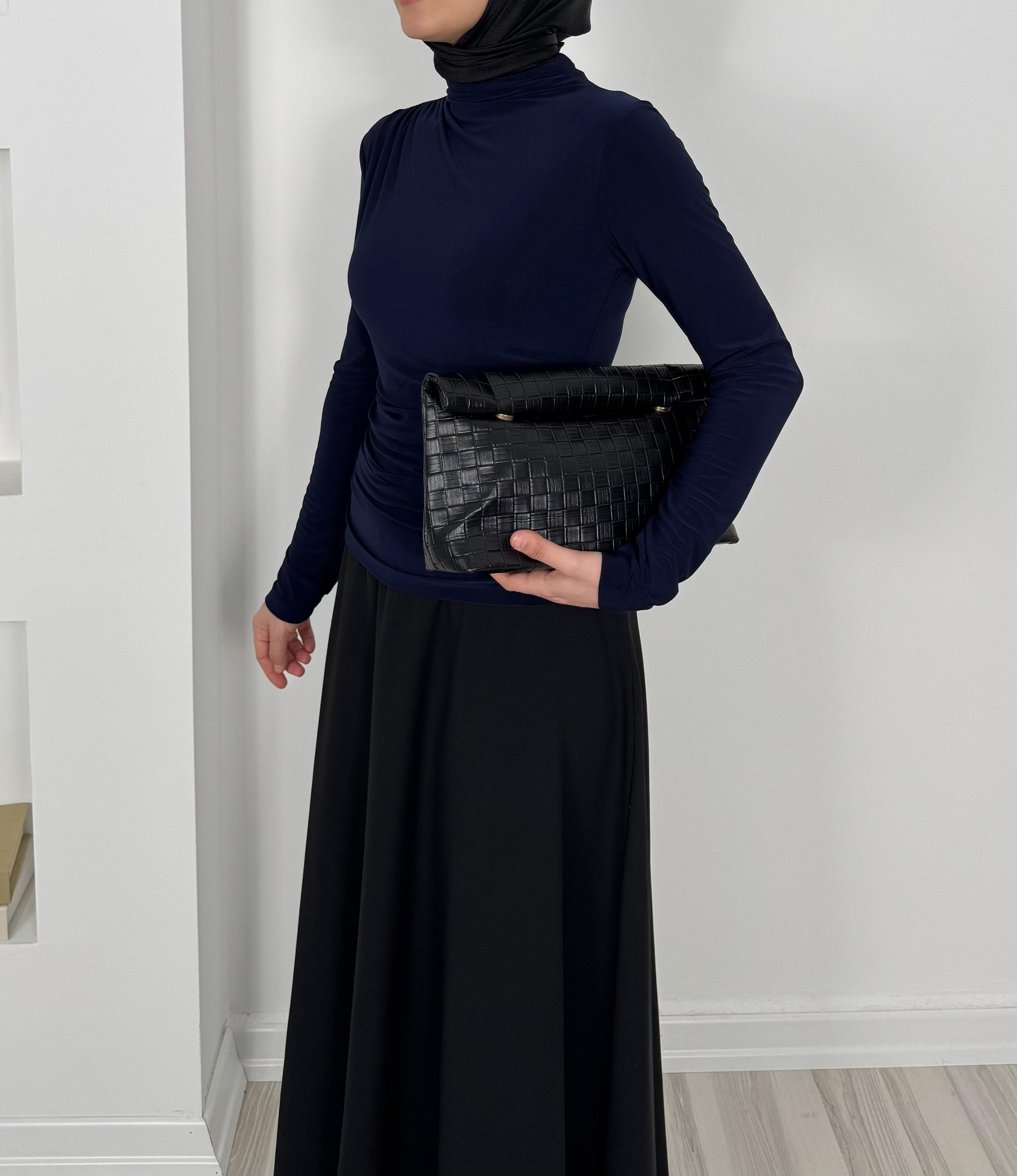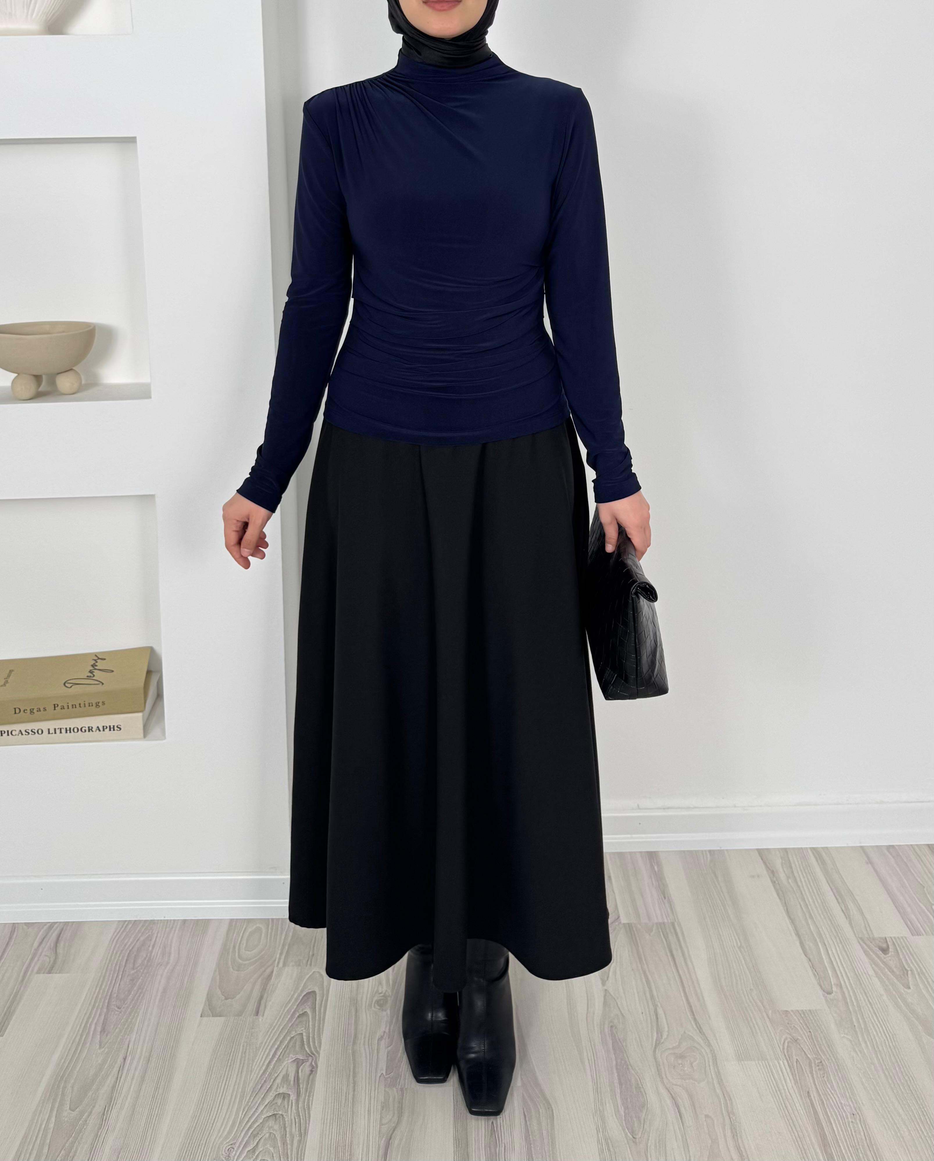 5612-sandy kumaş- alt kısmı büzgü detaylı bluz-lacivert (5612)