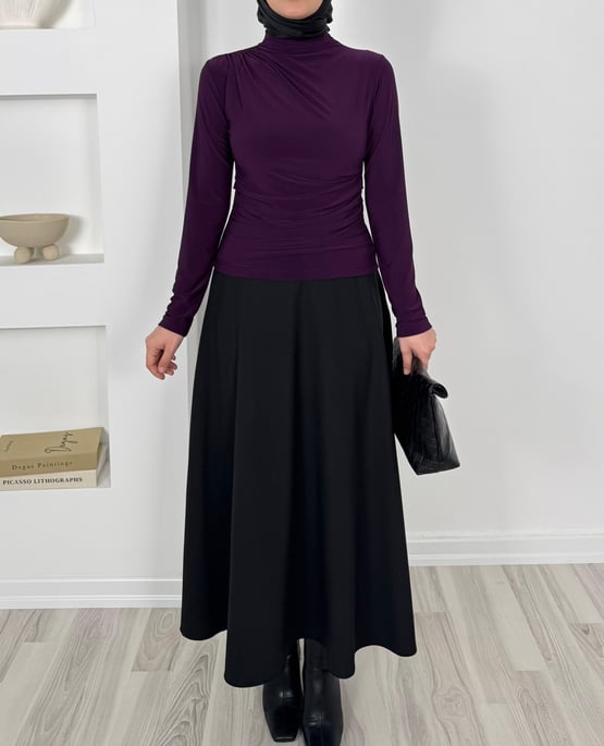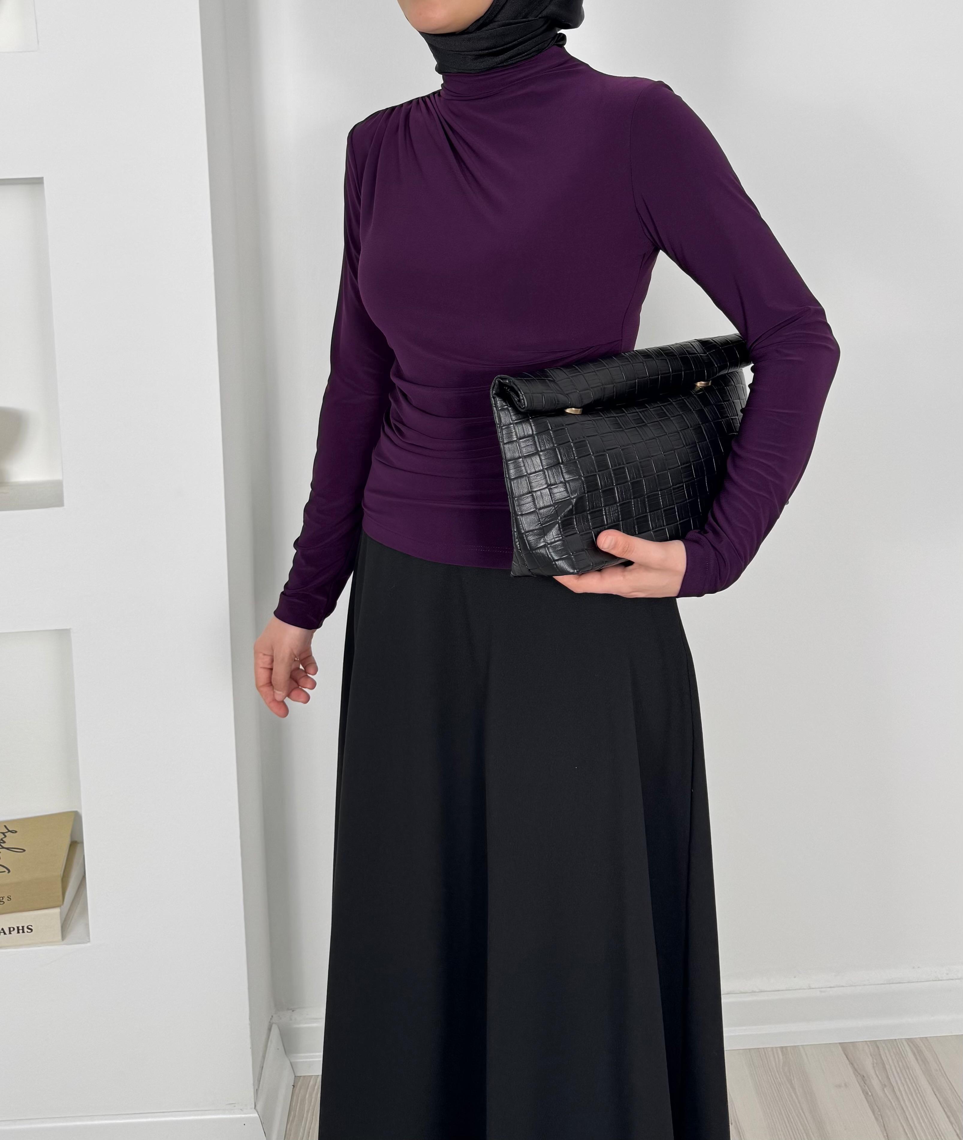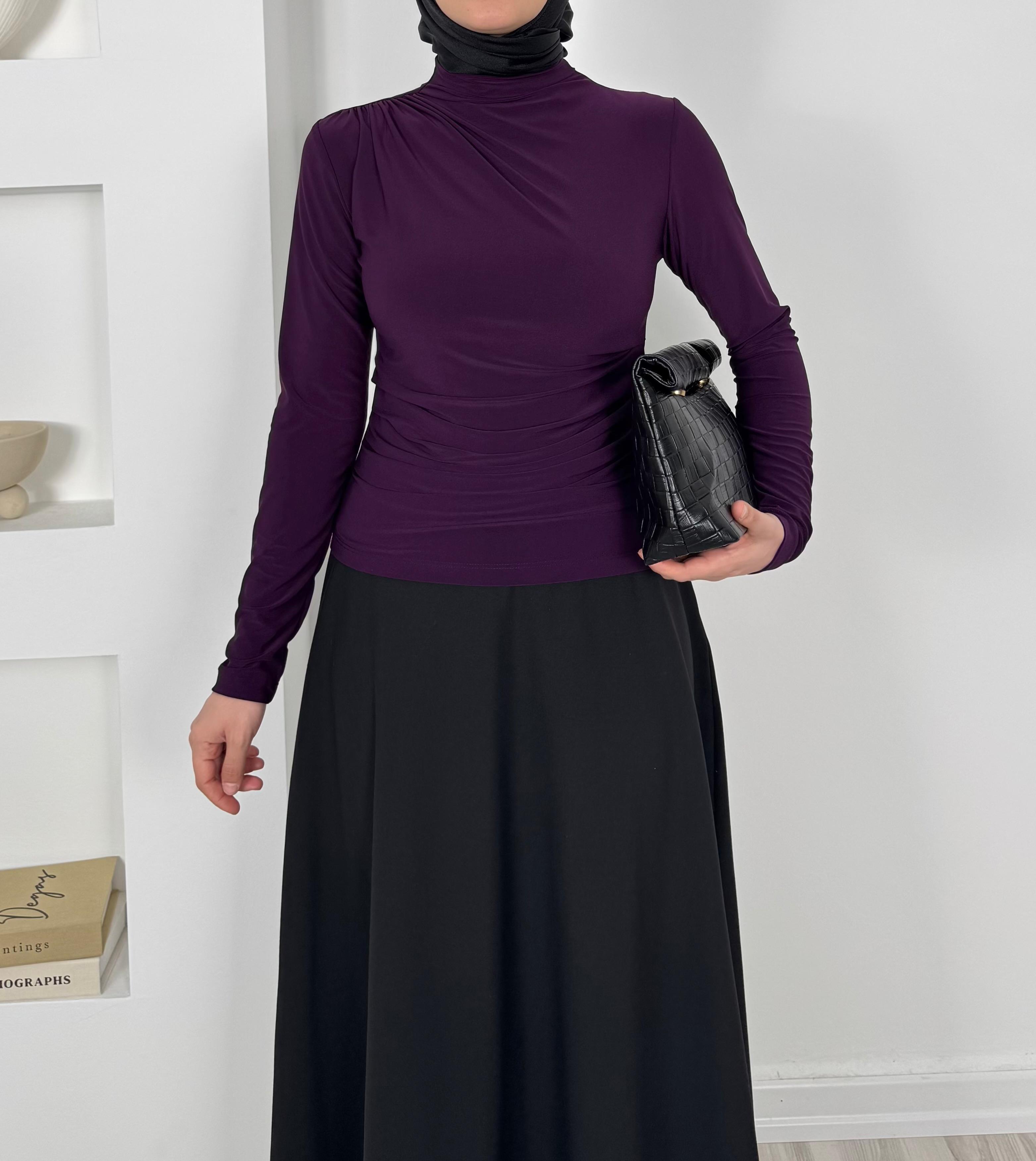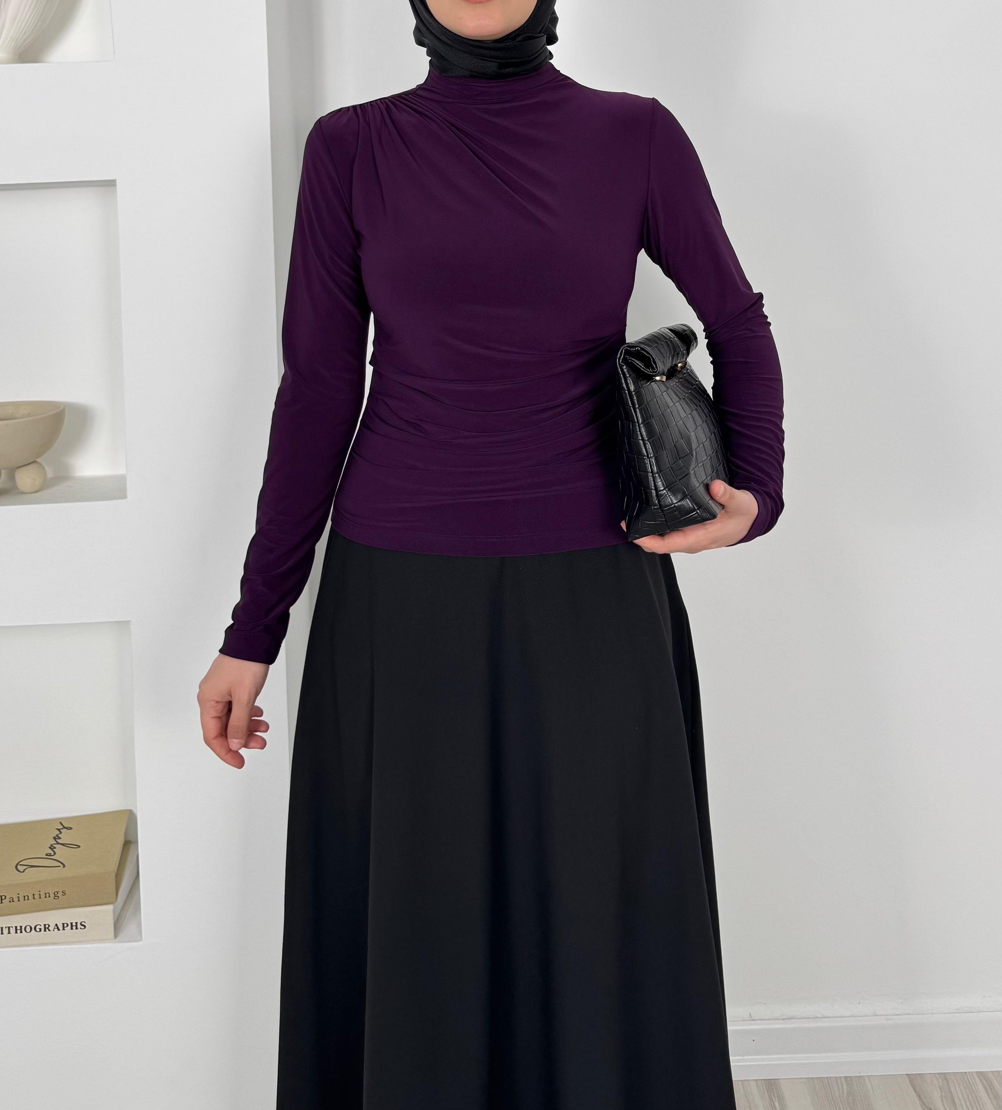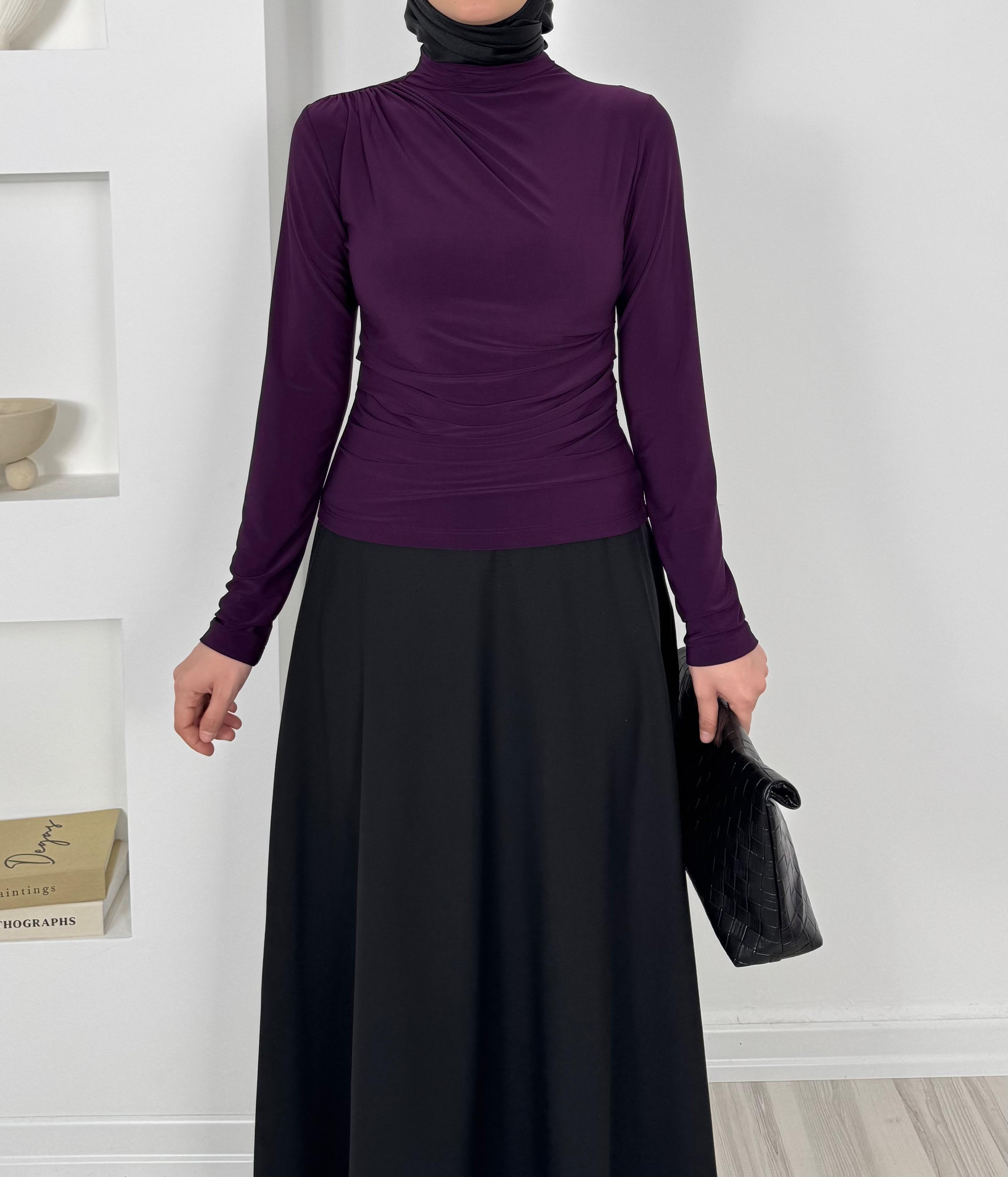 5612-sandy kumaş- alt kısmı büzgü detaylı bluz-mor (5612)
