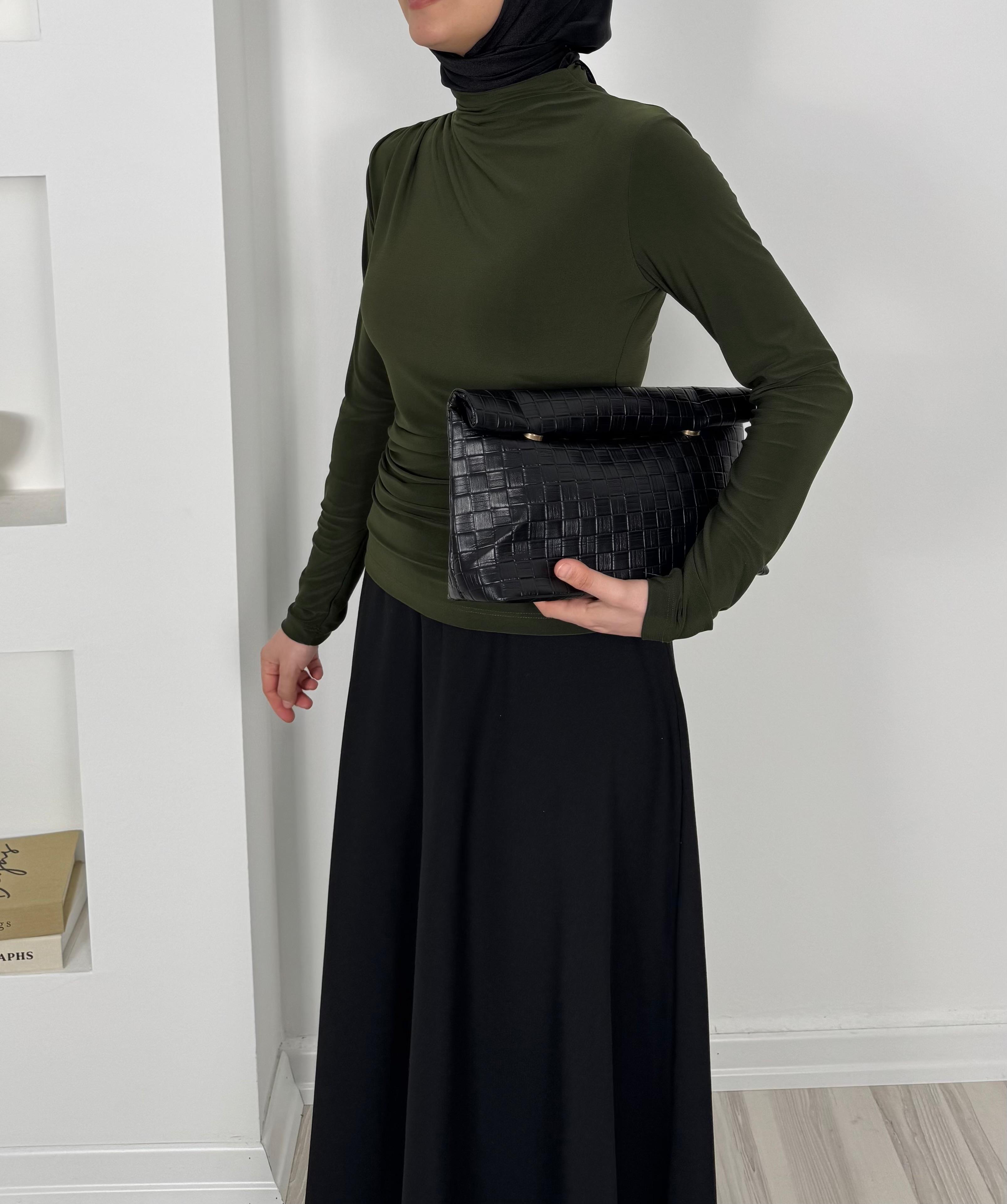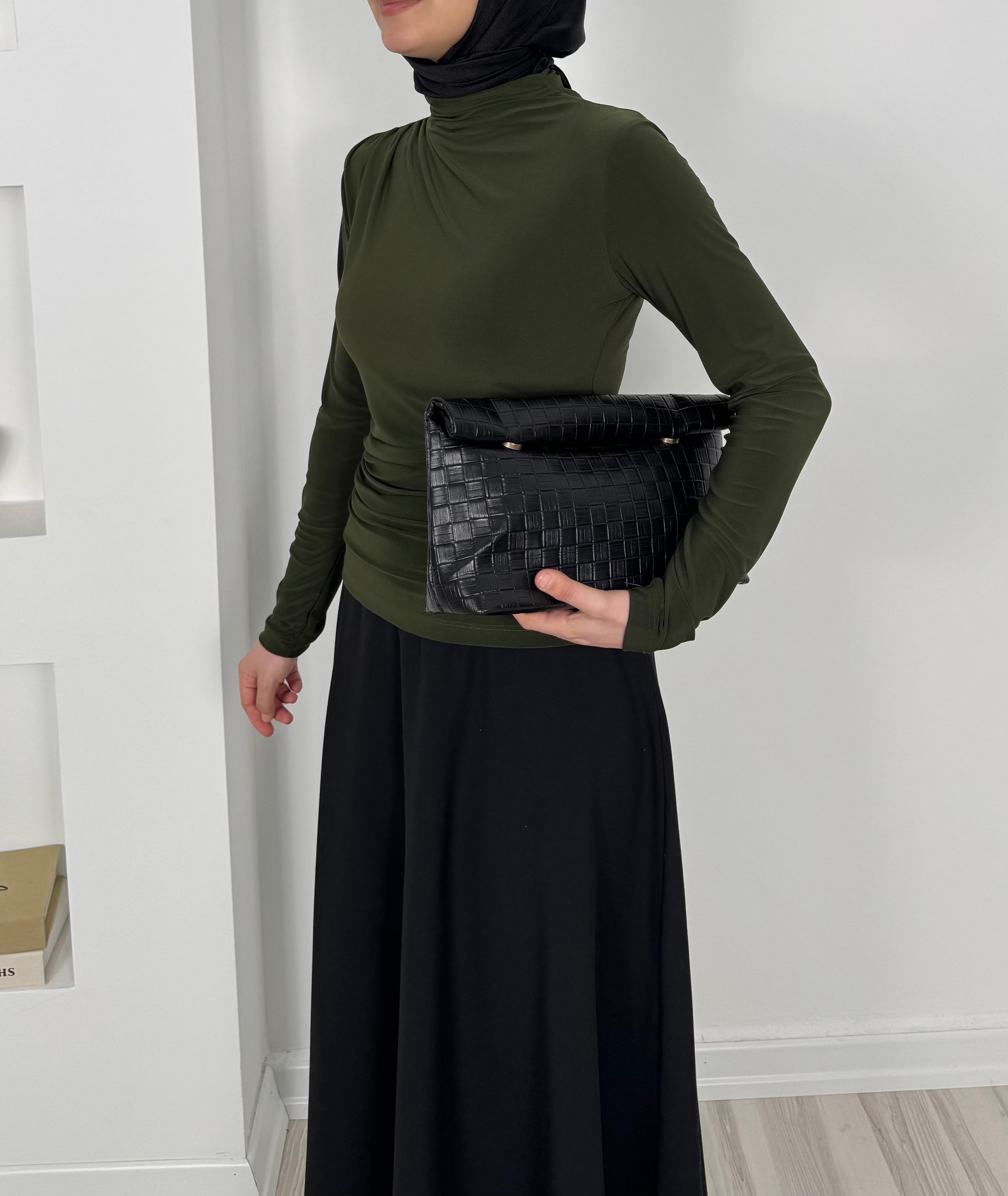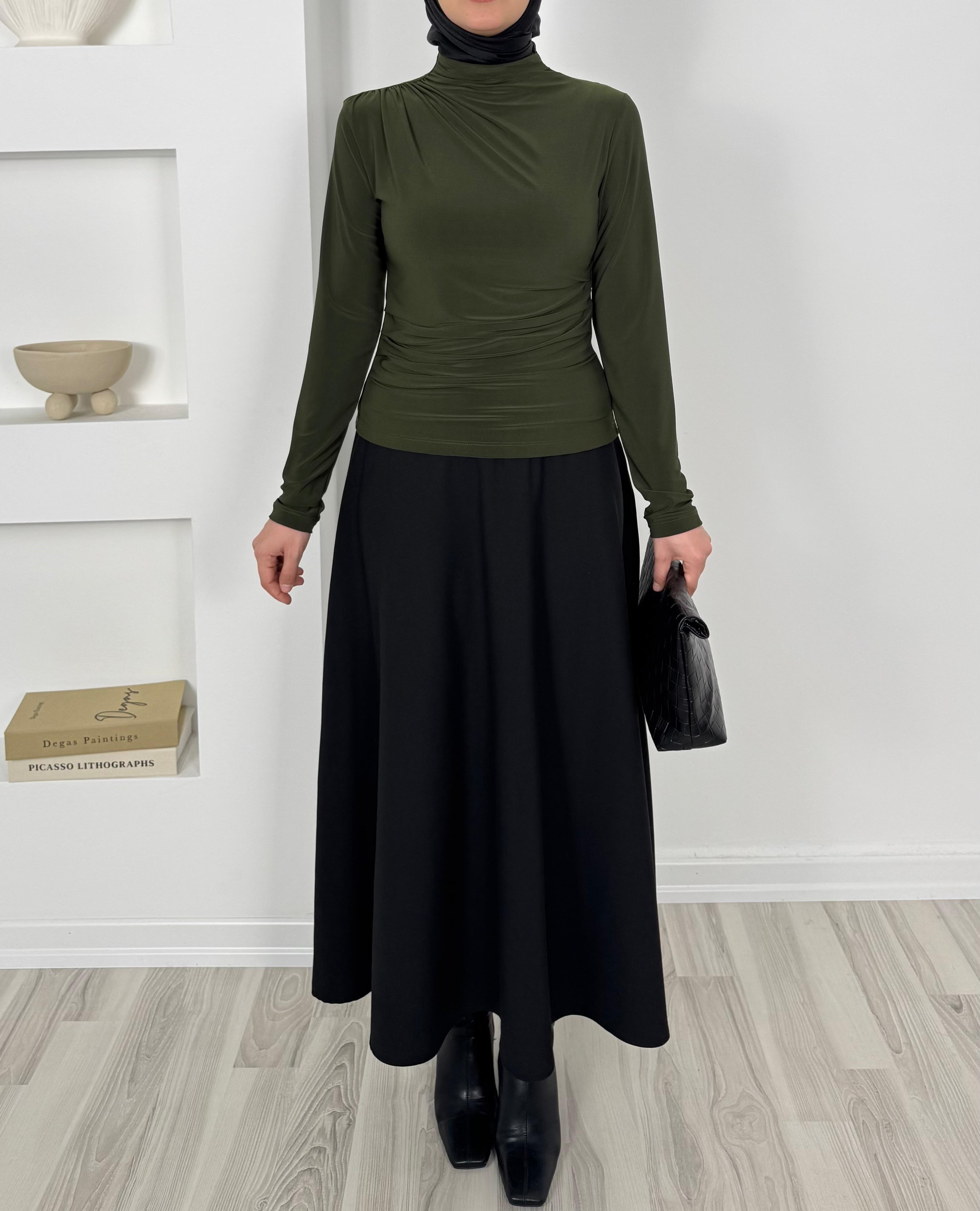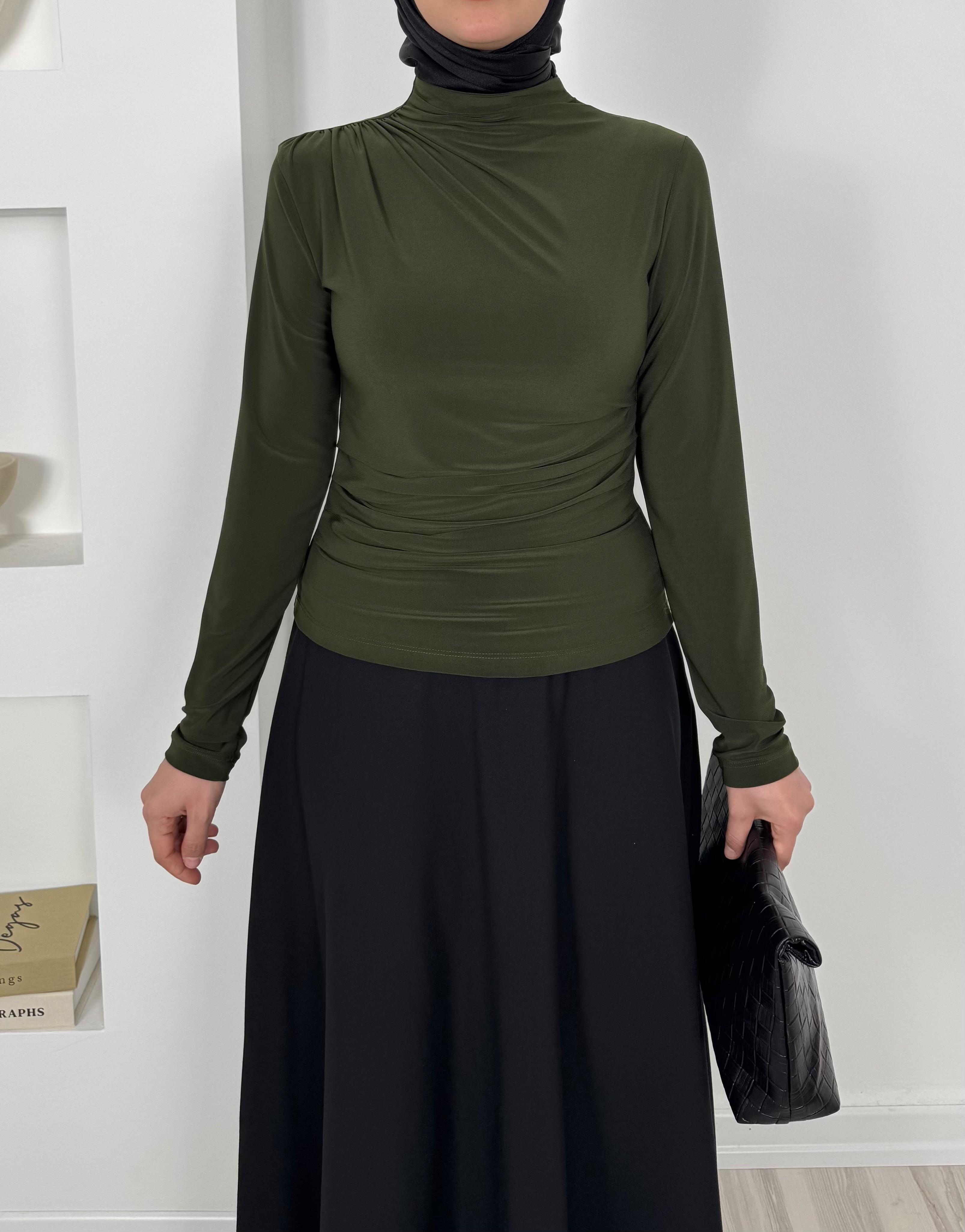 5612-sandy kumaş- alt kısmı büzgü detaylı bluz-yeşil (5612)