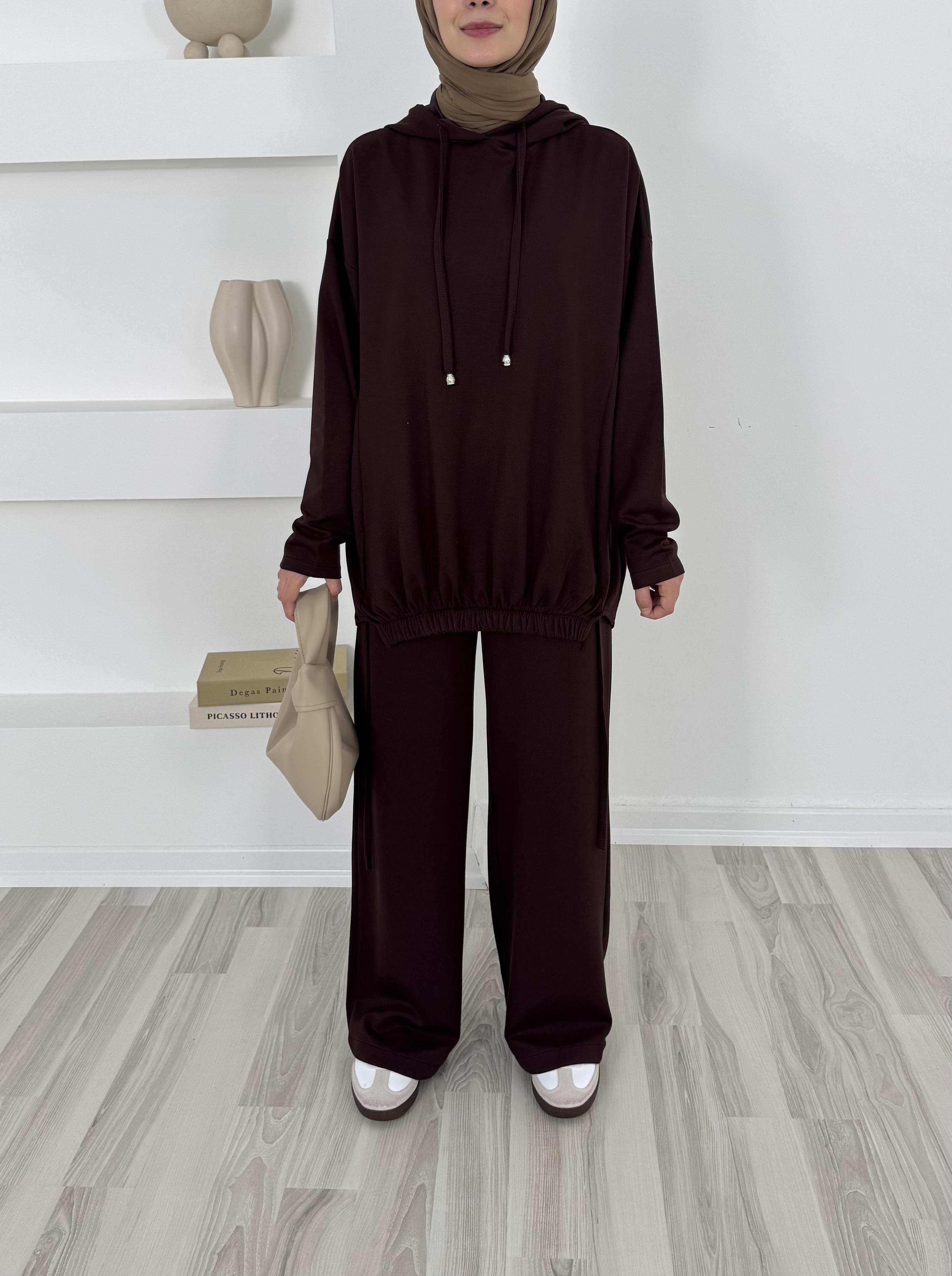 5643 - oysho kumaş pantolonlu takım - acı kahve (5643)