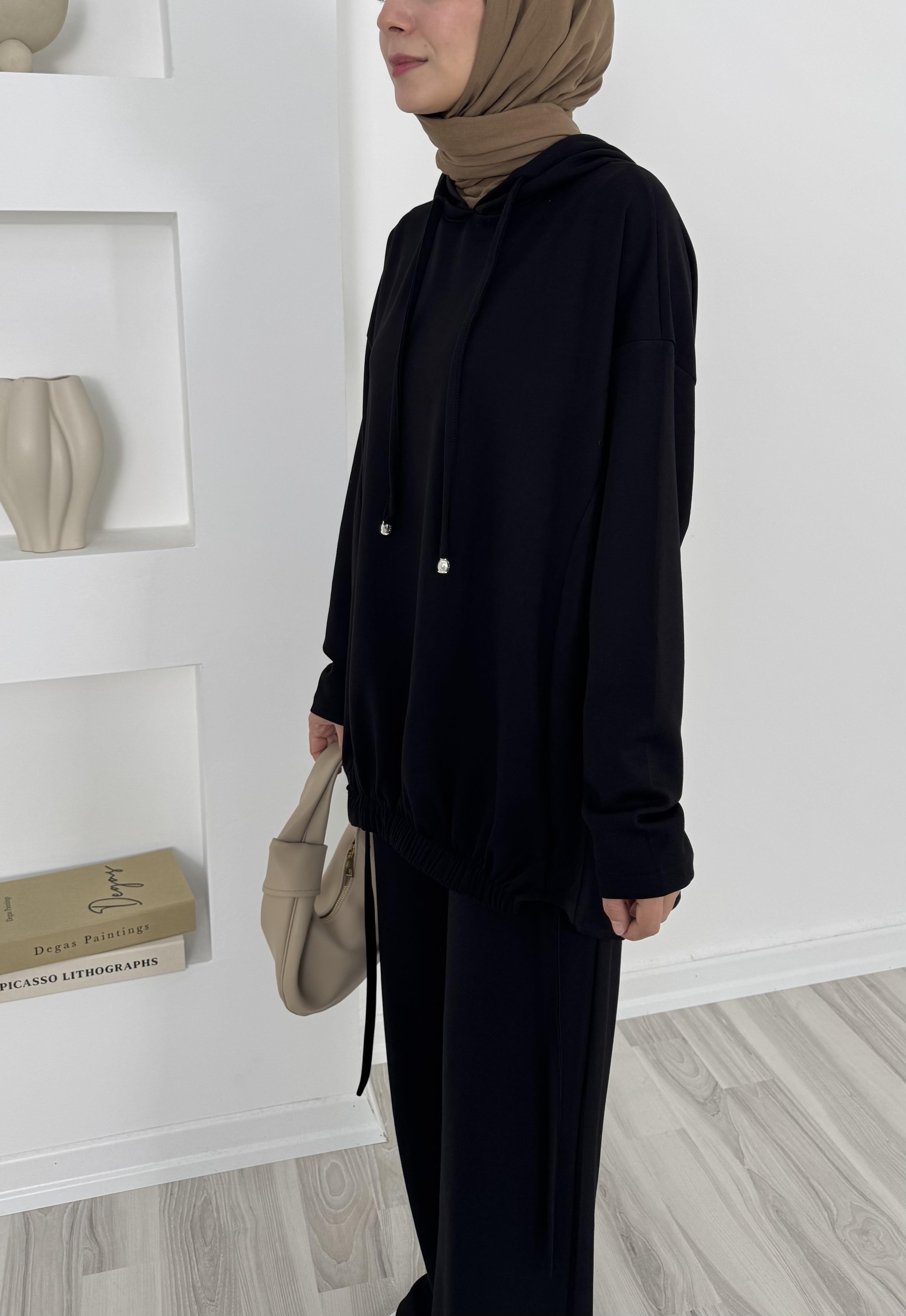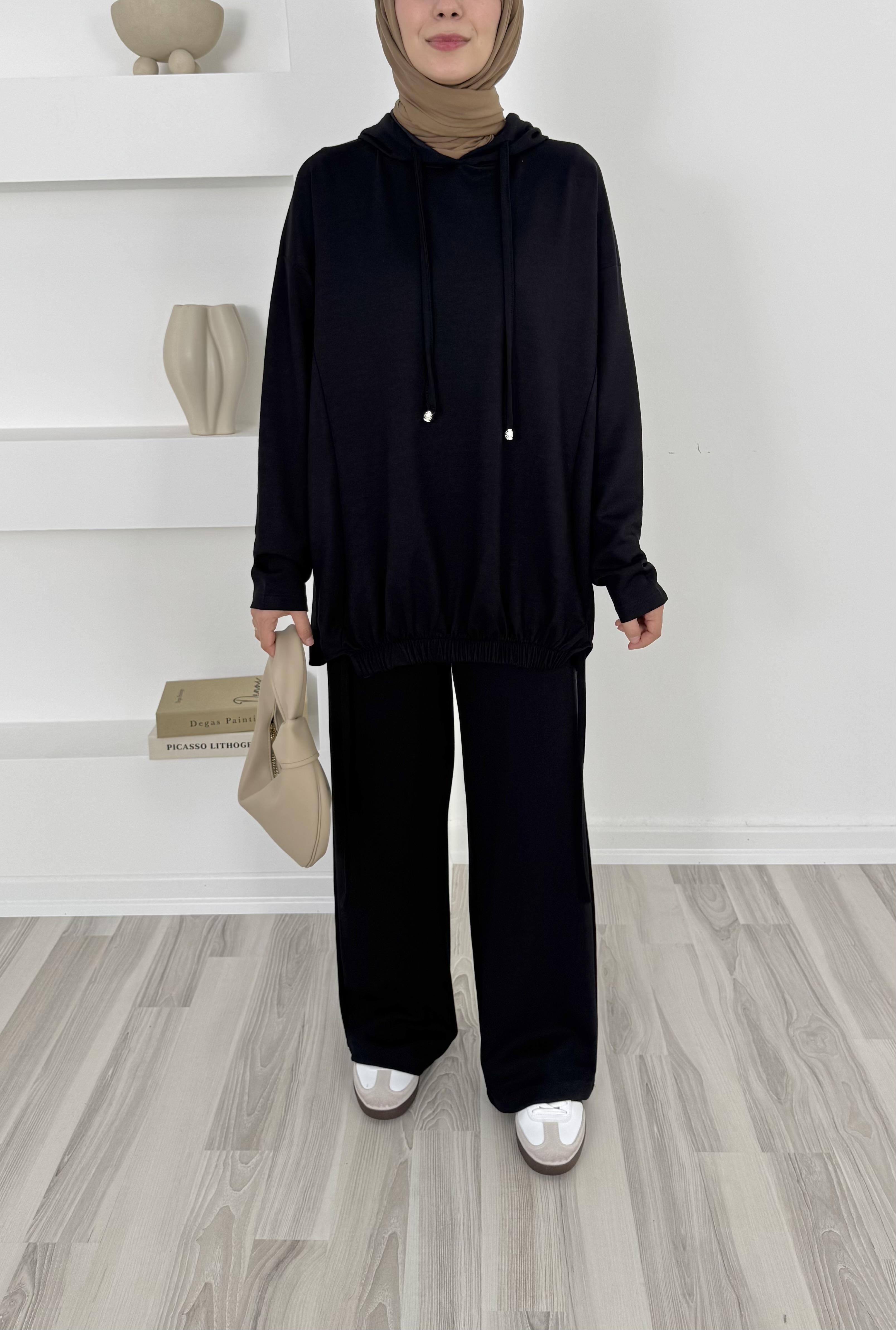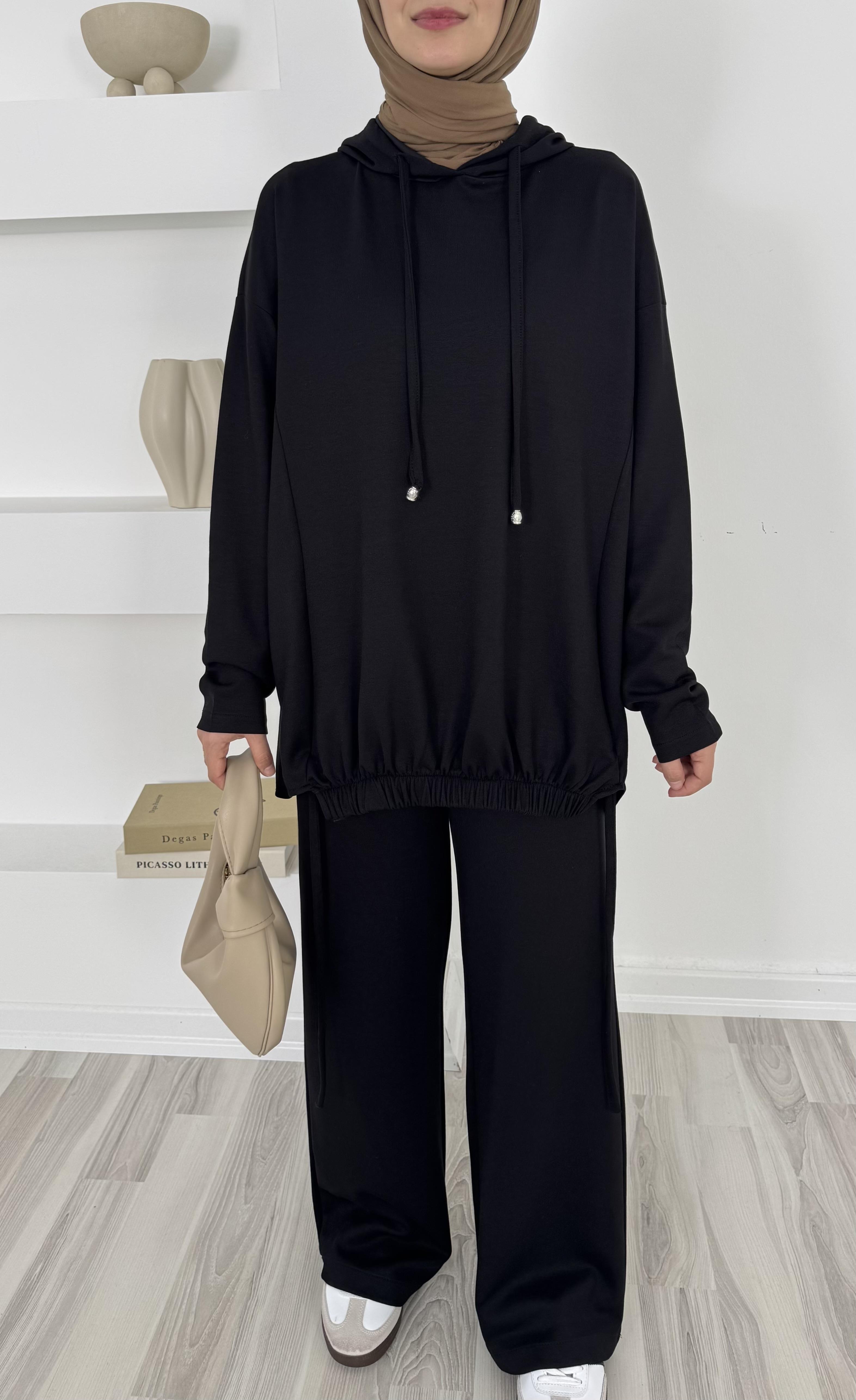 5643 - oysho kumaş pantolonlu takım - siyah (5643)