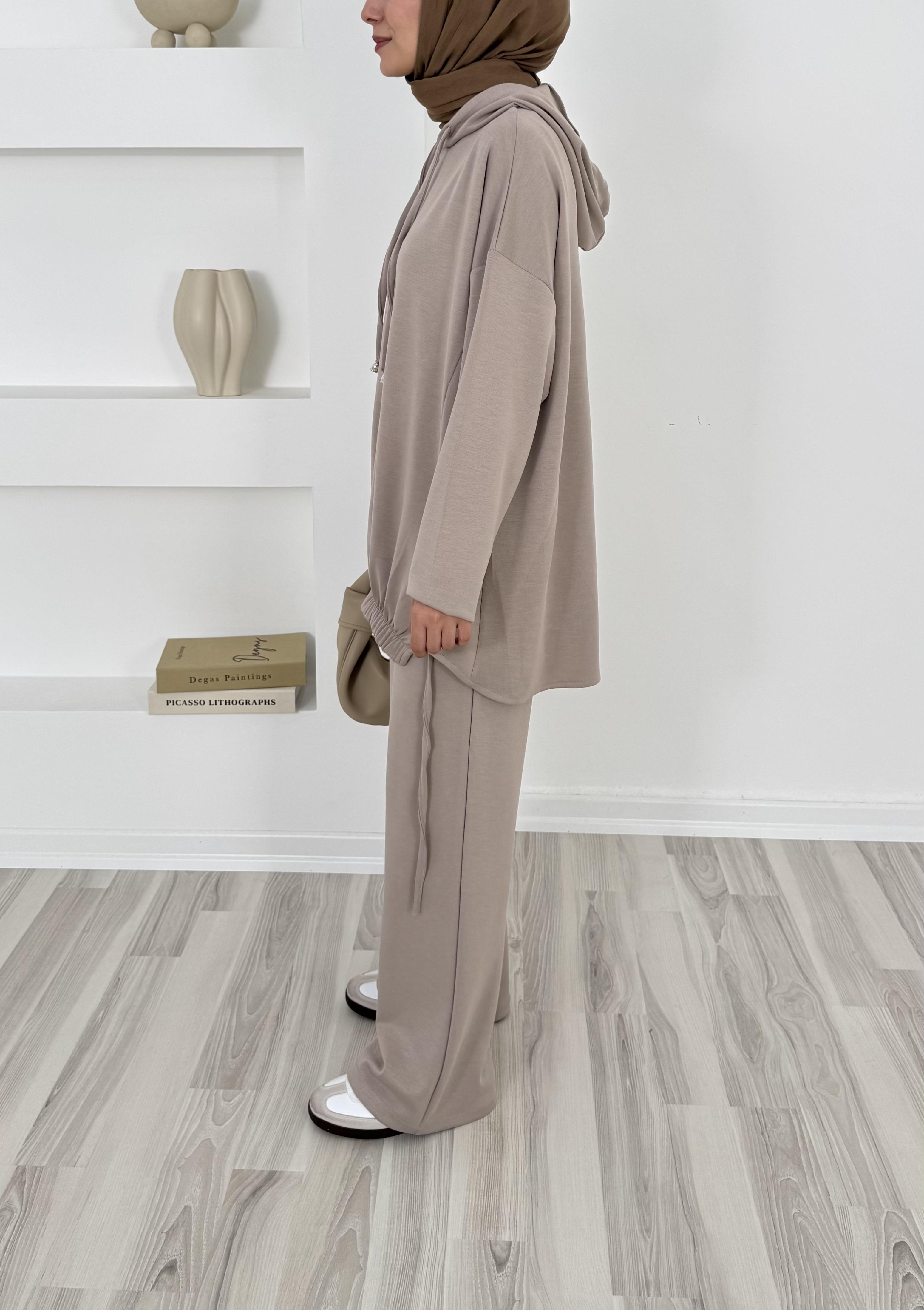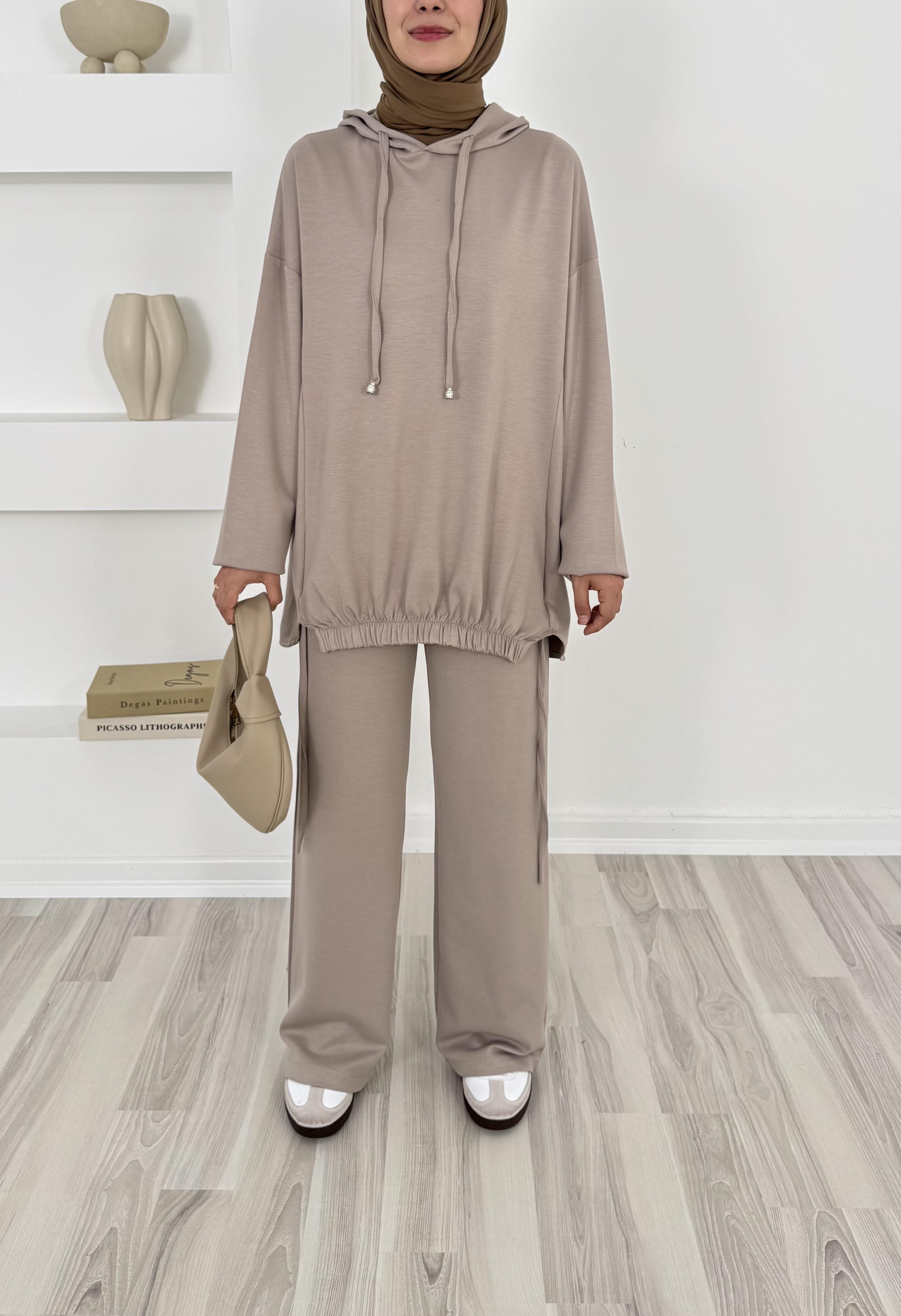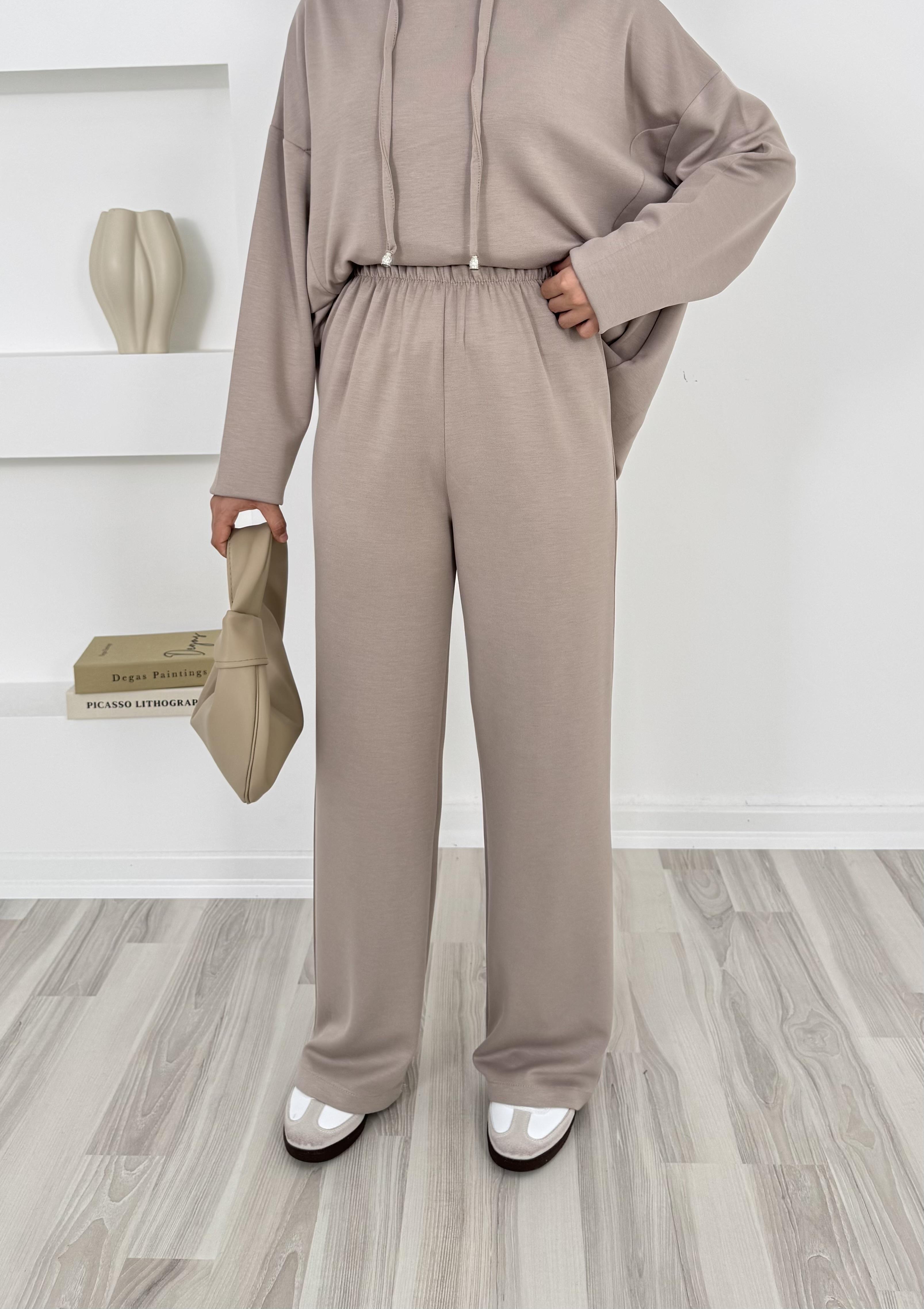 5643 - oysho kumaş pantolonlu takım - taş (5643)