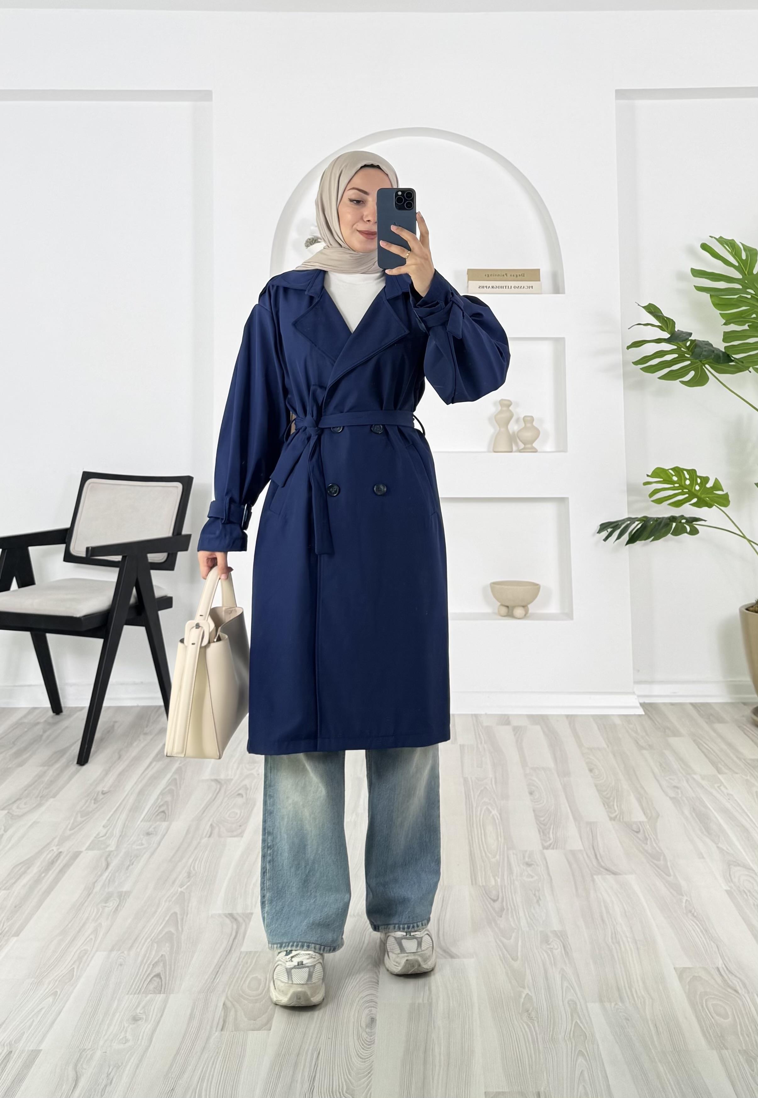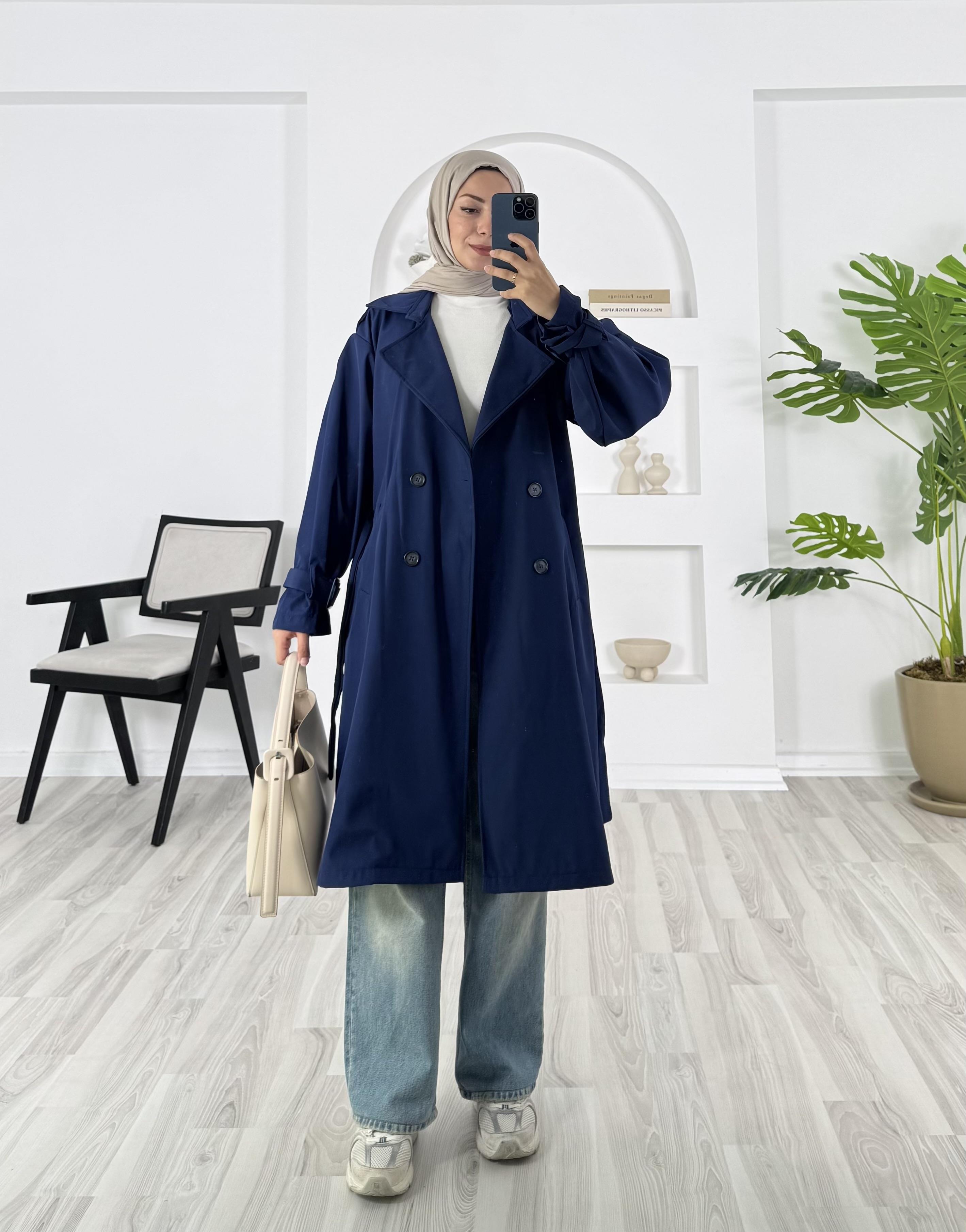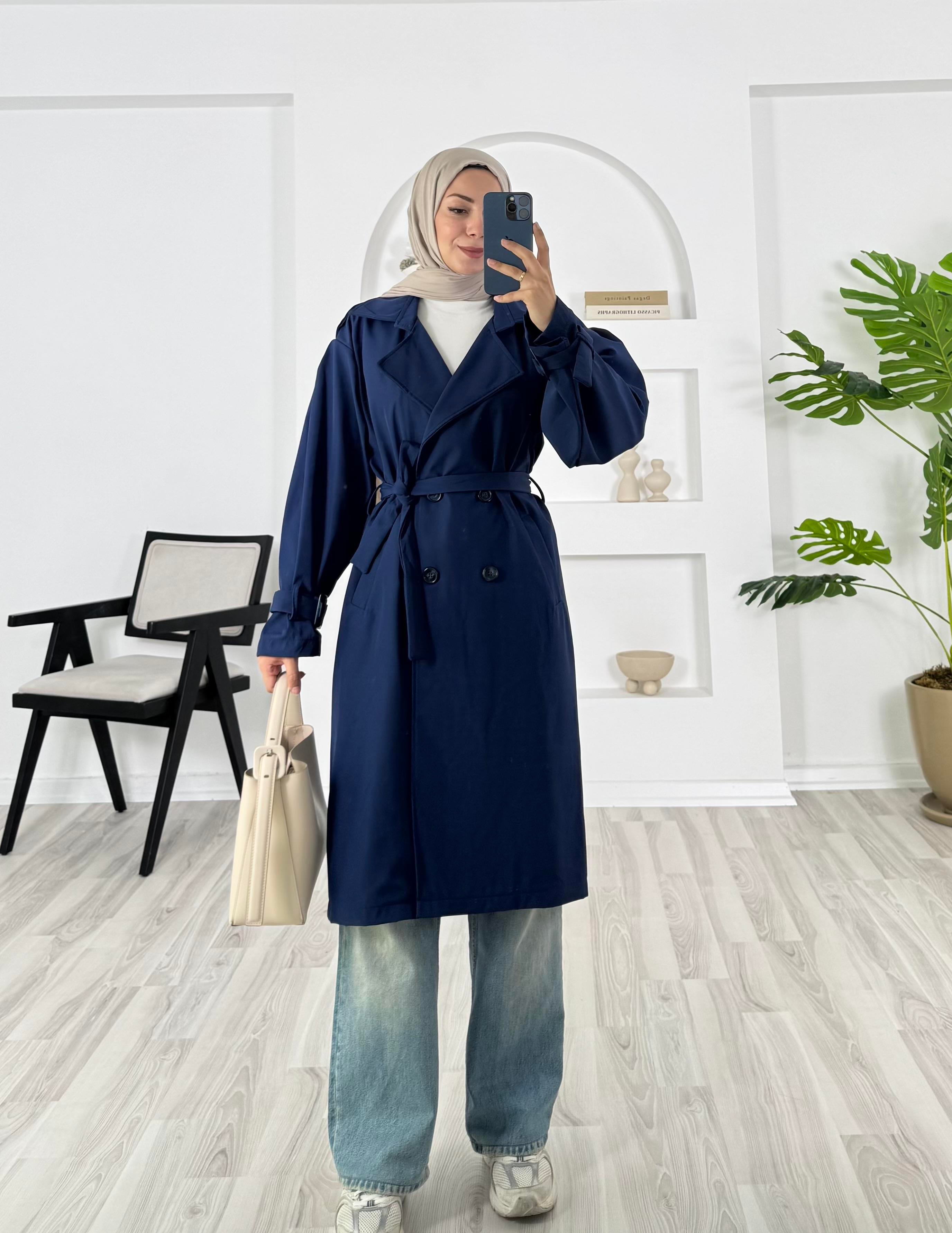 omuz apoletli kemerli trenç