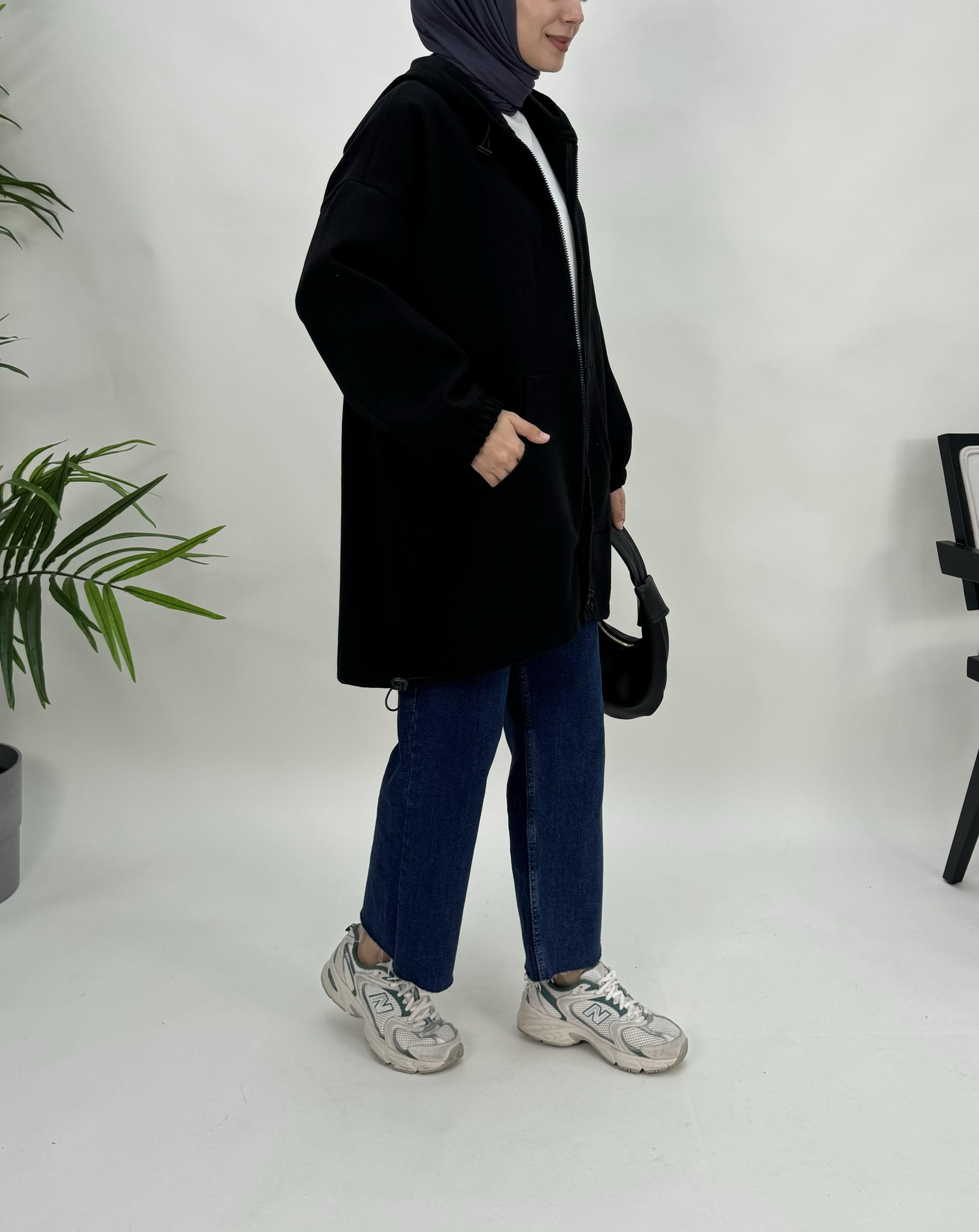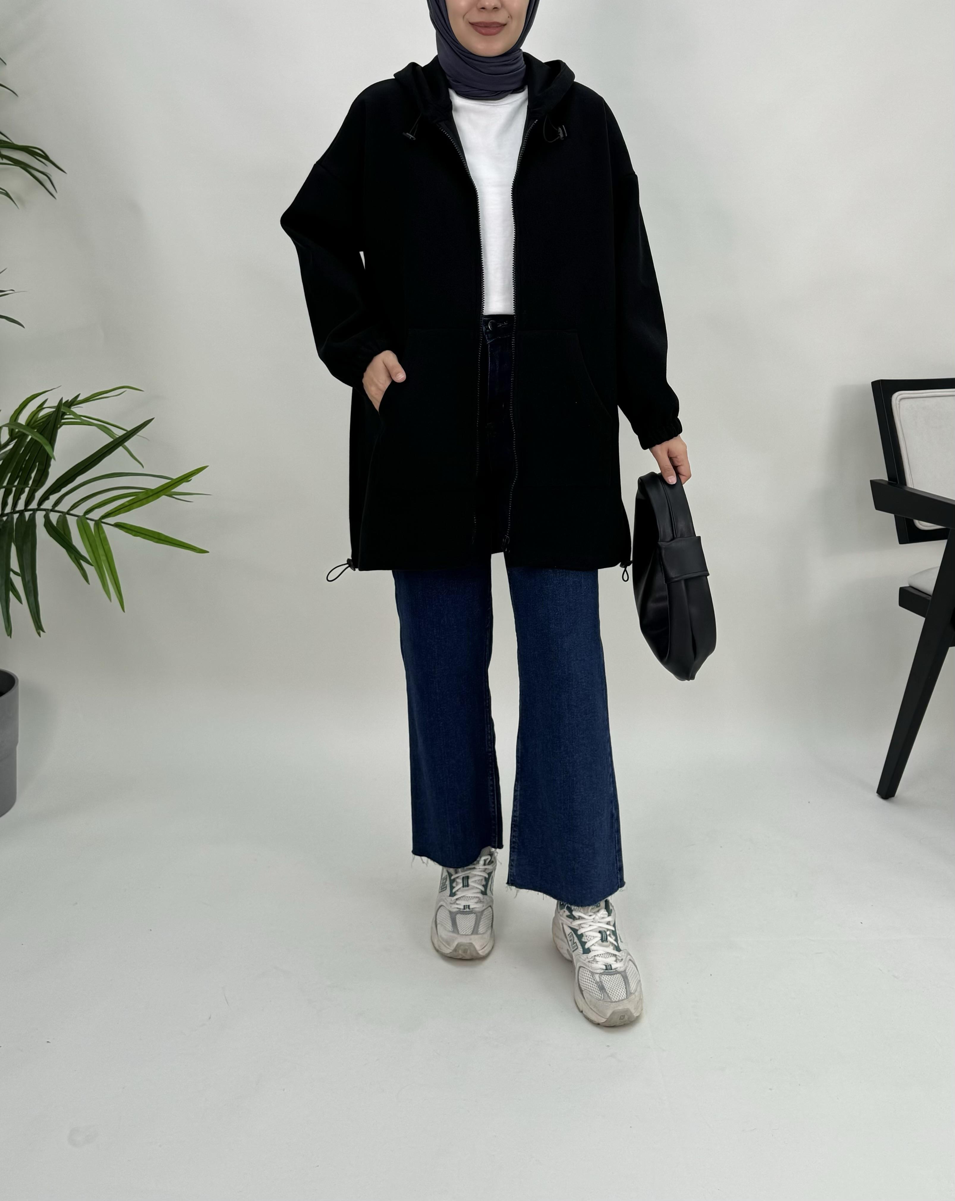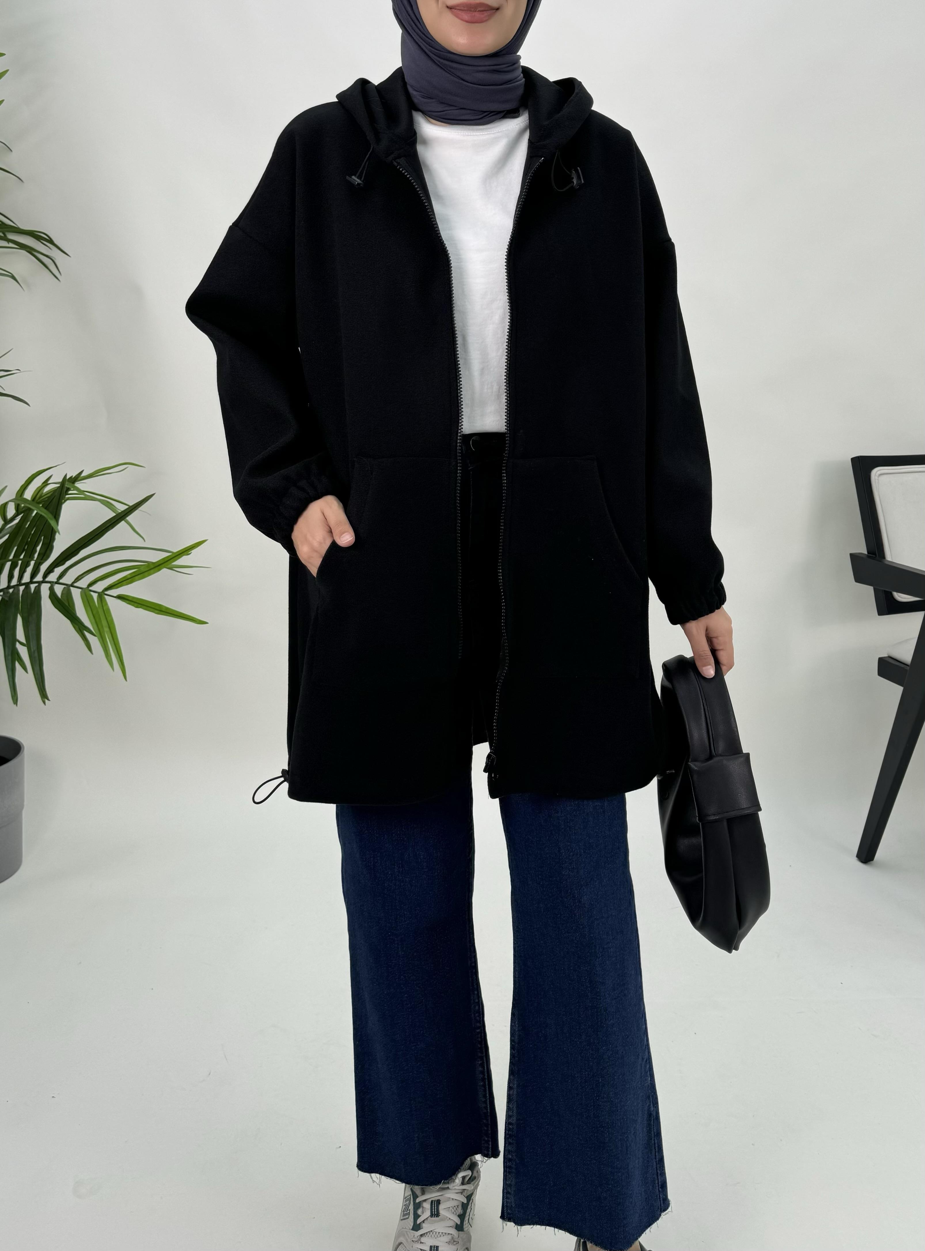 5711-kaşe kumaş-önü cepli alt kısmı büzülebilir fermuarlı hırka-siyah (5711)