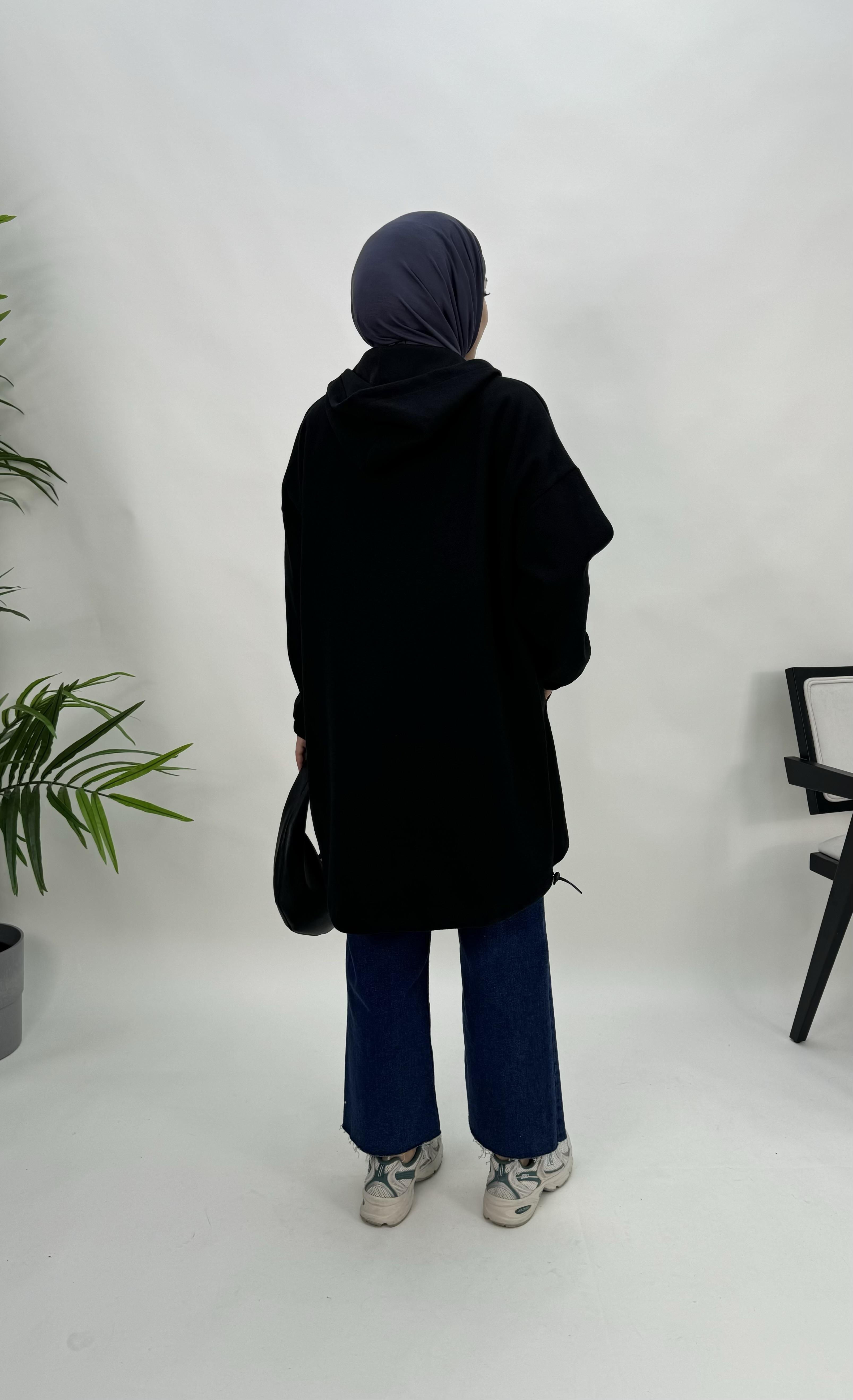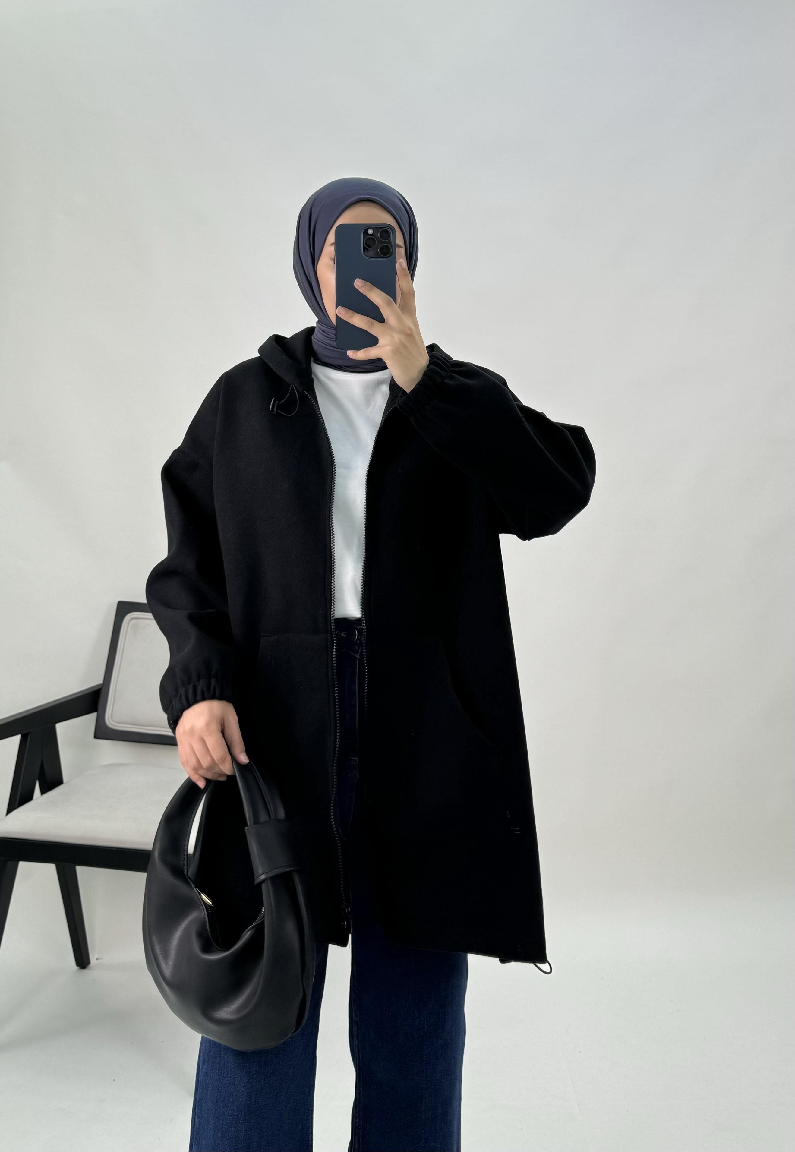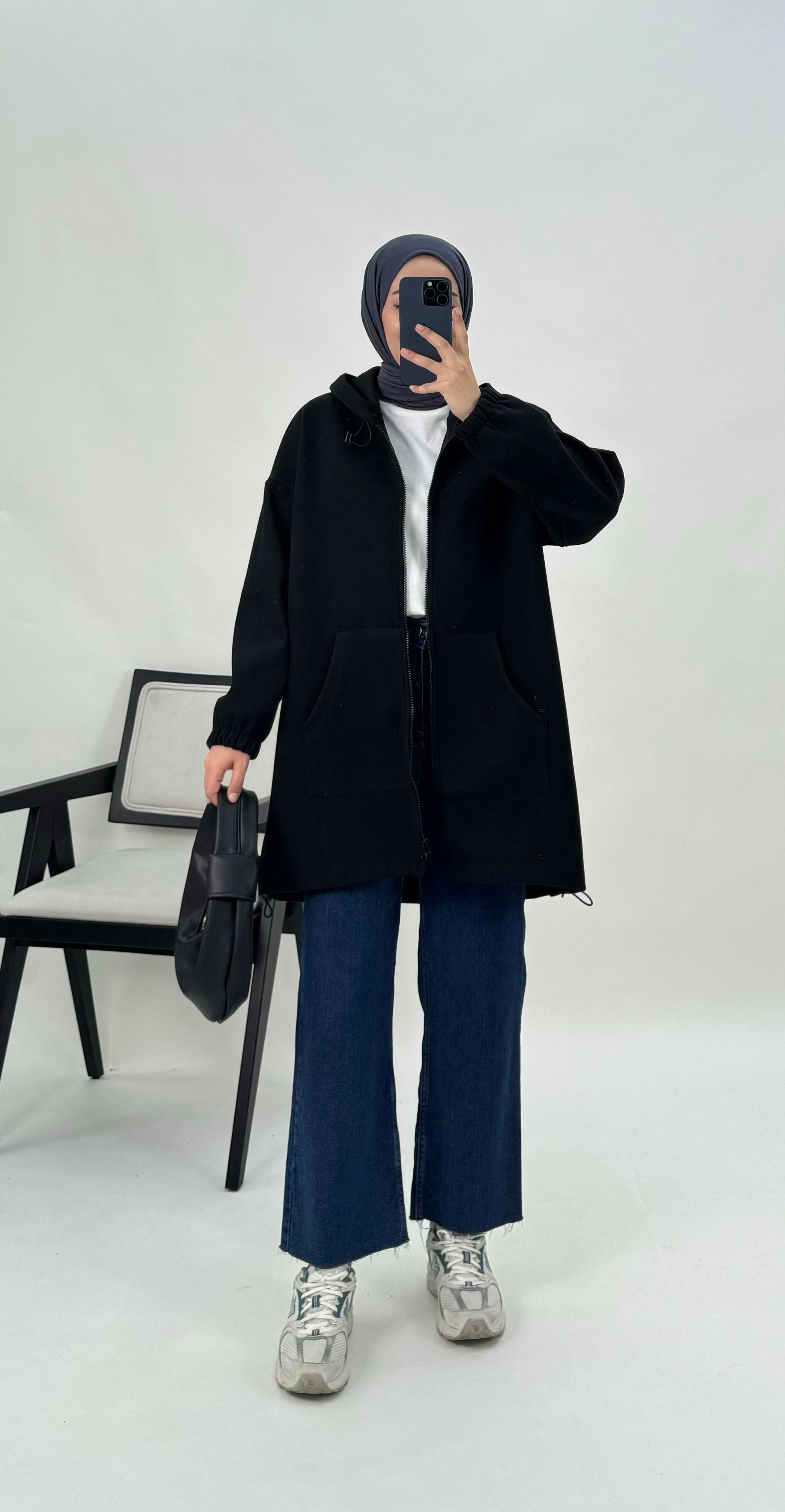 5711-kaşe kumaş-önü cepli alt kısmı büzülebilir fermuarlı hırka-siyah (5711)