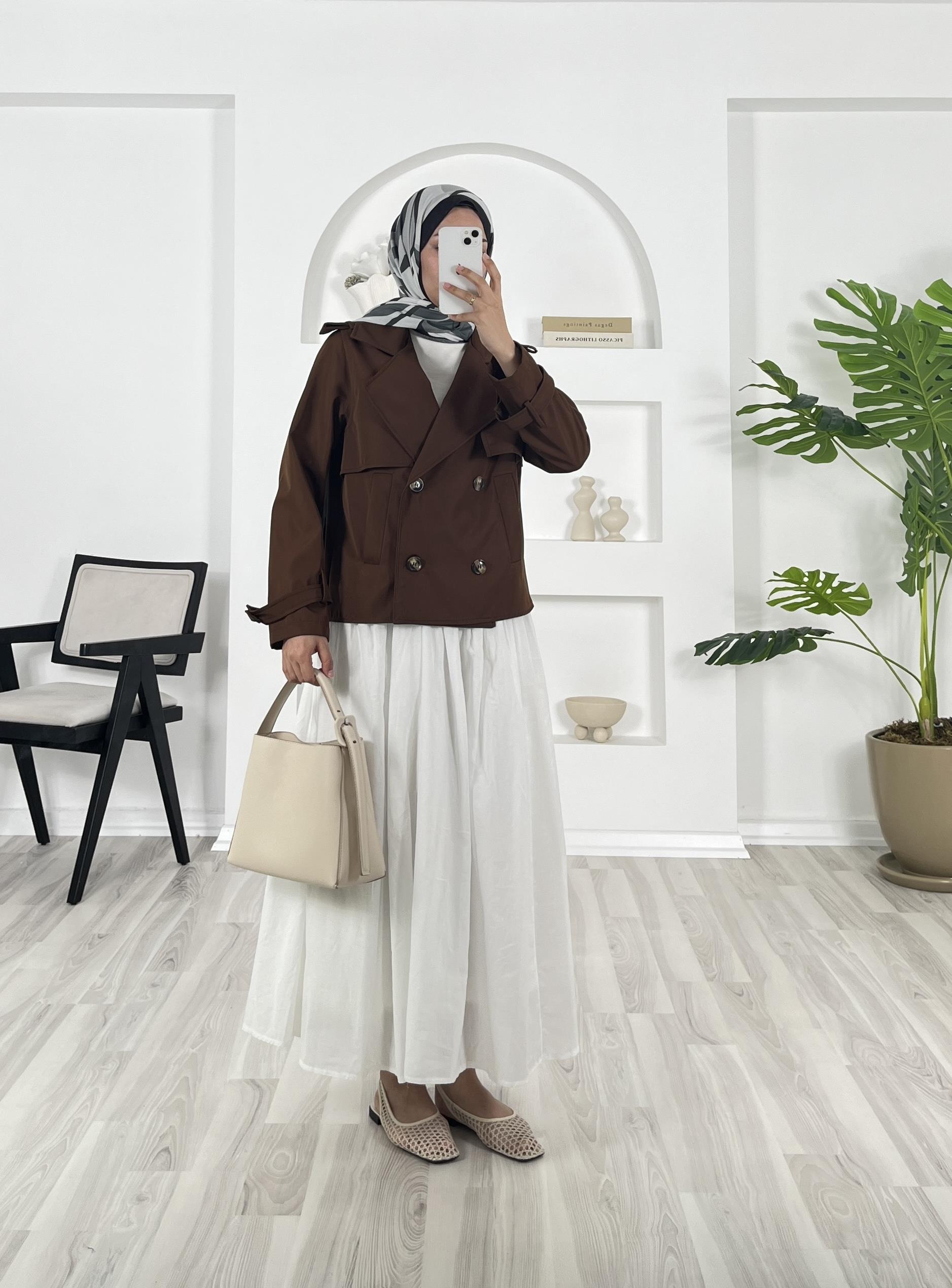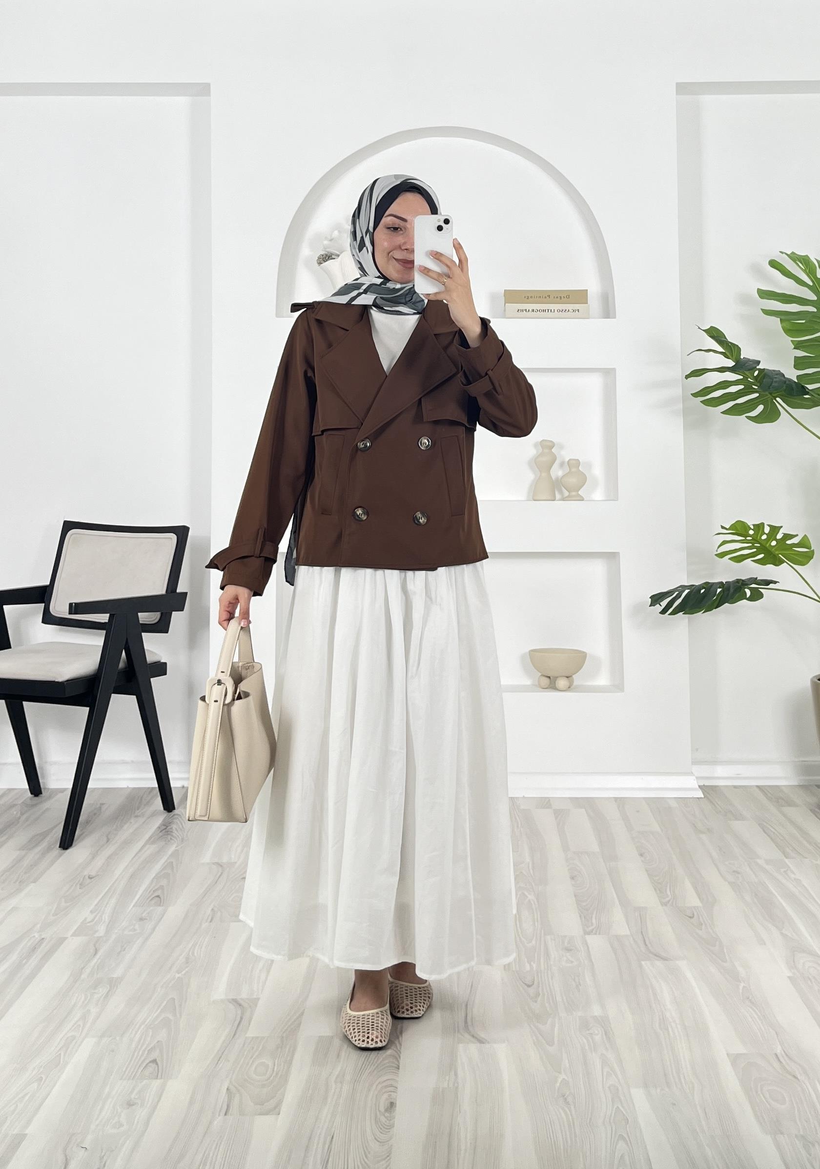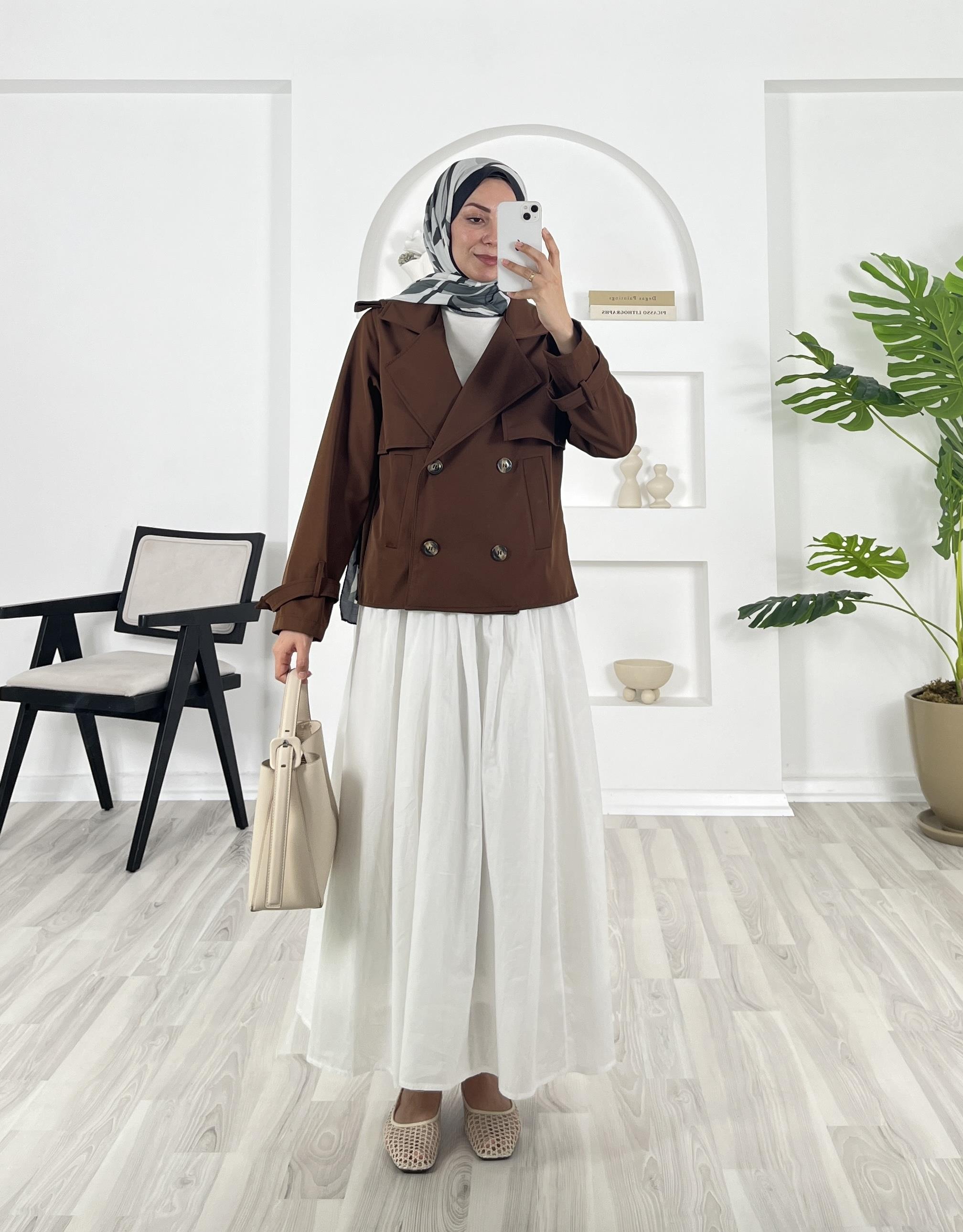 5727-bondit kumaş-önü düğmeli omuz detaylı kısa trenç-acı kahve (5727)