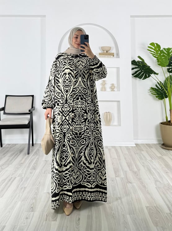 5763-pamuk viskon kumaş-boydan düğmeli elbise-siyah (5763)