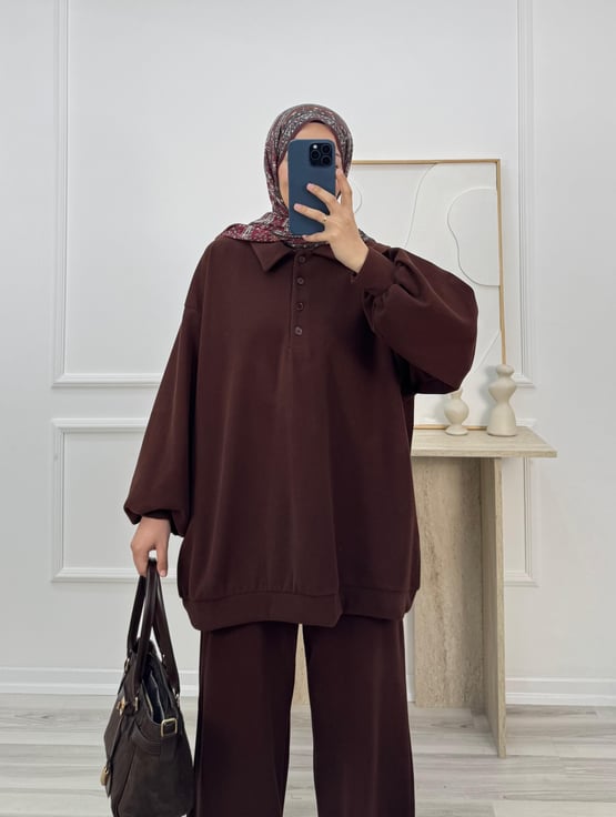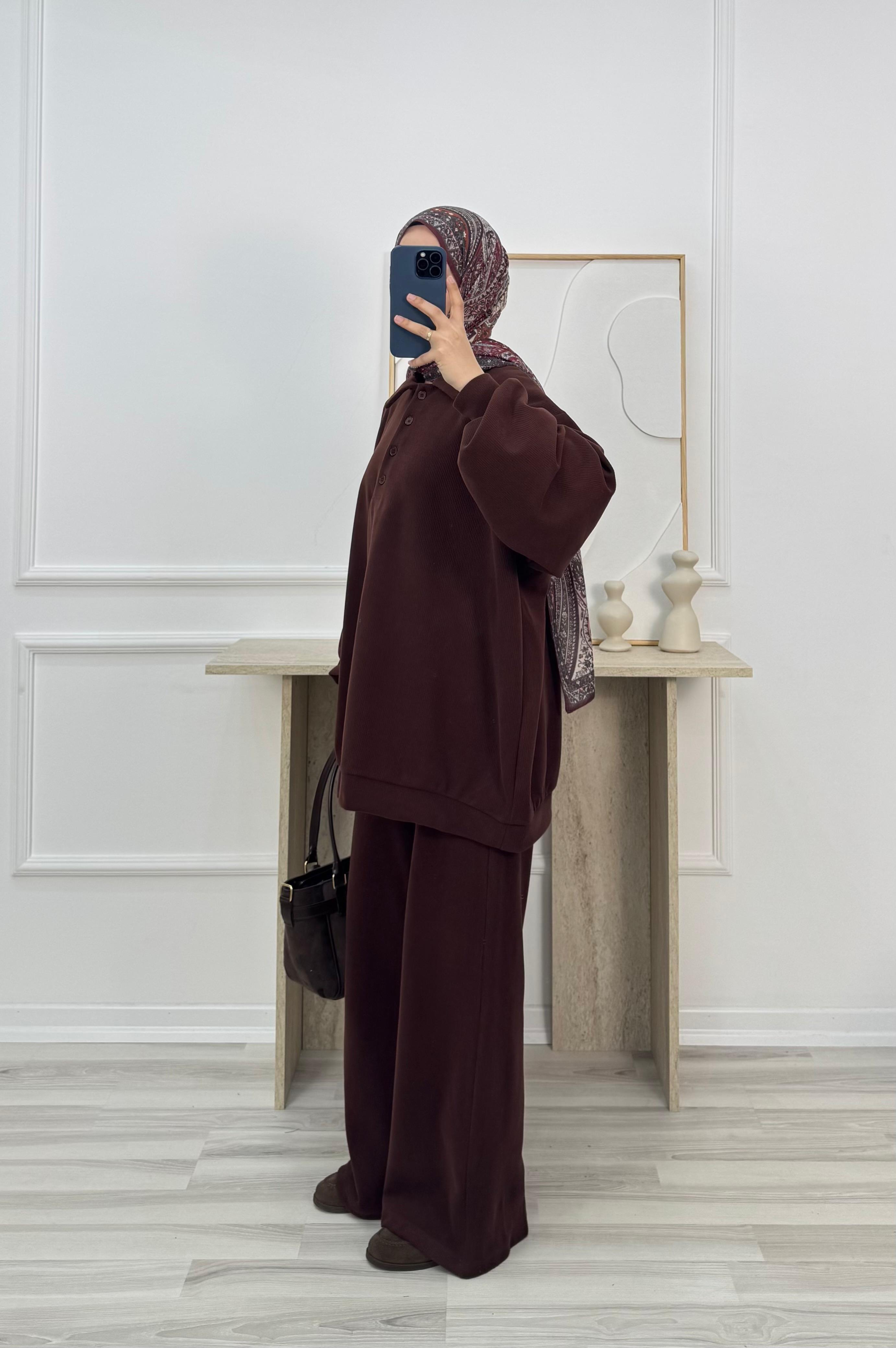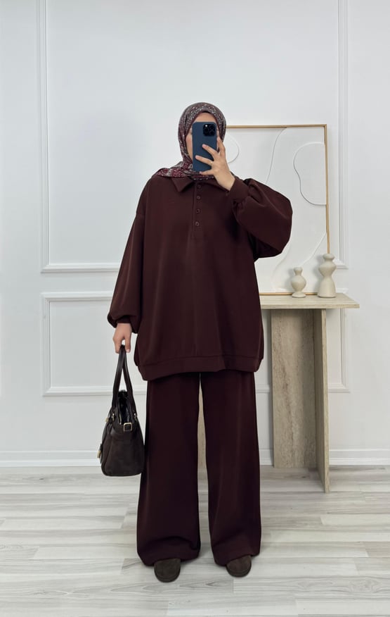 5909-likralı selanik pantolonlu takım-acı kahve (5909)