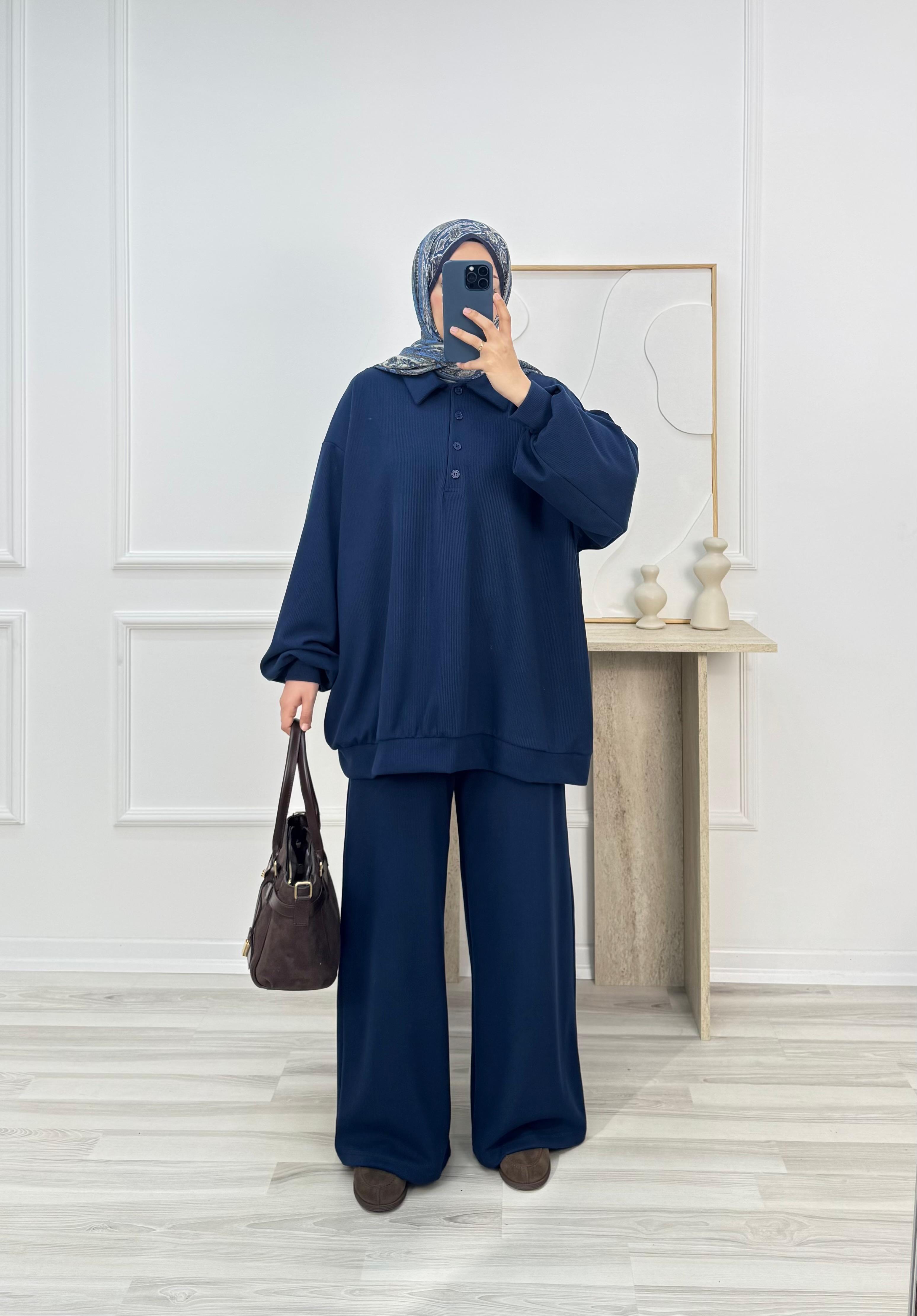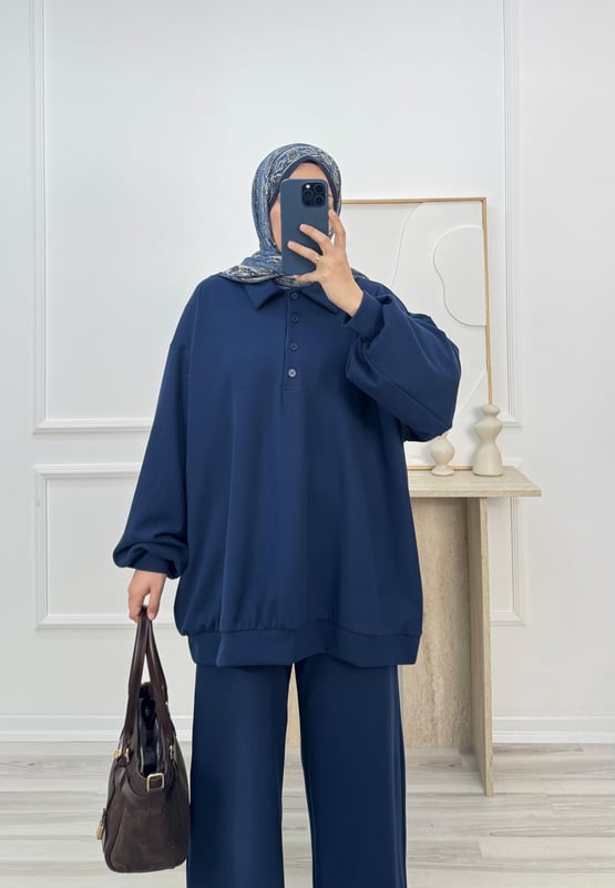 5909-likralı selanik pantolonlu takım-mavi (5909)