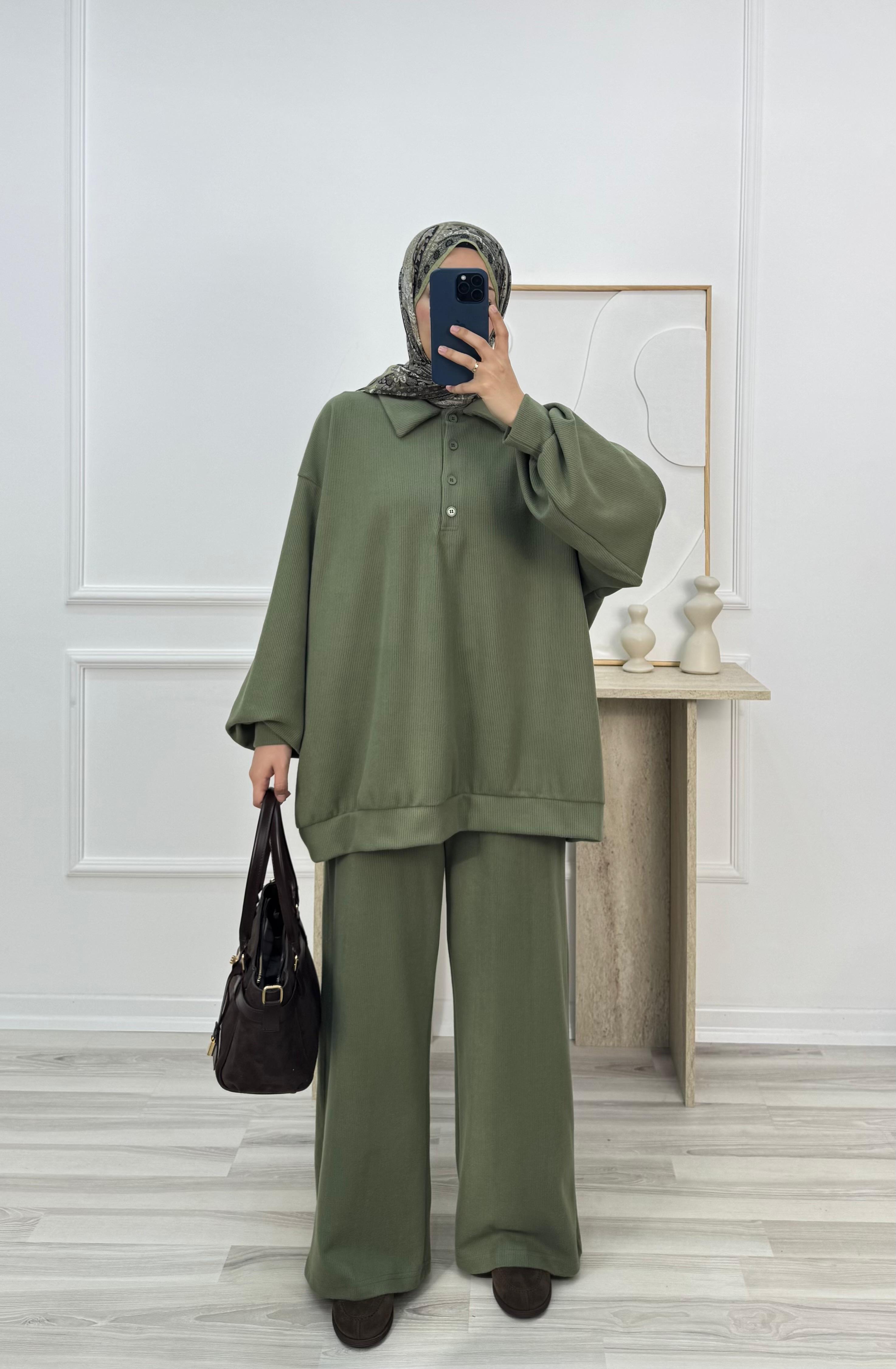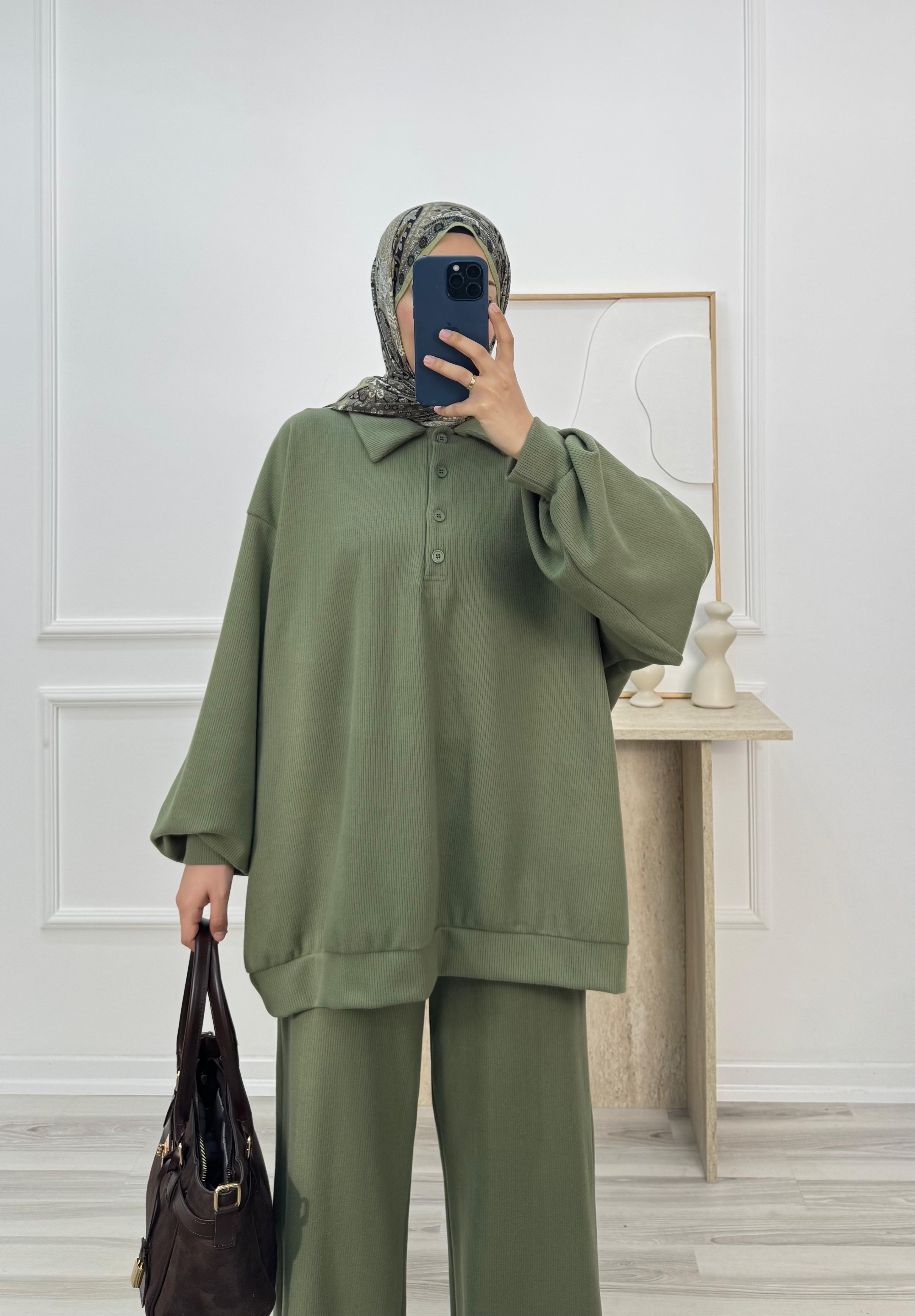 5909-likralı selanik pantolonlu takım-yeşil (5909)