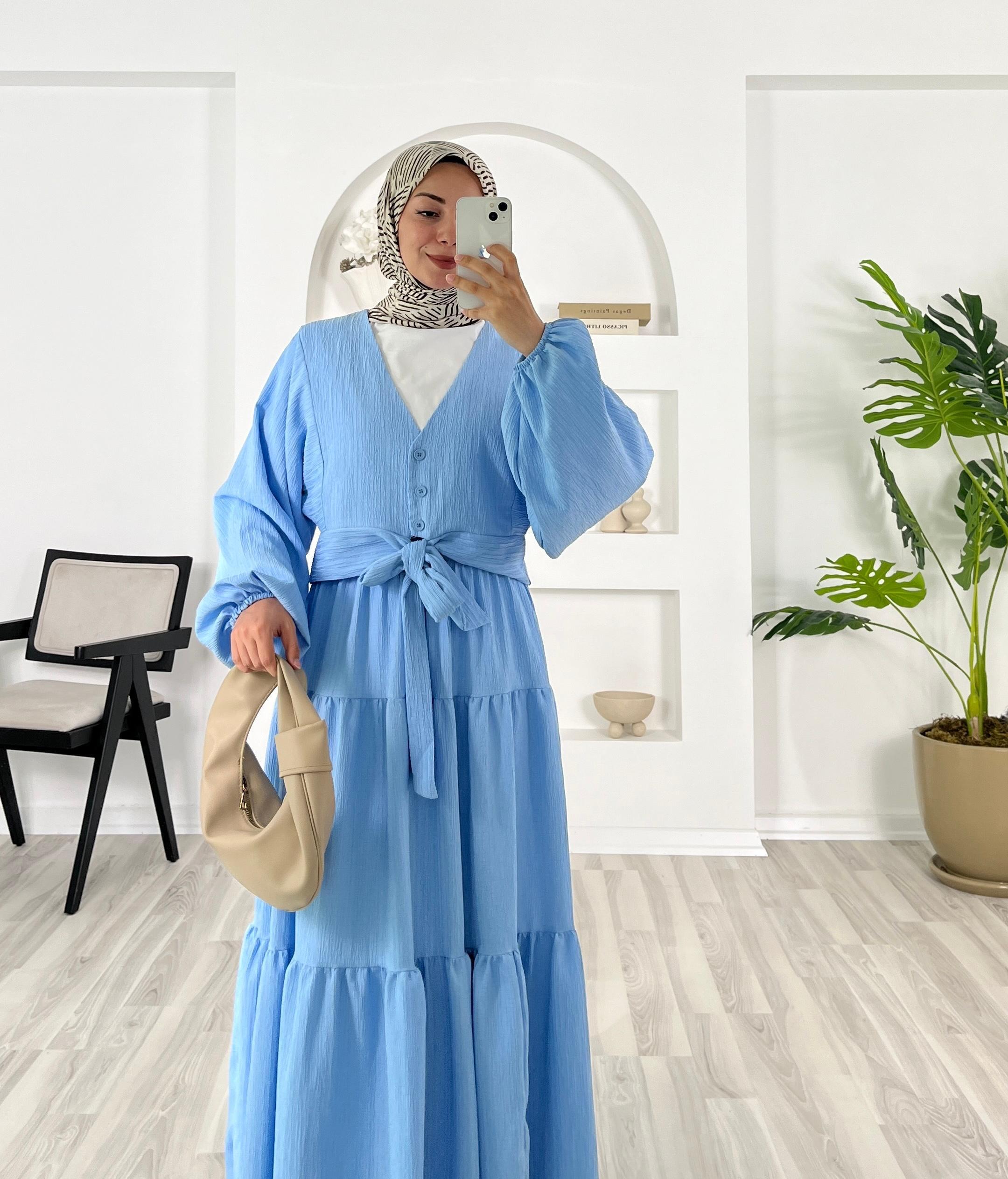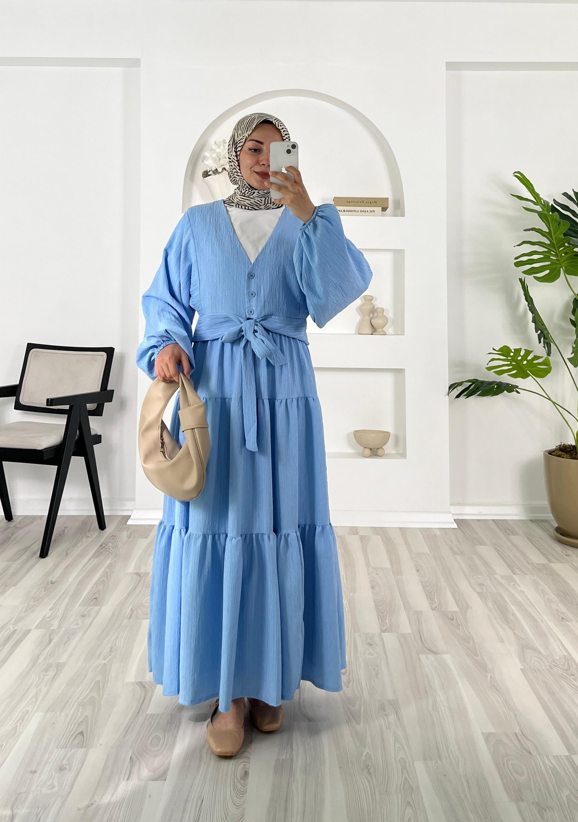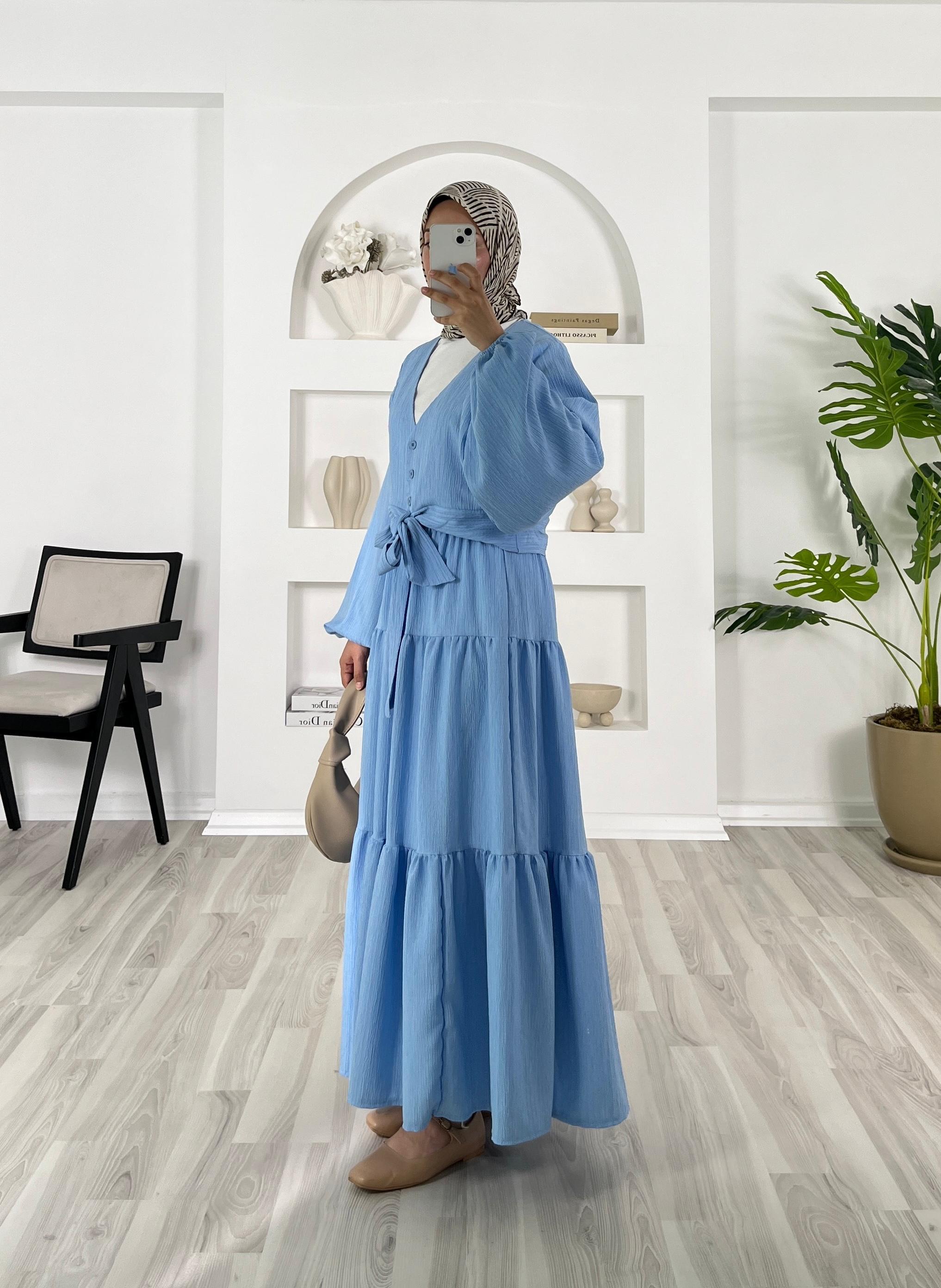 5942-alissa kumaş-önü bağlamalı bilek ucu lastikli etekli takım-bebe mavisi (5942)