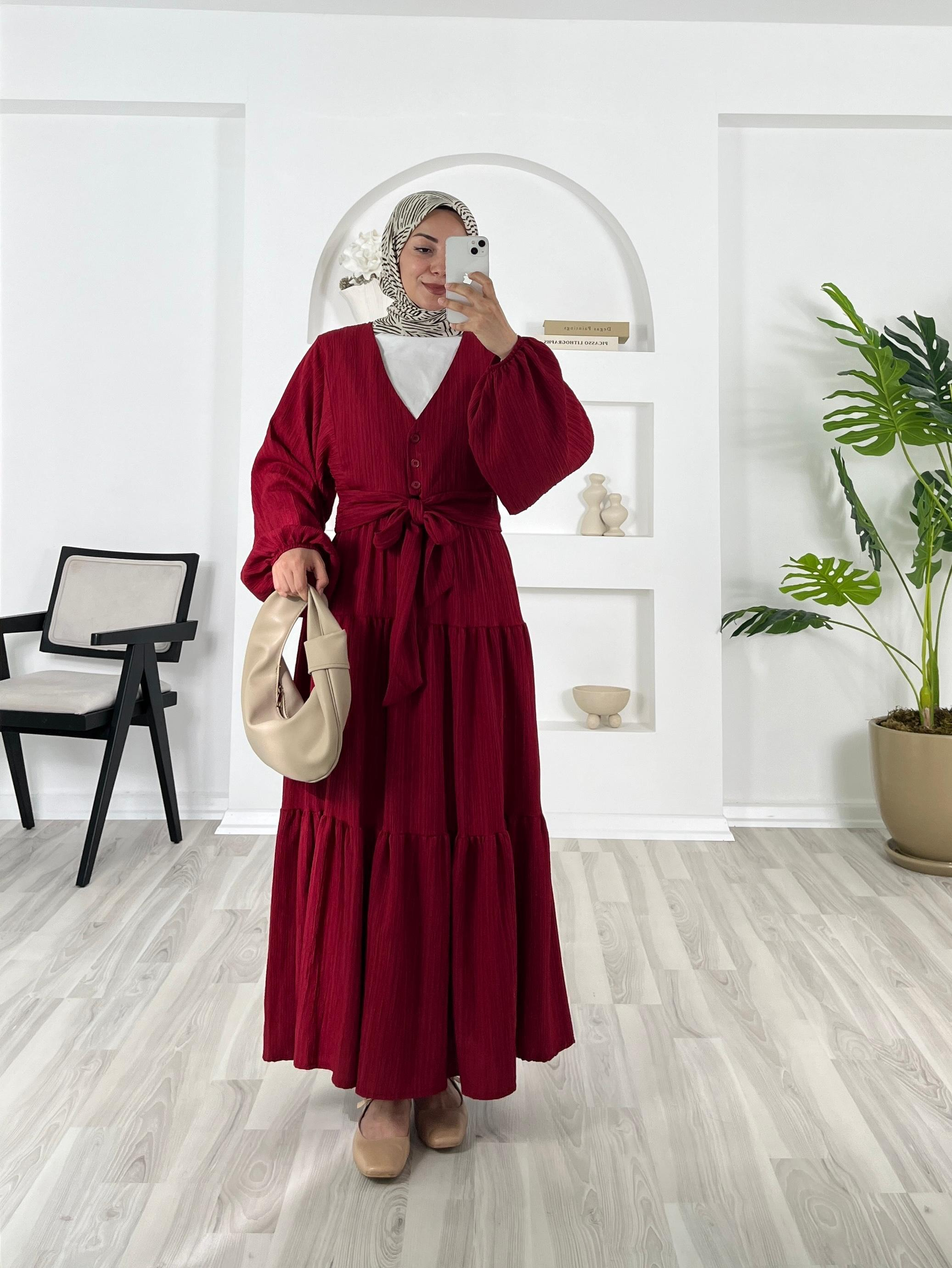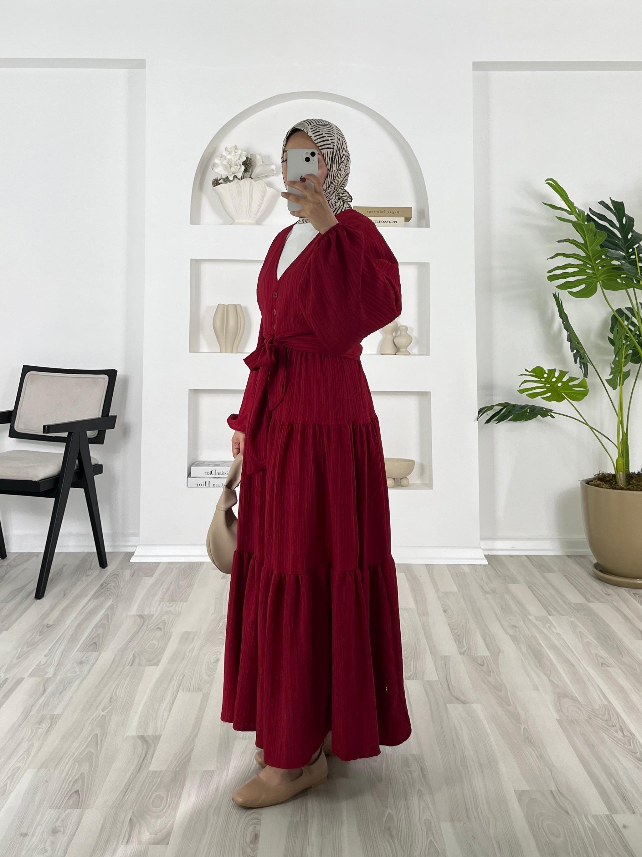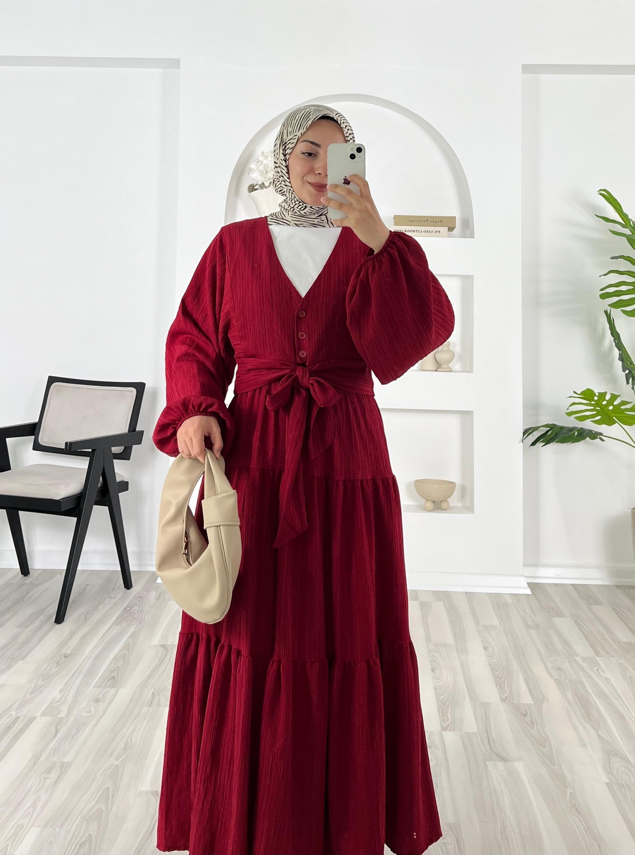 5942-alissa kumaş-önü bağlamalı bilek ucu lastikli etekli takım-bordo (5942)