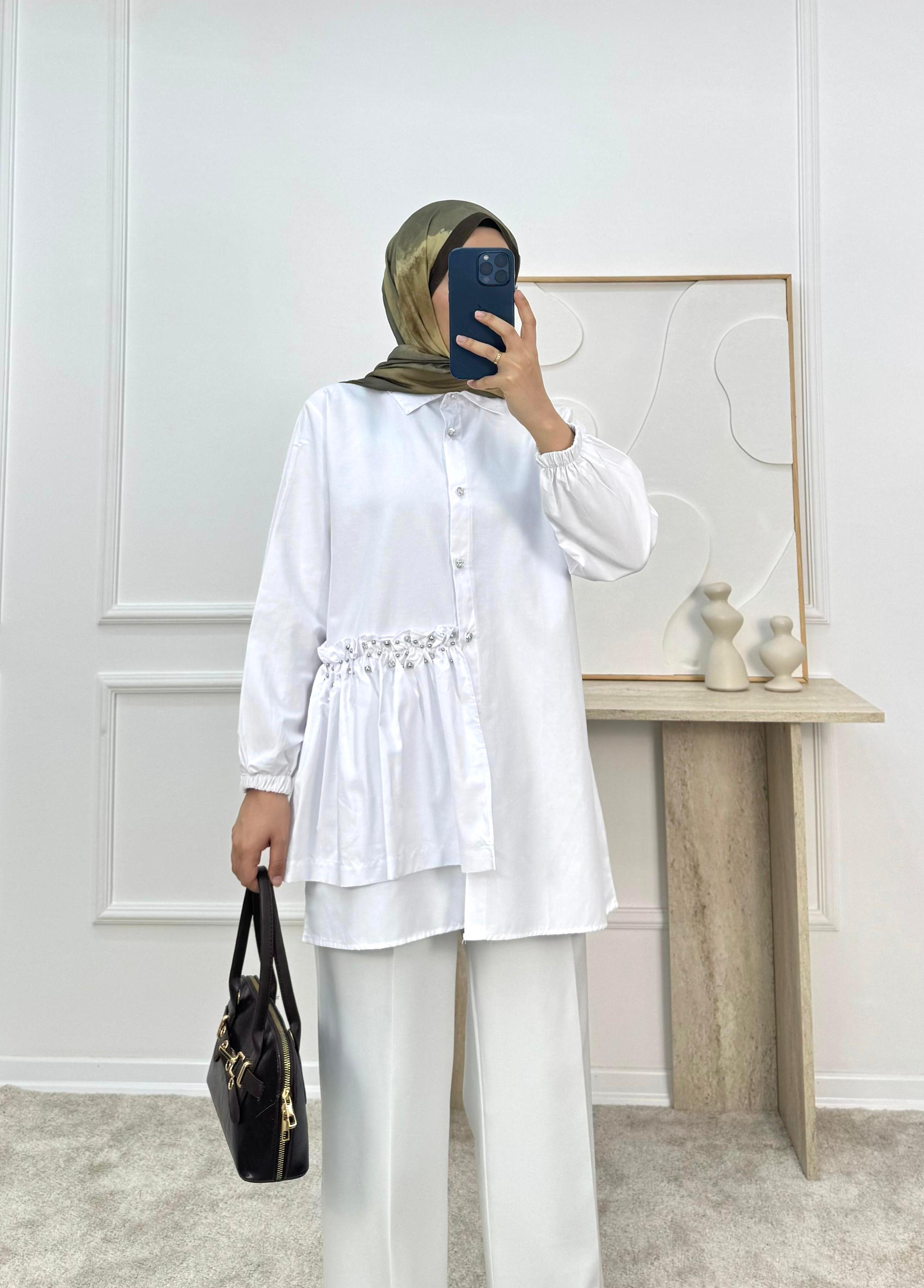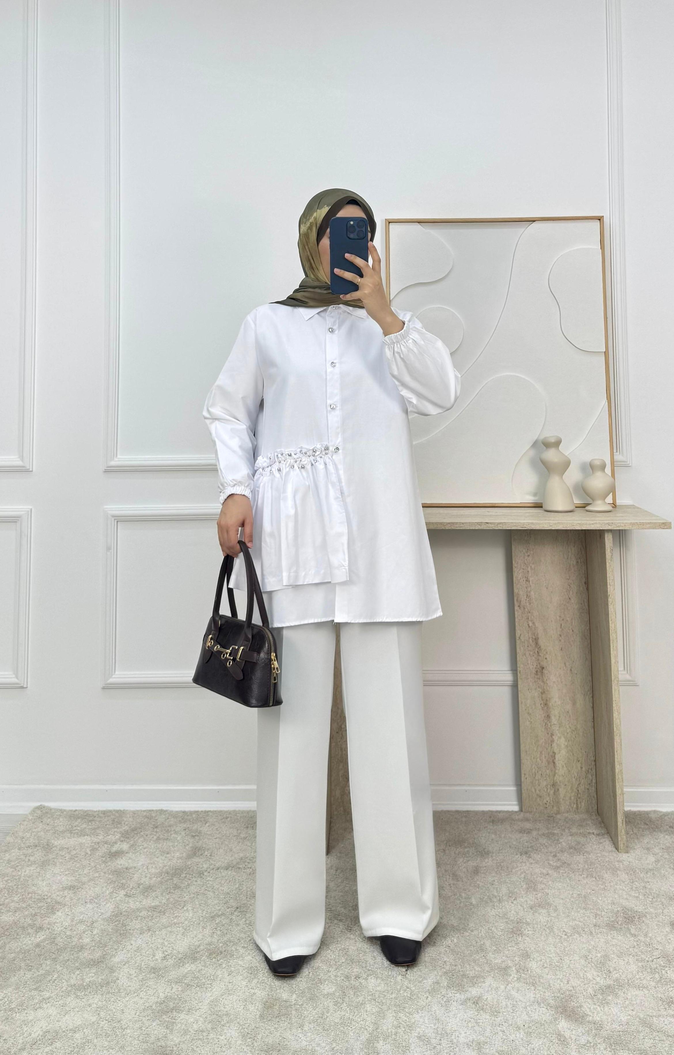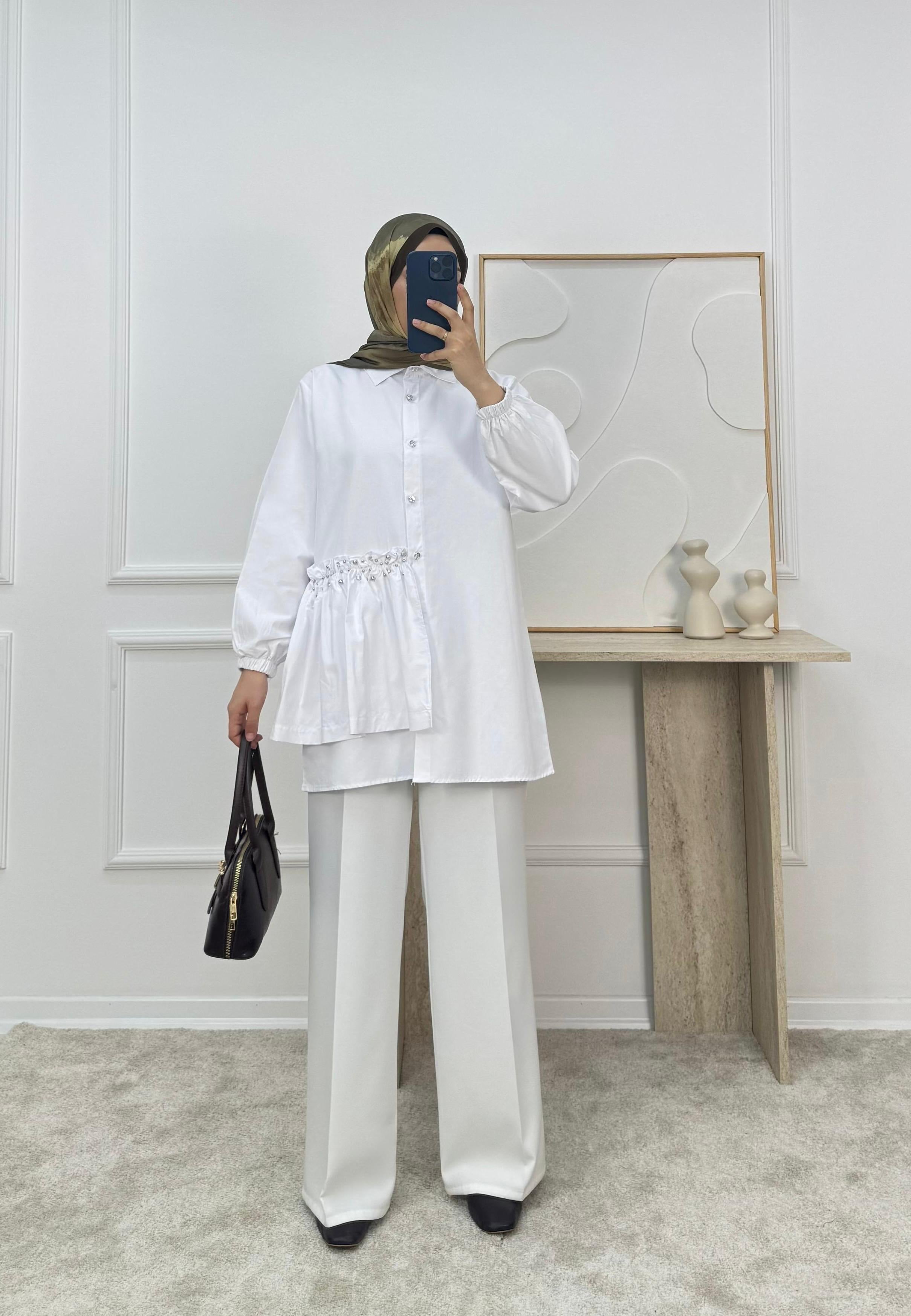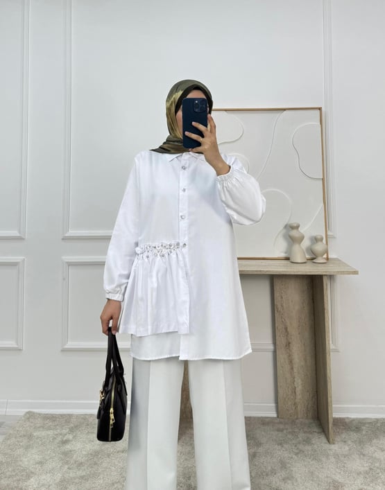 poplin kumaş yandan taşlı tunik